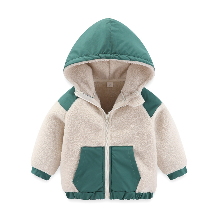 2023 가을과 겨울 새로운 두꺼운 코튼 코트 코튼 벨벳 램 벨벳 그레인 벨벳 자수 후드 컬러 코트 어린이