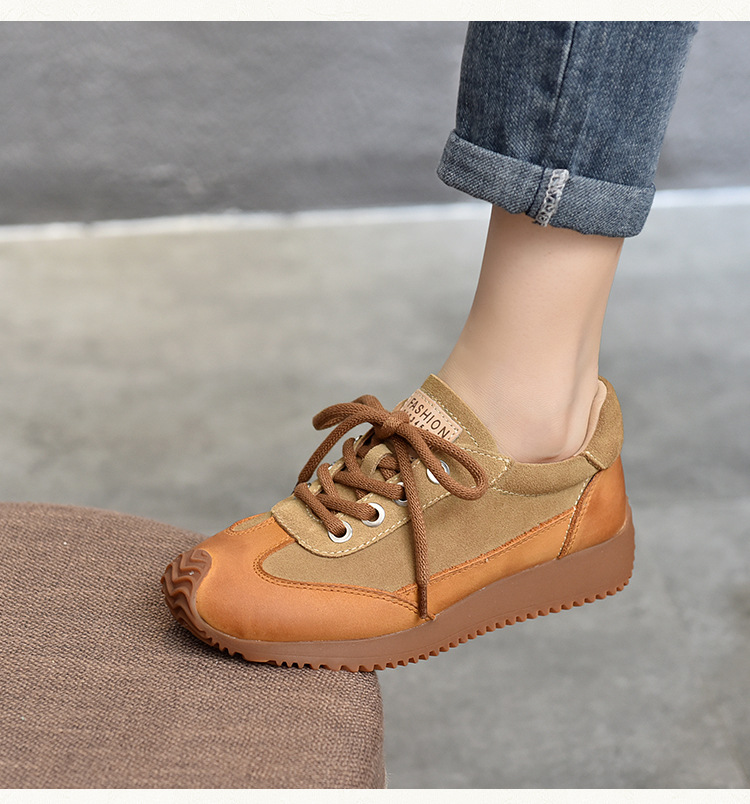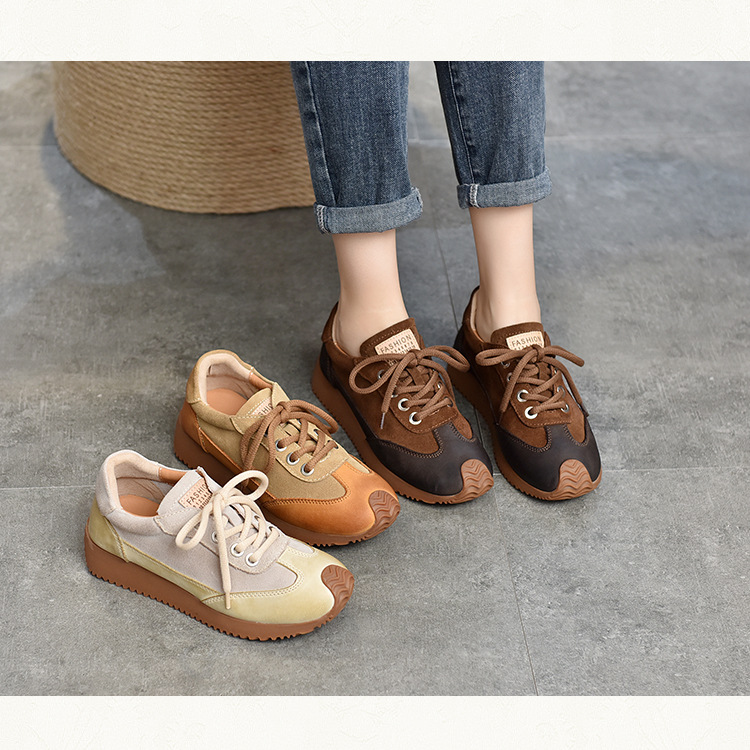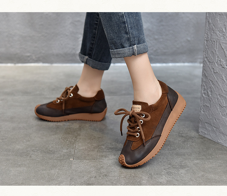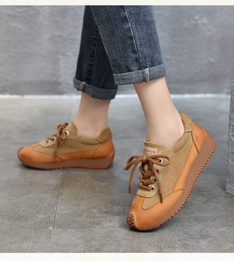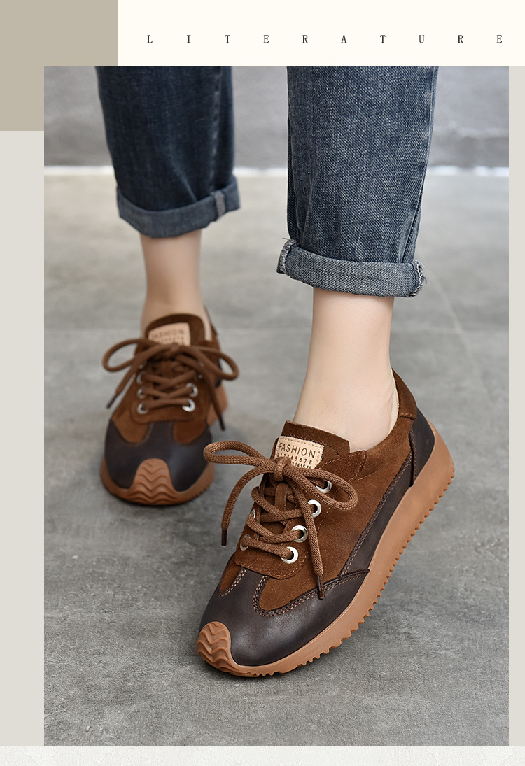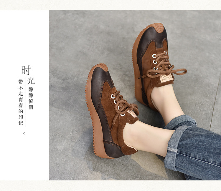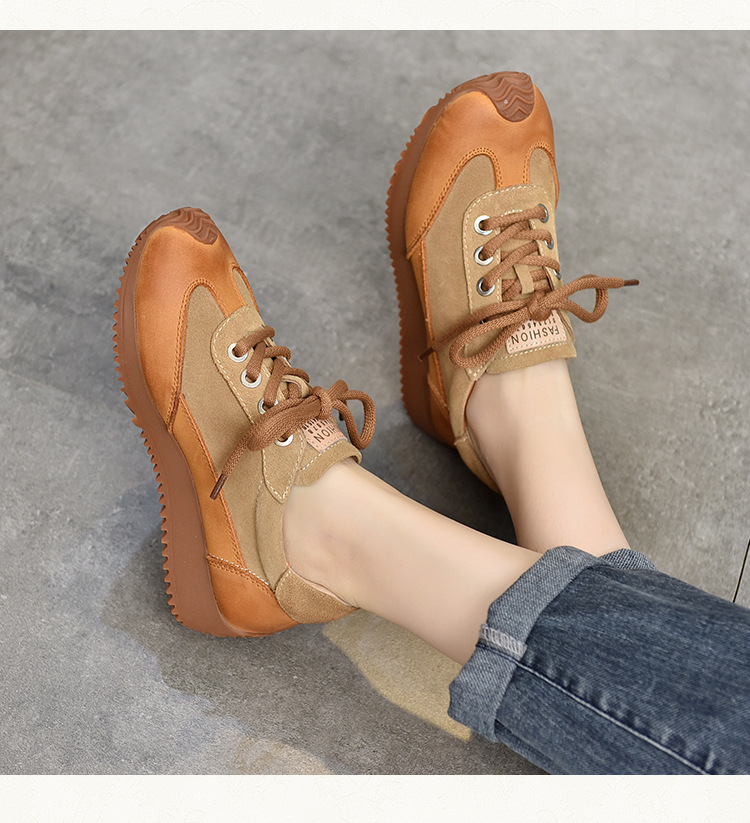여성용 캐주얼 신발, 다용도, 2025 가을 신상, 천연 가죽, 부드러운 밑창, 로우컷 슈즈, 라운드 토, 미들 힐, 끈 묶는 운동화스토어 가기