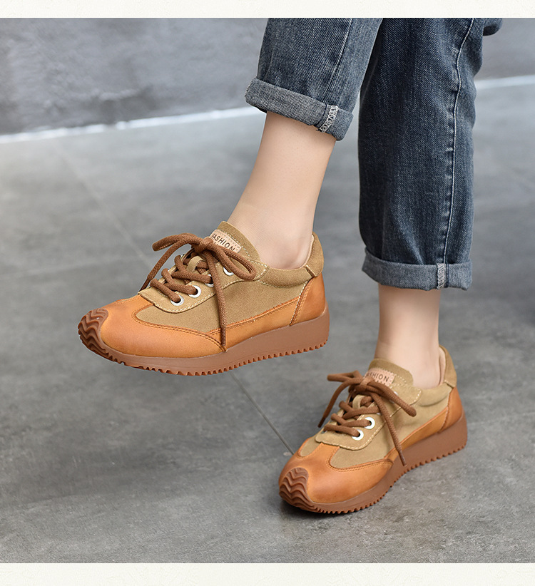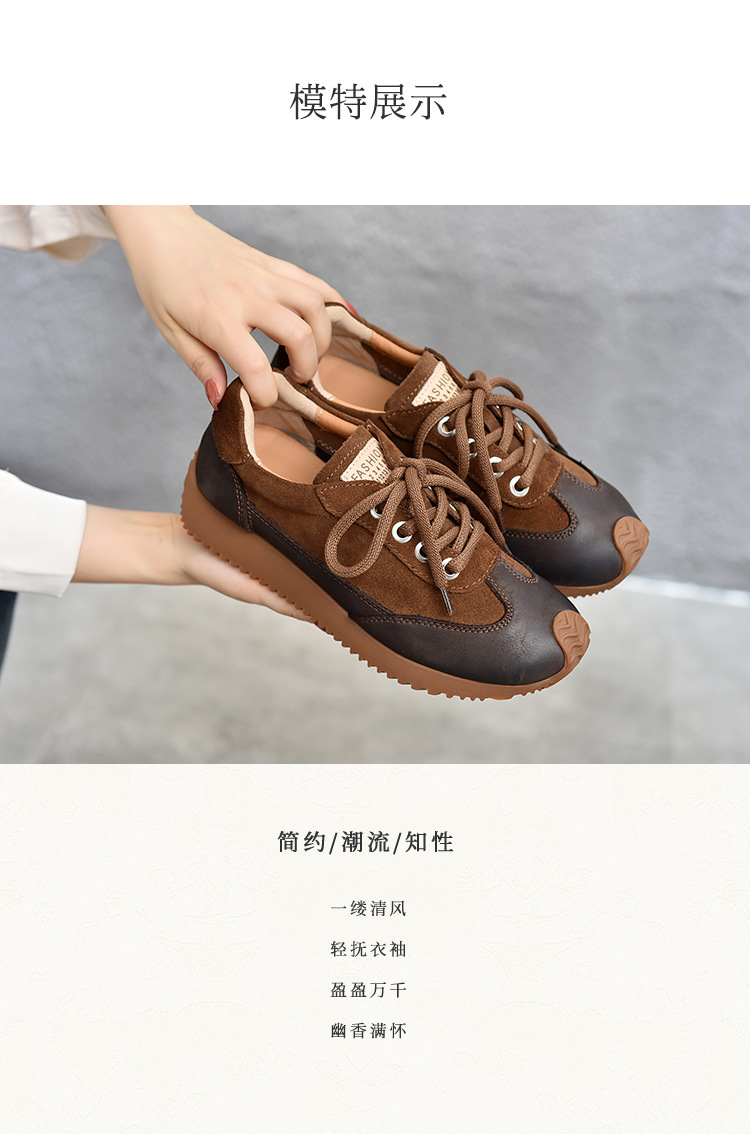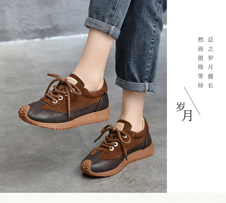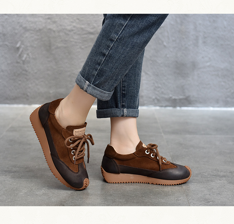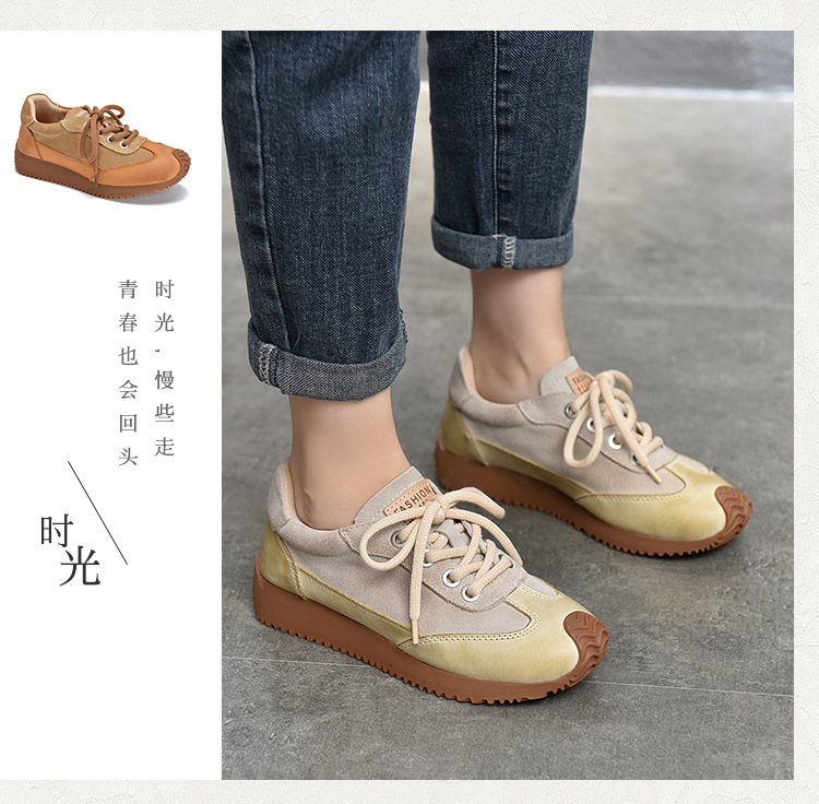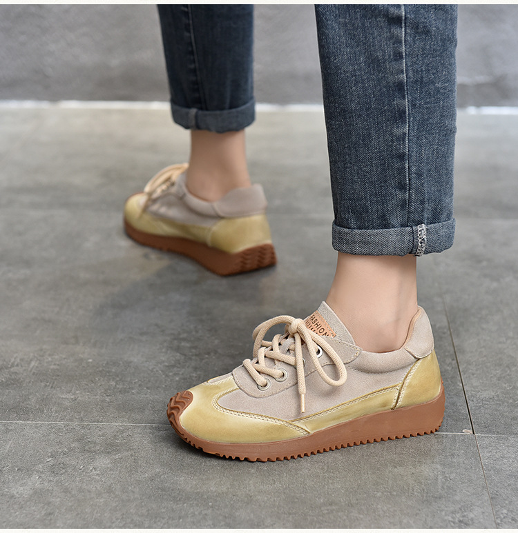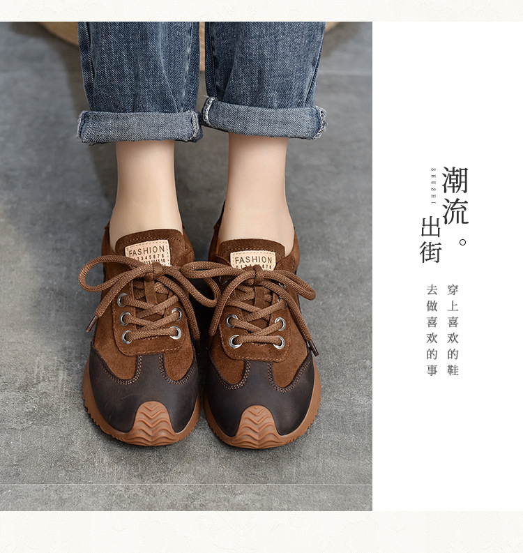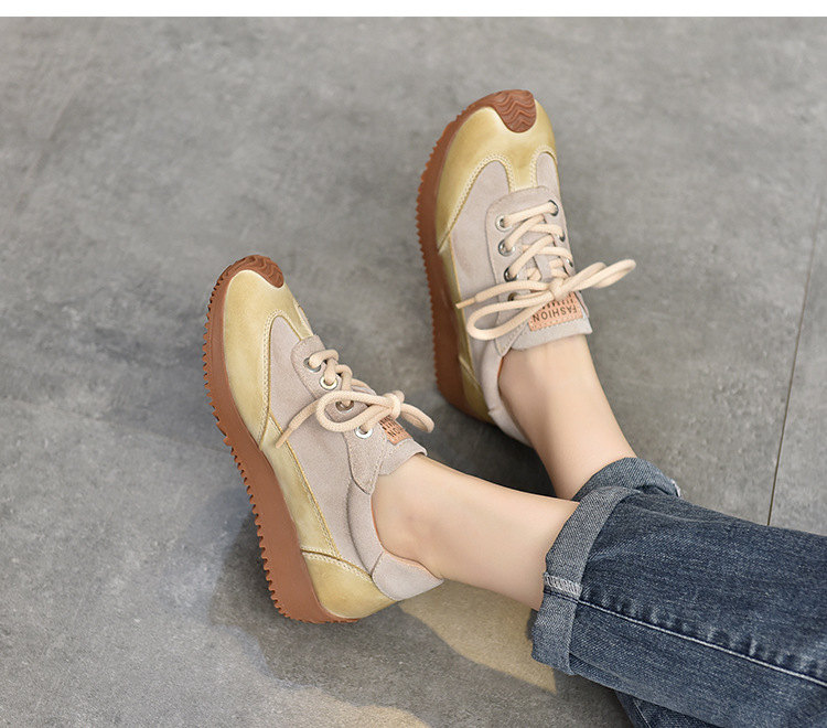 여성용 캐주얼 신발, 다용도, 2025 가을 신상, 천연 가죽, 부드러운 밑창, 로우컷 슈즈, 라운드 토, 미들 힐, 끈 묶는 운동화스토어 가기