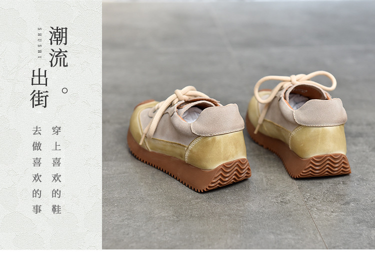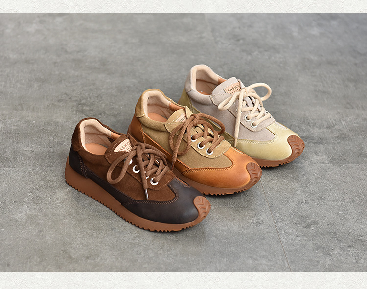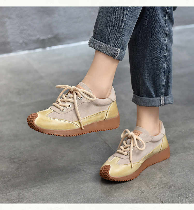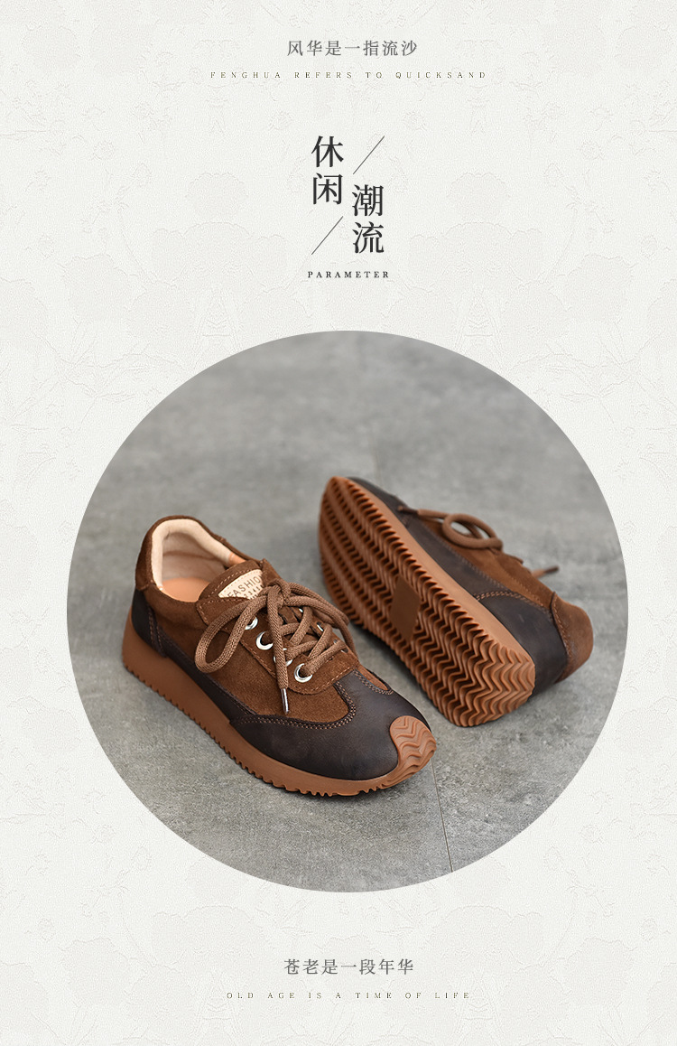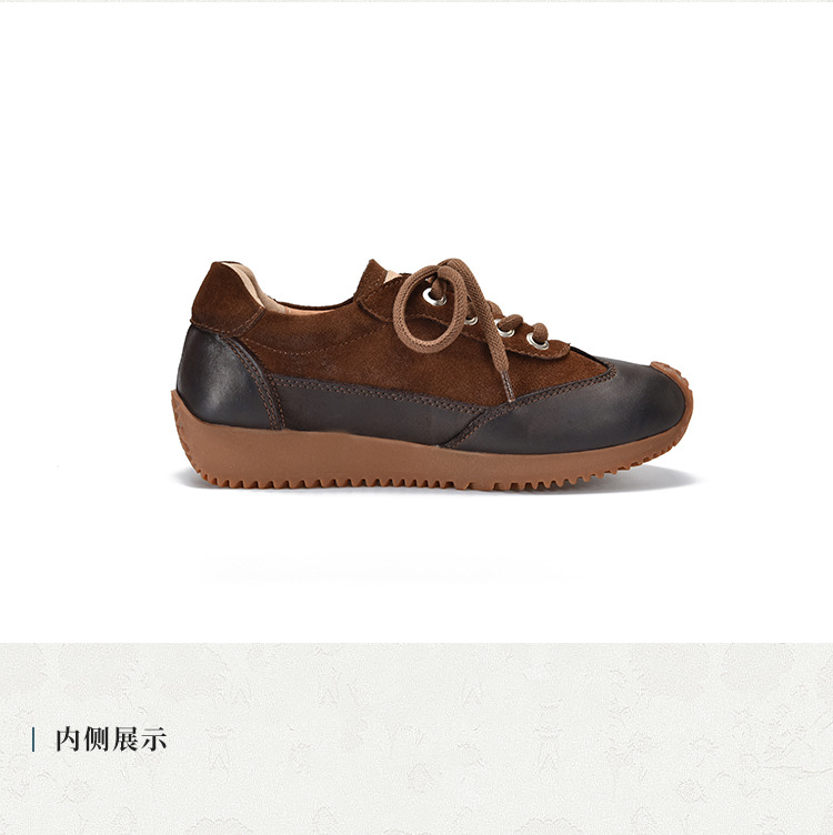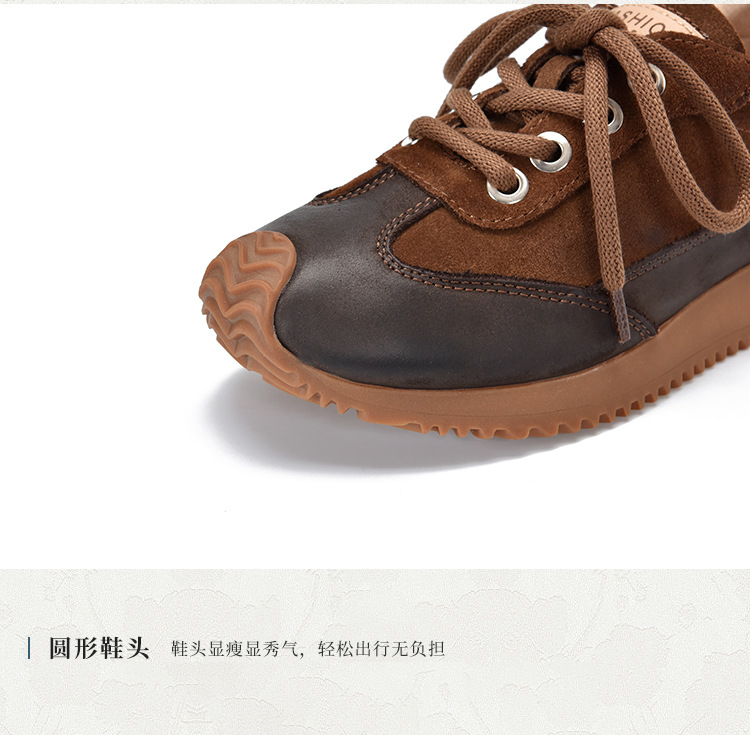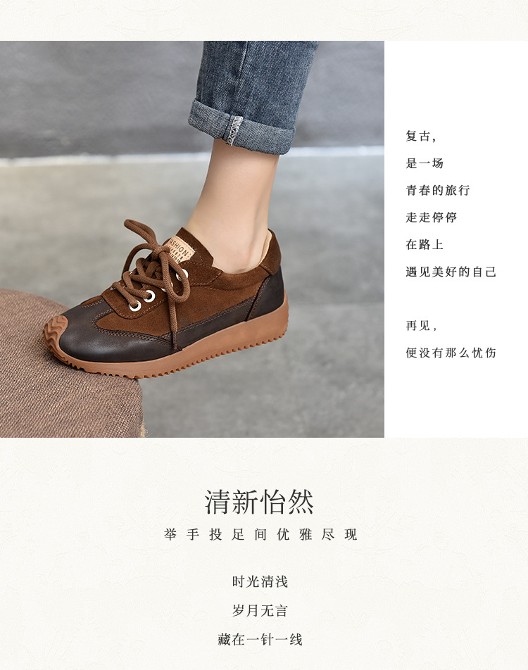 여성용 캐주얼 신발, 다용도, 2025 가을 신상, 천연 가죽, 부드러운 밑창, 로우컷 슈즈, 라운드 토, 미들 힐, 끈 묶는 운동화스토어 가기