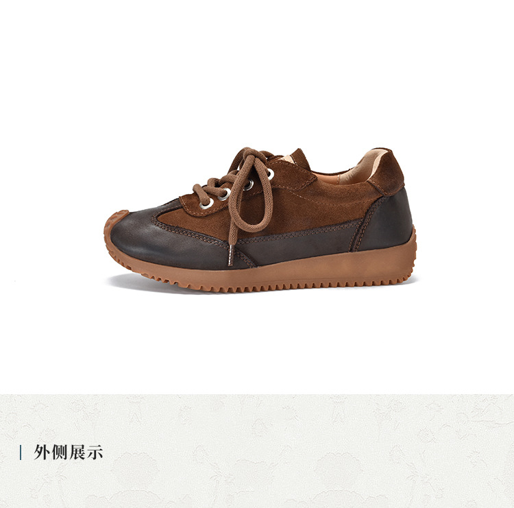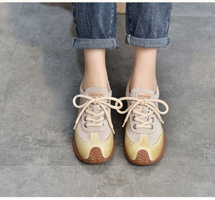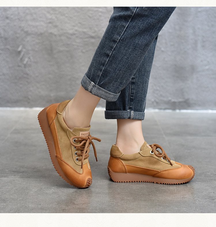 여성용 캐주얼 신발, 다용도, 2025 가을 신상, 천연 가죽, 부드러운 밑창, 로우컷 슈즈, 라운드 토, 미들 힐, 끈 묶는 운동화