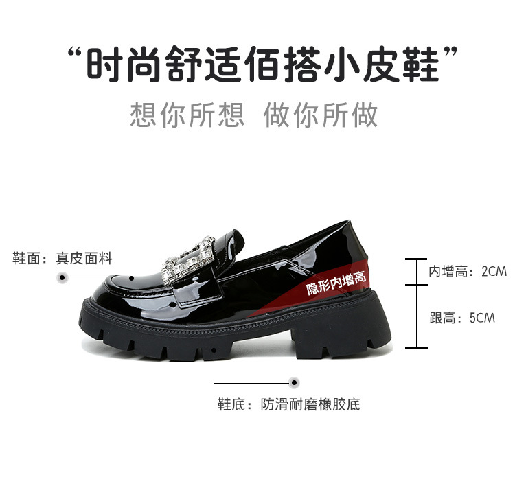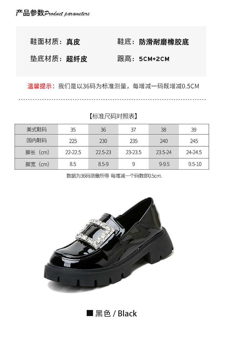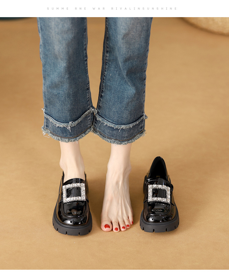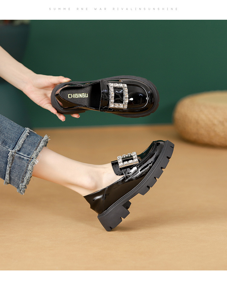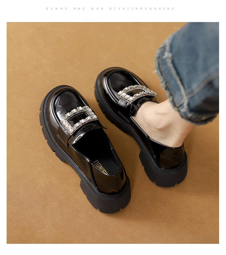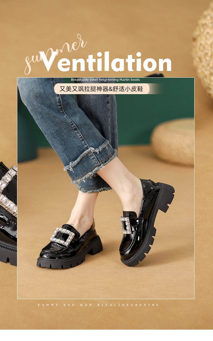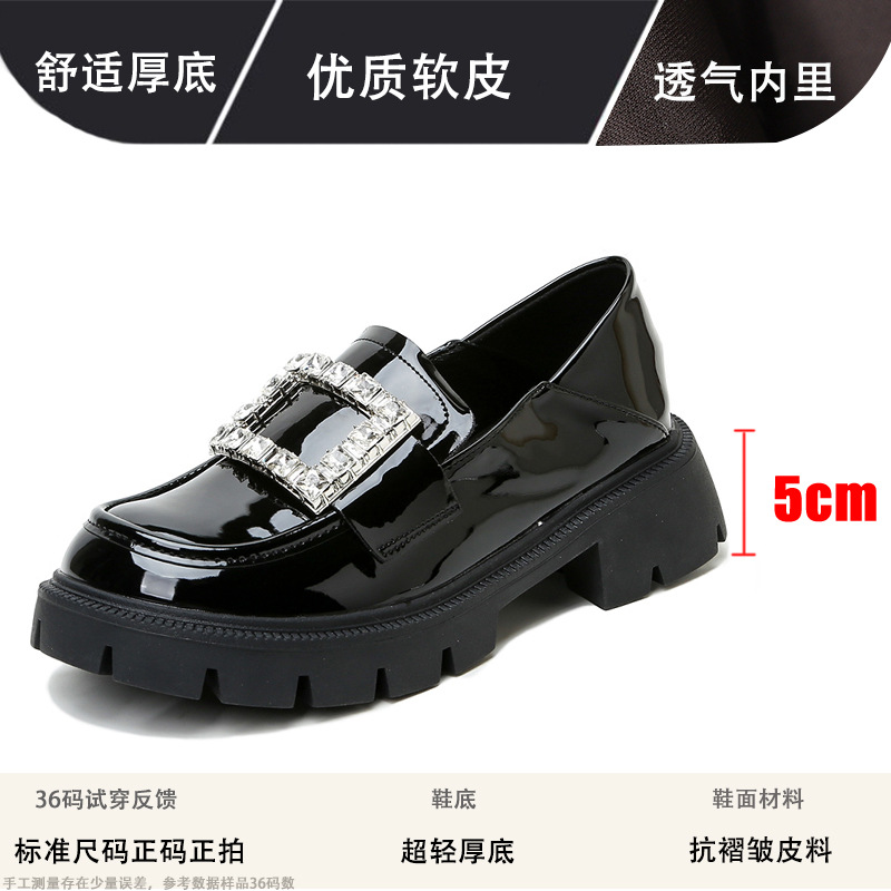 2025년 신상품 여성용 워터드라이즈 두꺼운 밑창 로퍼, 키높이, 영국 스타일, 블랙 래커 가죽 신발, 소형 사이즈