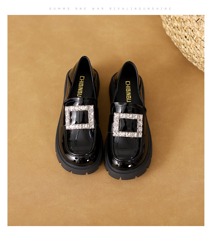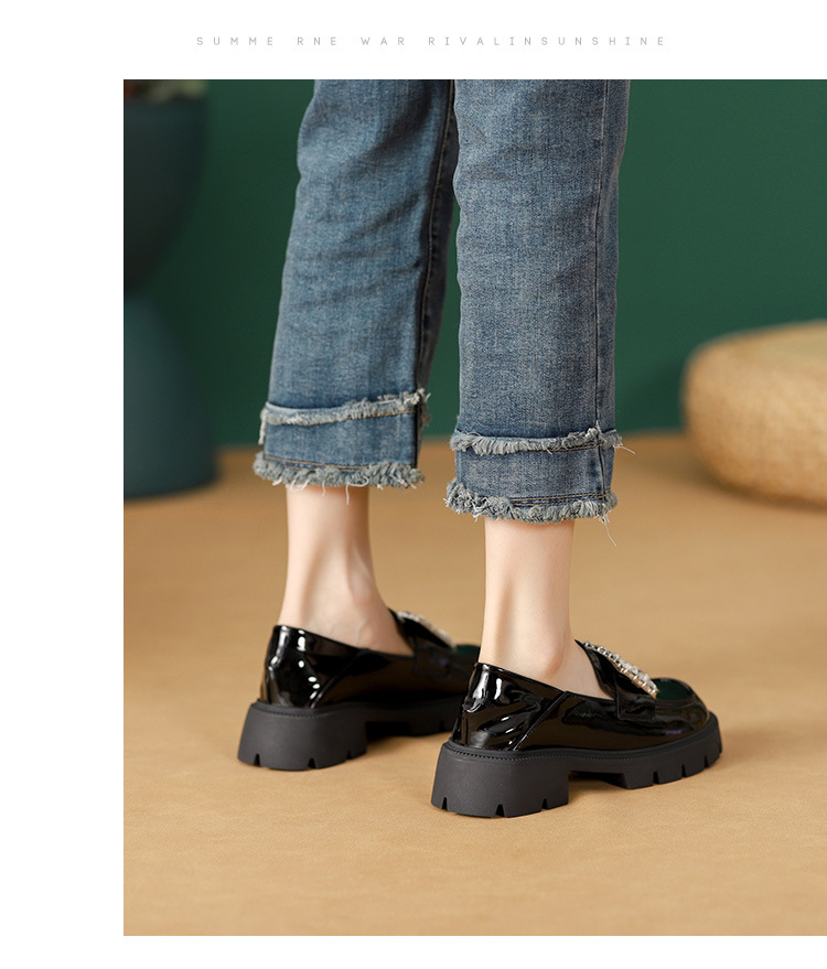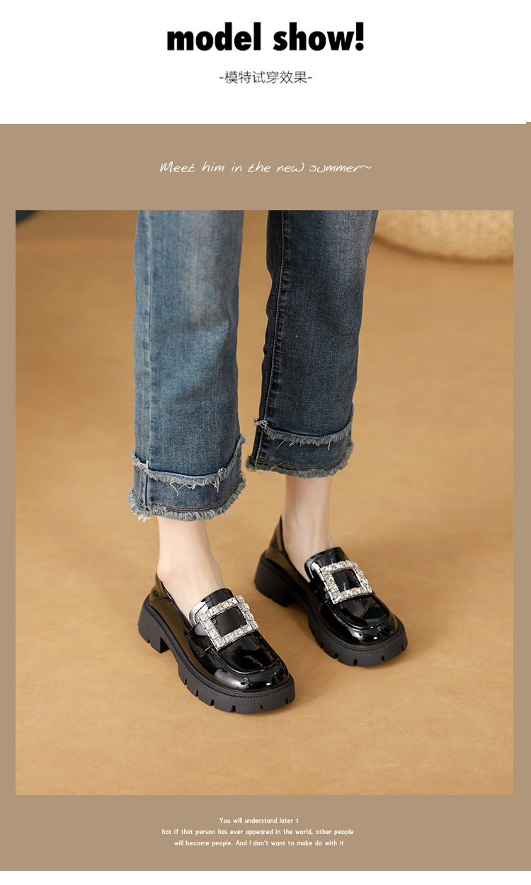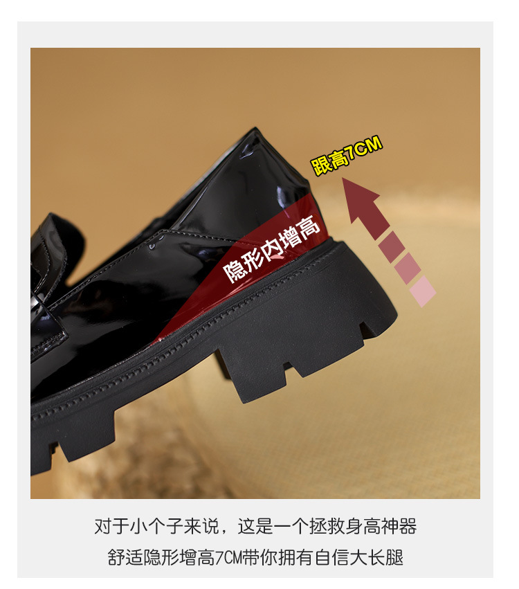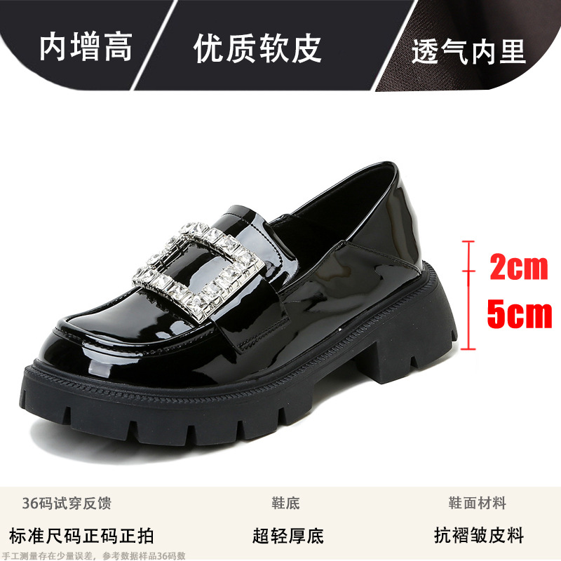 2025년 신상품 여성용 워터드라이즈 두꺼운 밑창 로퍼, 키높이, 영국 스타일, 블랙 래커 가죽 신발, 소형 사이즈스토어 가기