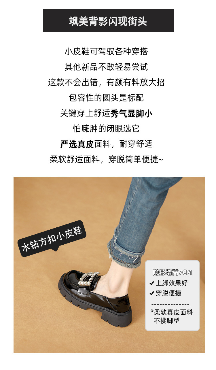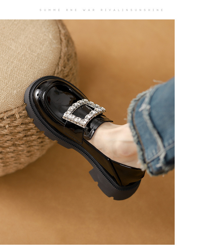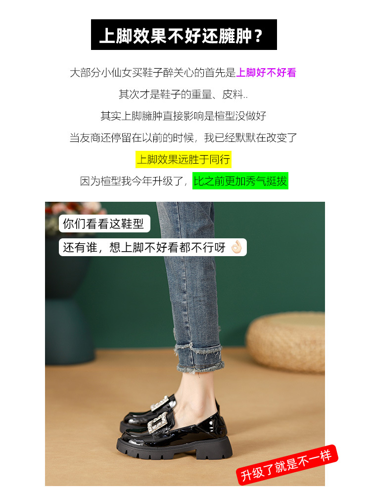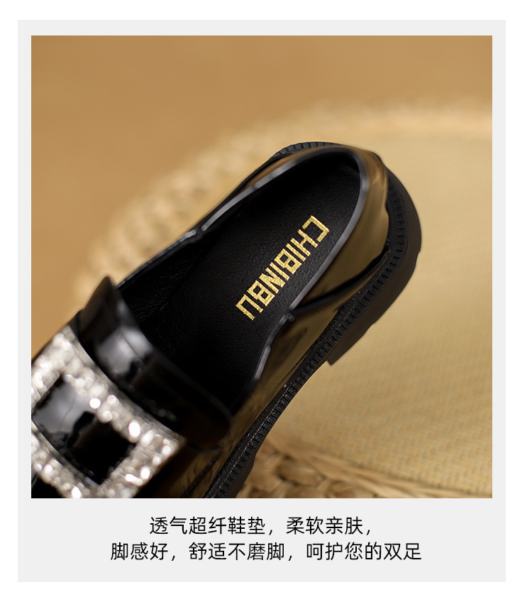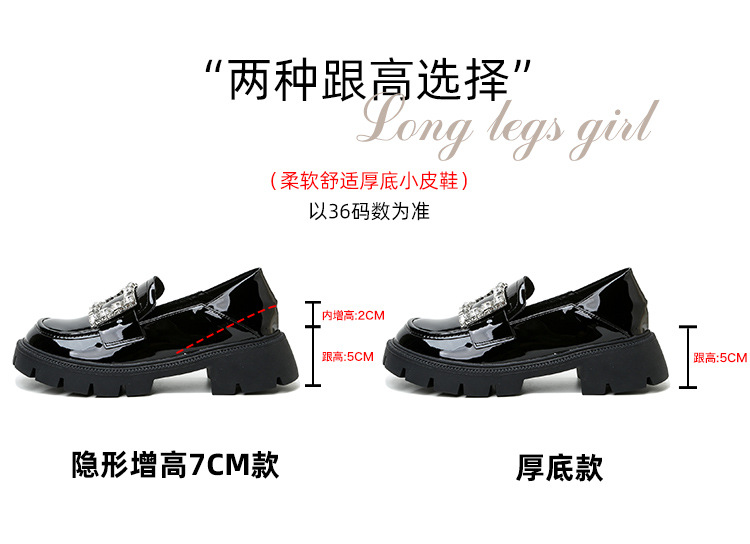 2025년 신상품 여성용 워터드라이즈 두꺼운 밑창 로퍼, 키높이, 영국 스타일, 블랙 래커 가죽 신발, 소형 사이즈스토어 가기