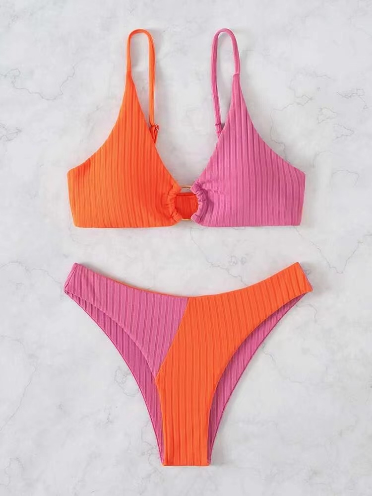 2024 새로운 수영복 분할 색상 비키니 국경 대외 무역 아마존 구덩이 스트립 백리스 비키니 수영복스토어 가기