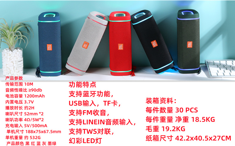 TG375 무선 블루투스 스피커 야외 카드 무거운 서브 우퍼 카드 소형 스테레오 휴대용 led 블루투스 스테레오스토어 가기