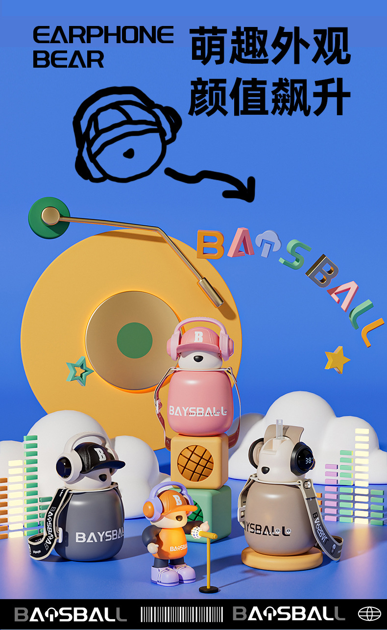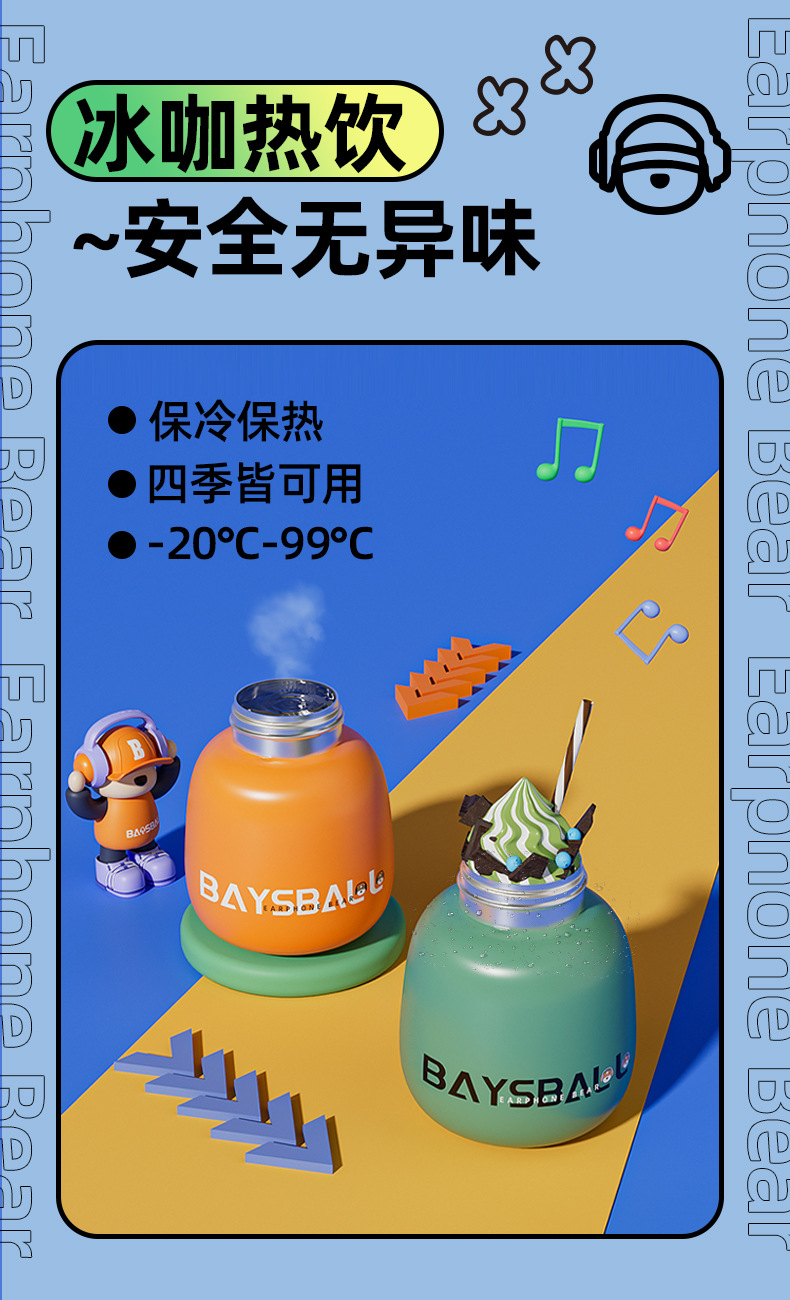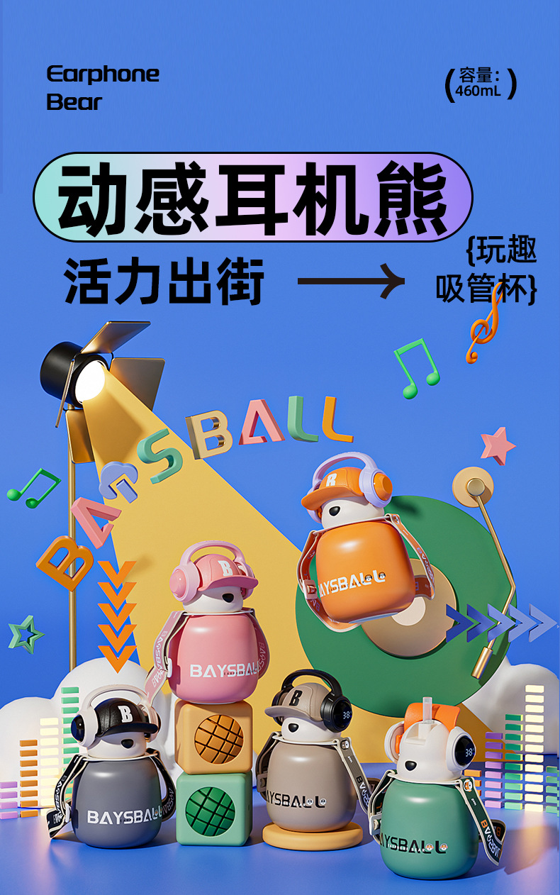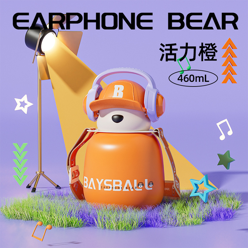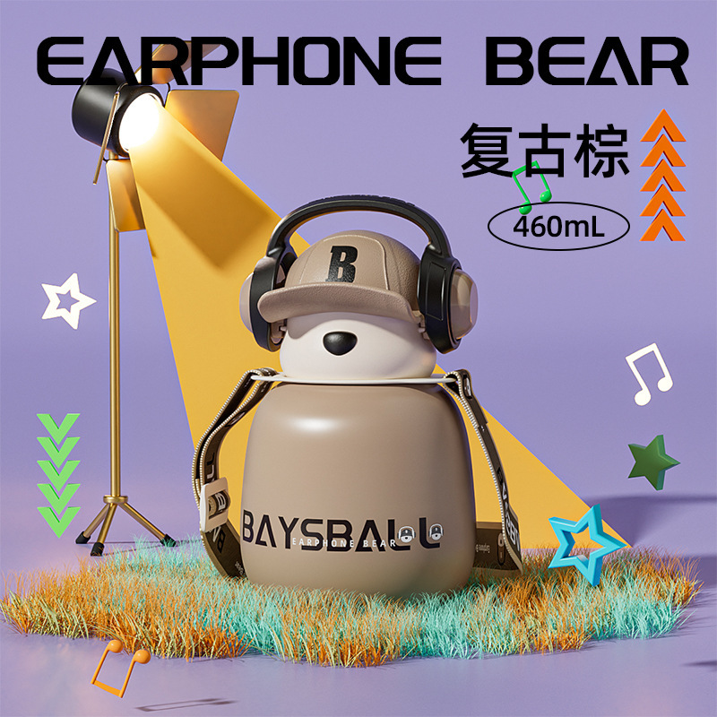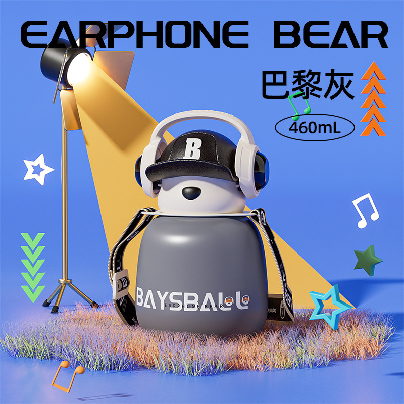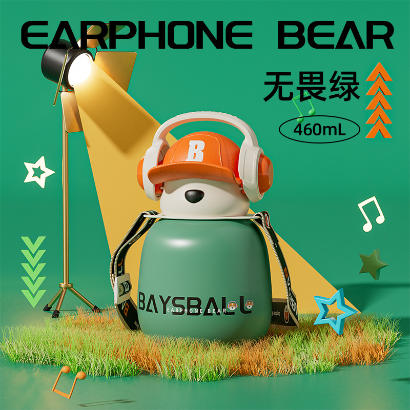 새로운 스마트 헤드셋 곰 식품 등급 316 스테인레스 스틸 높은 색상 가치 짚 학생 어린이 주전자 보온병 컵