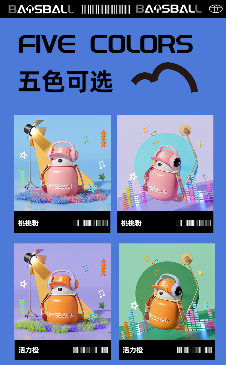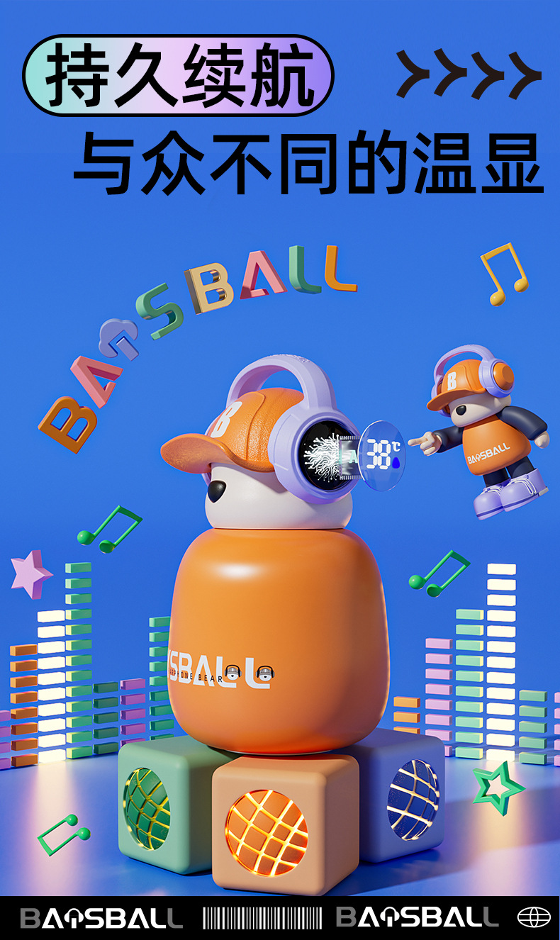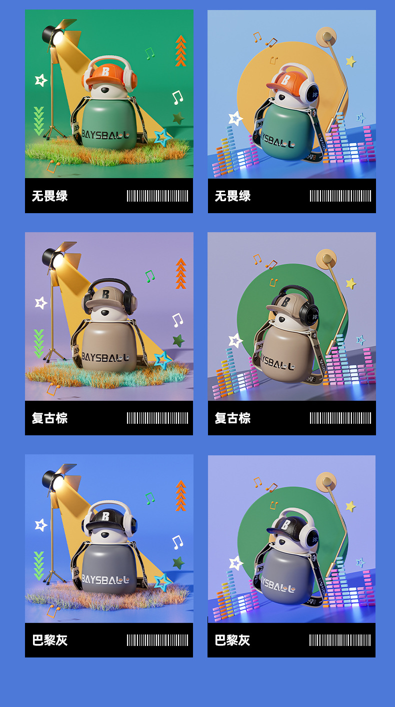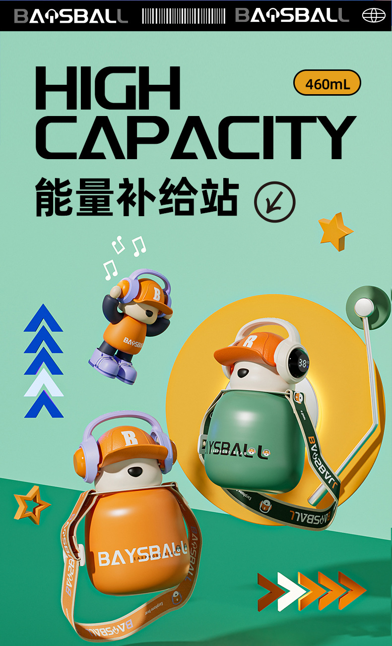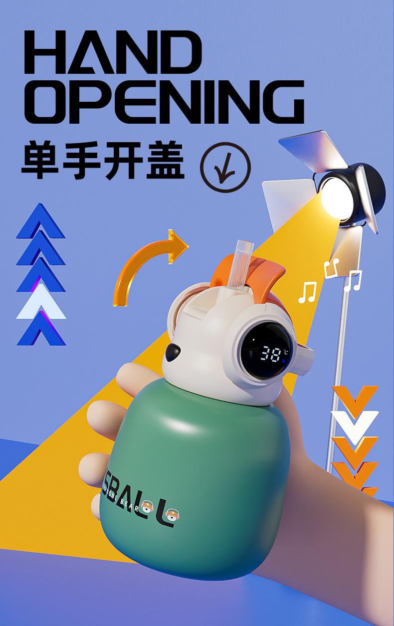 새로운 스마트 헤드셋 곰 식품 등급 316 스테인레스 스틸 높은 색상 가치 짚 학생 어린이 주전자 보온병 컵