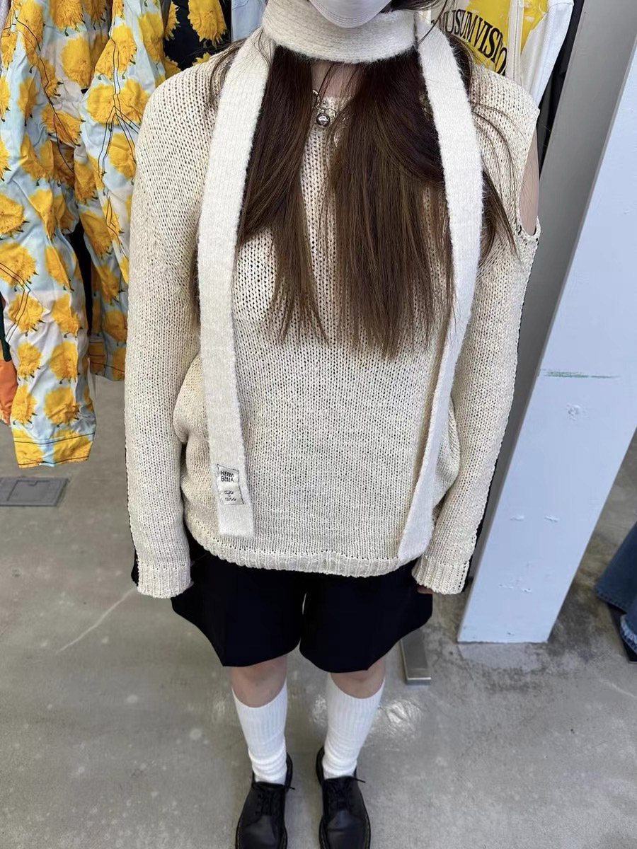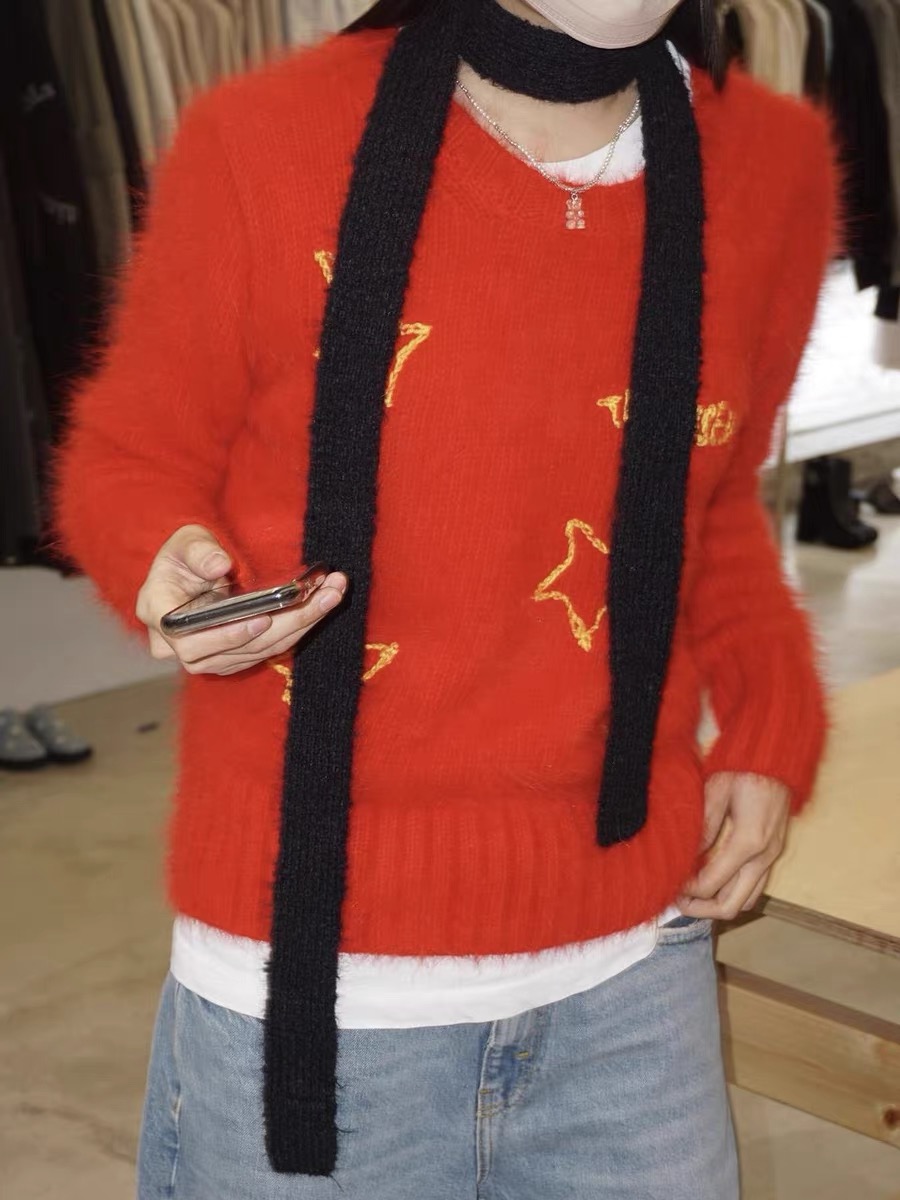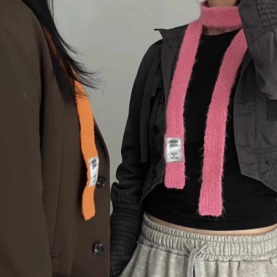 한국 캐주얼 니트 천 편지 얇은 스카프 여성의 오목한 모양 장식 좁은 스카프 y2k 뜨거운 소녀 스타일 작은 스카프스토어 가기