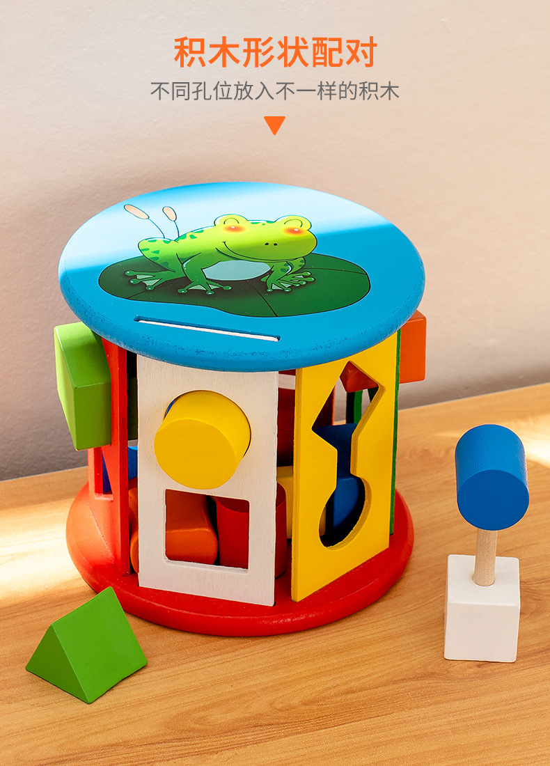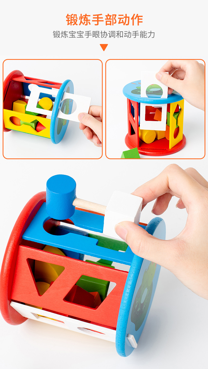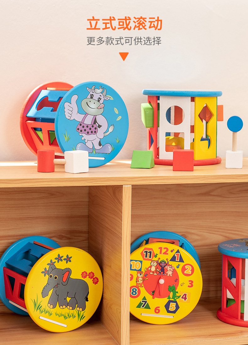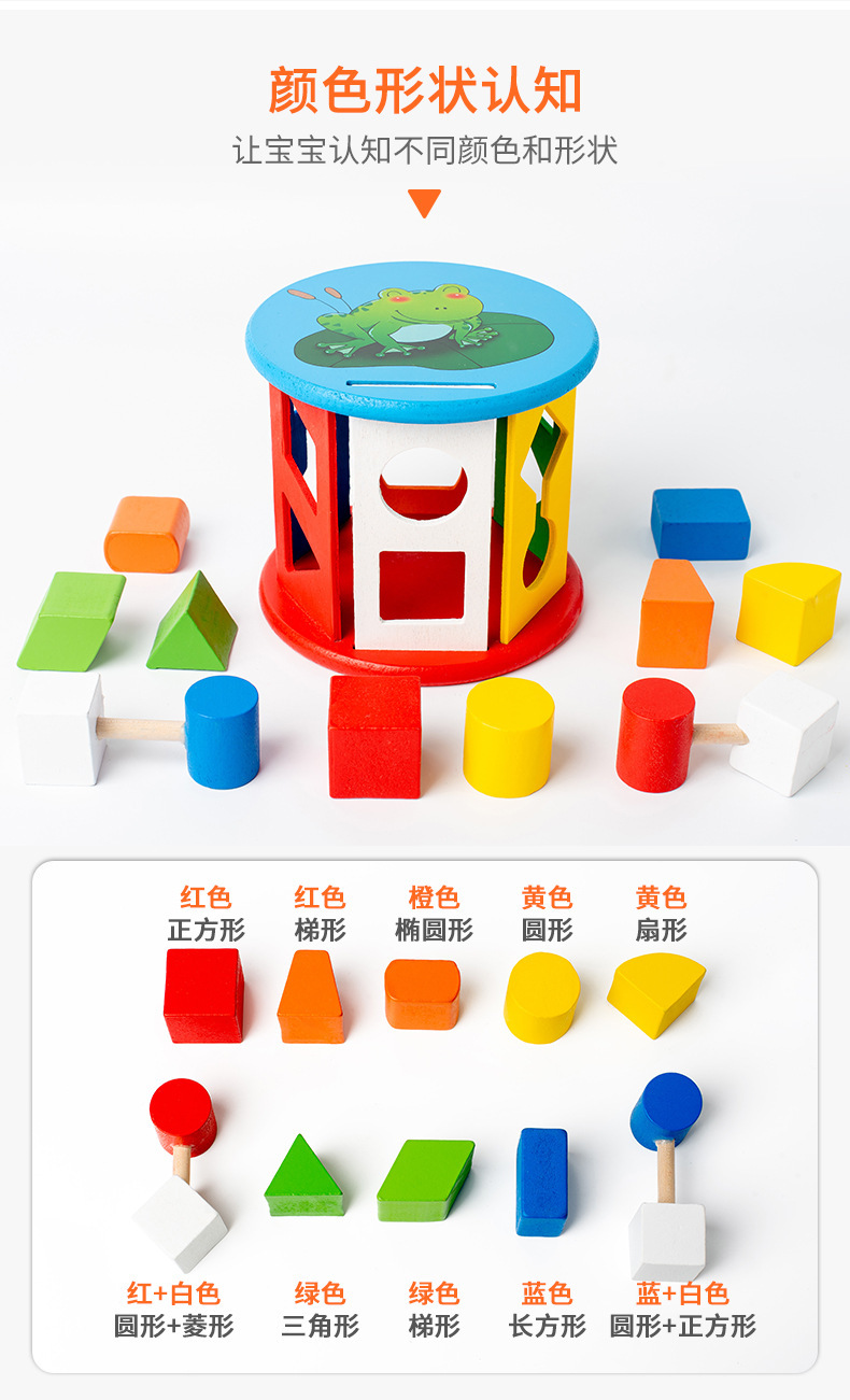 教育目的:让宝宝认识不同的颜色和形状;培养宝宝的观察能力和手眼协调能力;让宝宝练习镶嵌,学会寻找一一对应关系。形状轮可以让宝宝镶嵌积木,滚动追逐,宝宝累了,可兼做宝宝的“小板凳”,真是“一举三得”的好伙伴!