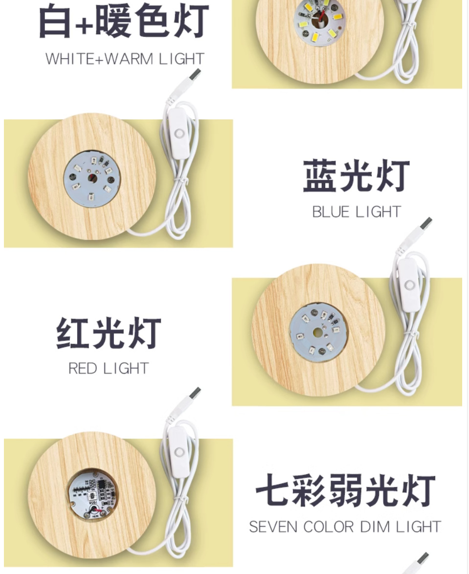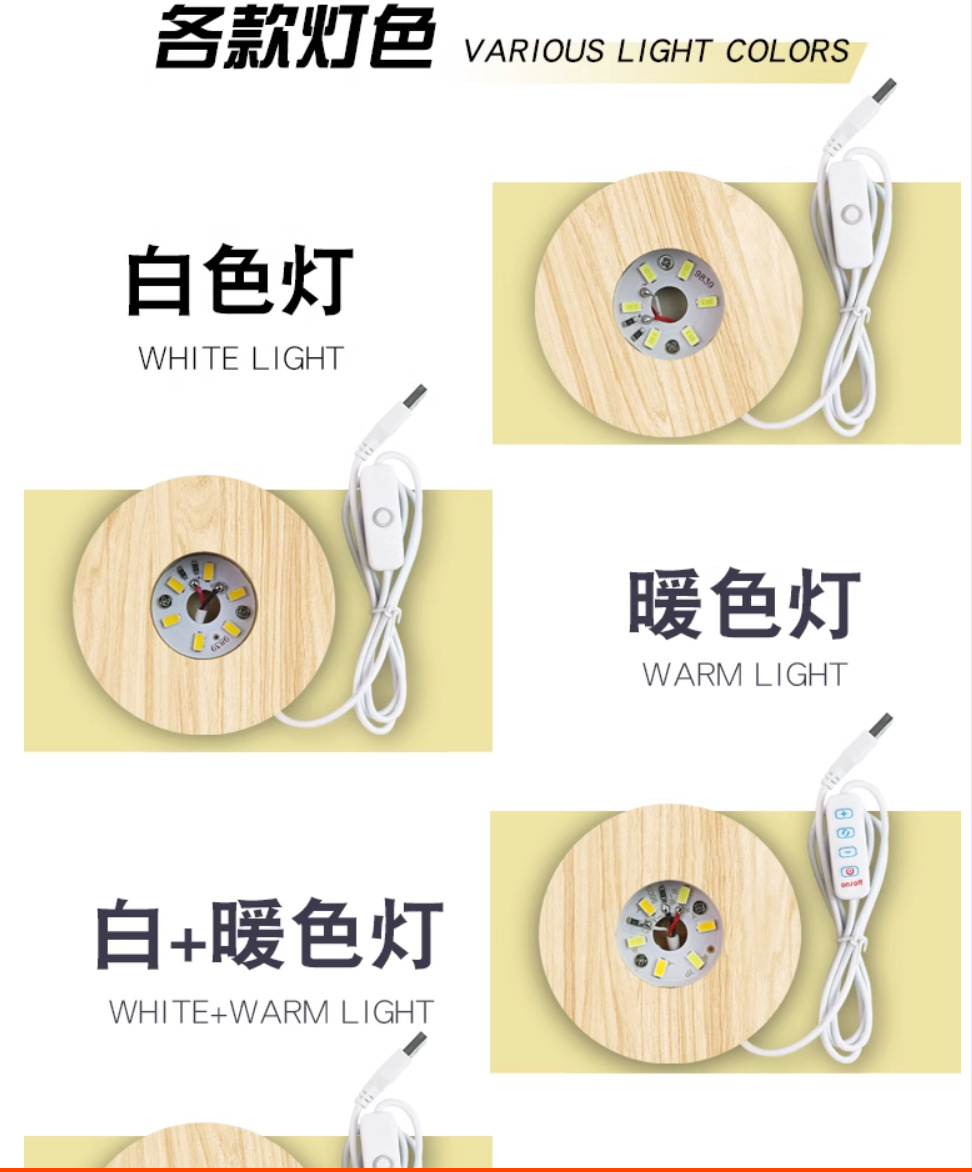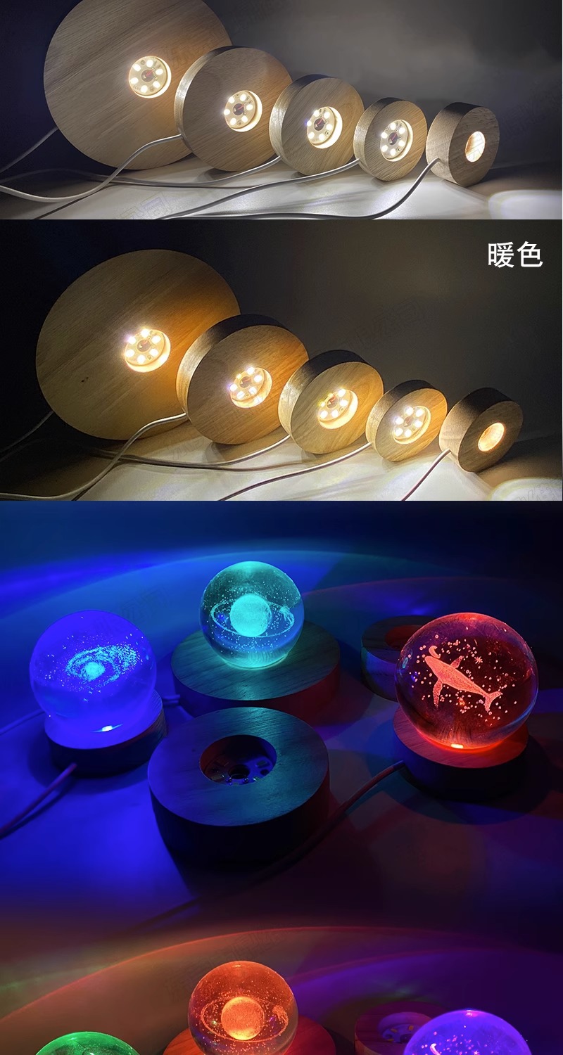 단단한 나무 빛나는 크리스탈 볼베이스 나무 야간 조명 라운드 램프 홀더 따뜻한 흰색 USB 플러그인 테이블 램프 led 길이 1m