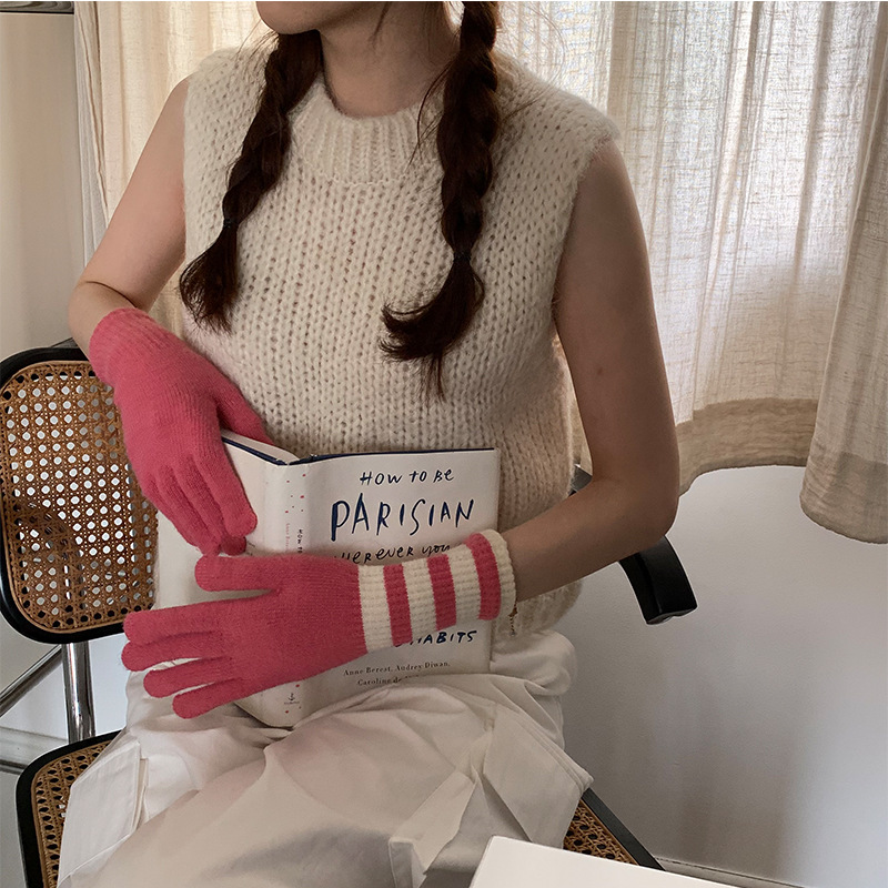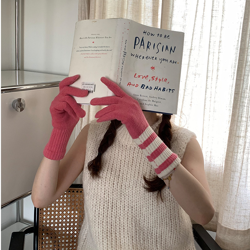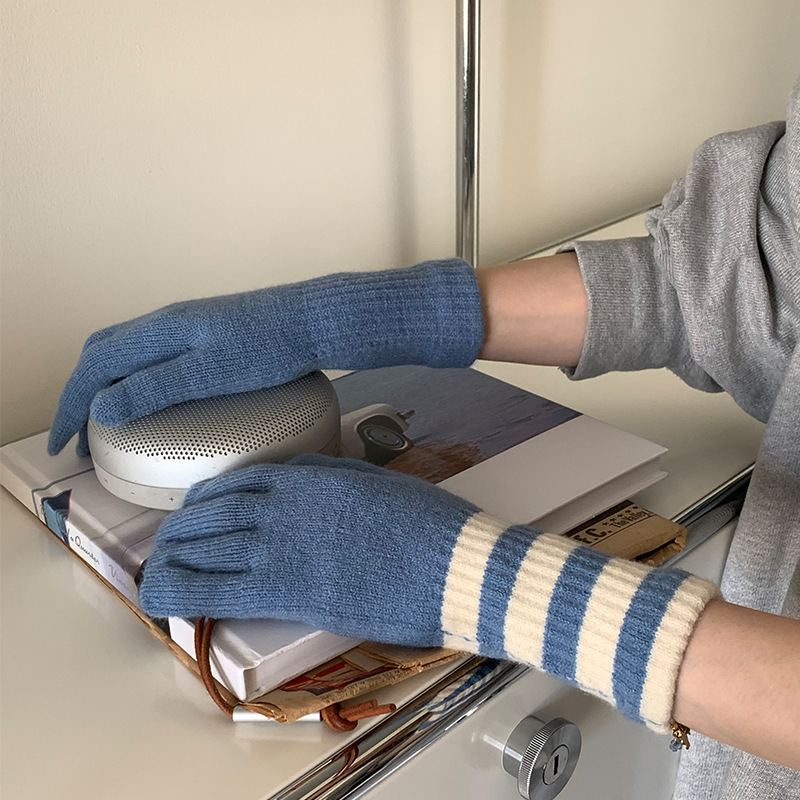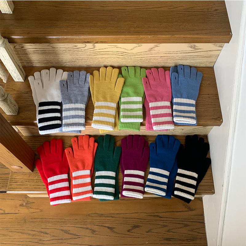 가을과 겨울 방한 학생 귀여운 장갑 터치 스크린 니트 다섯 손가락 한국식 울 터치 스크린 스트라이프 장갑스토어 가기