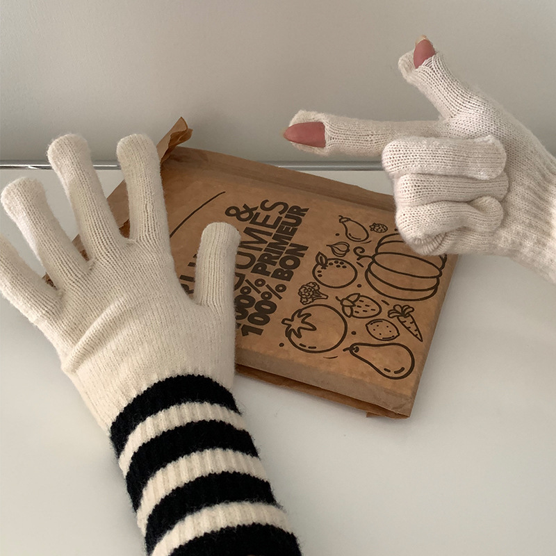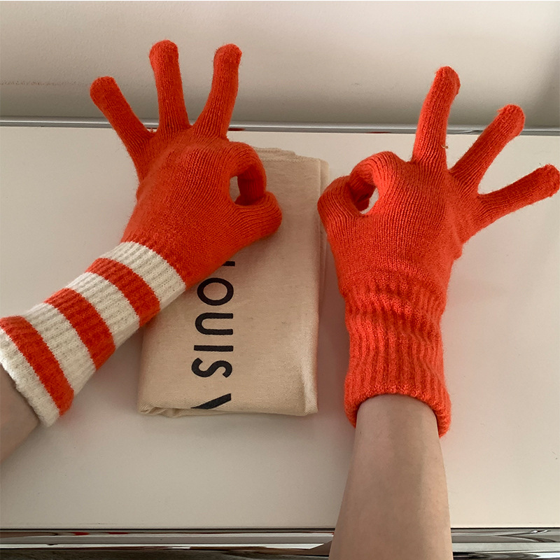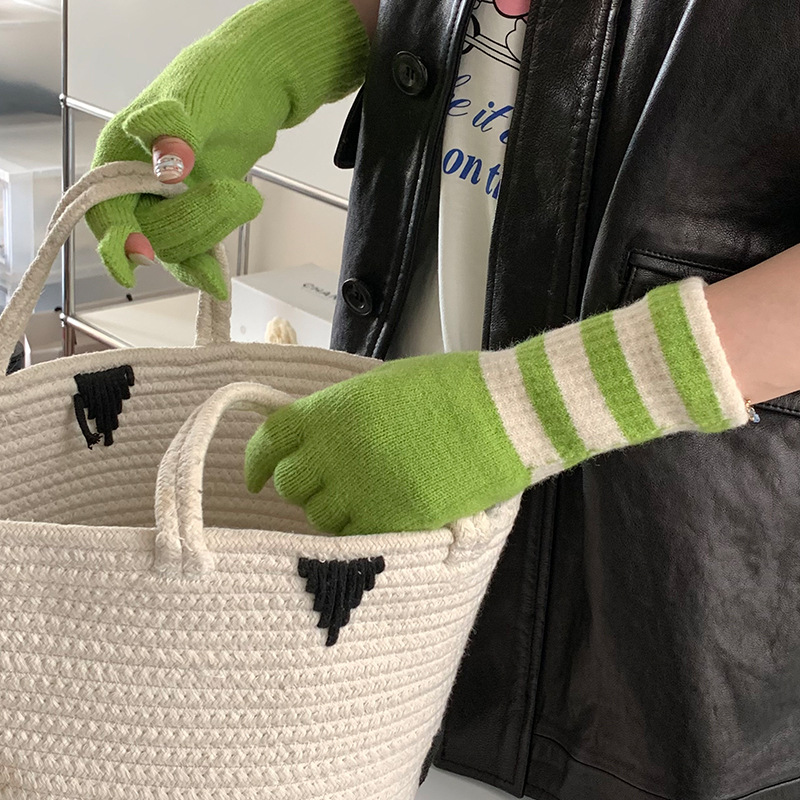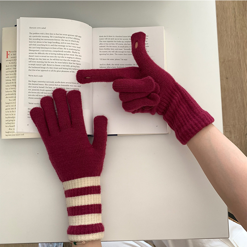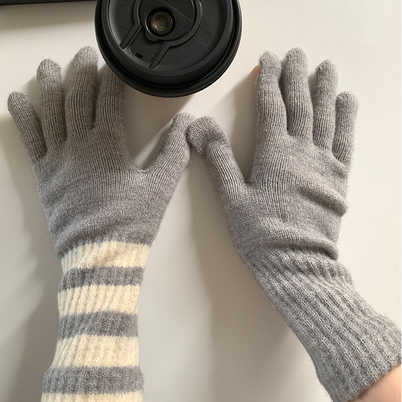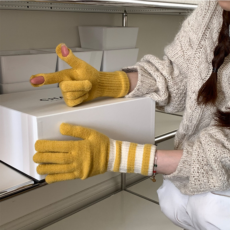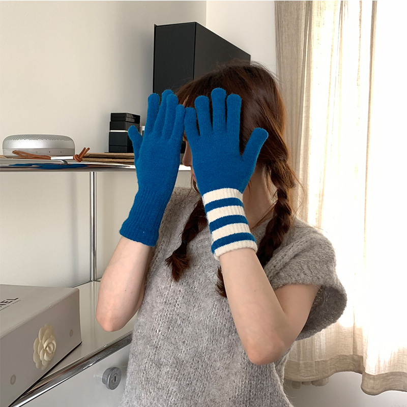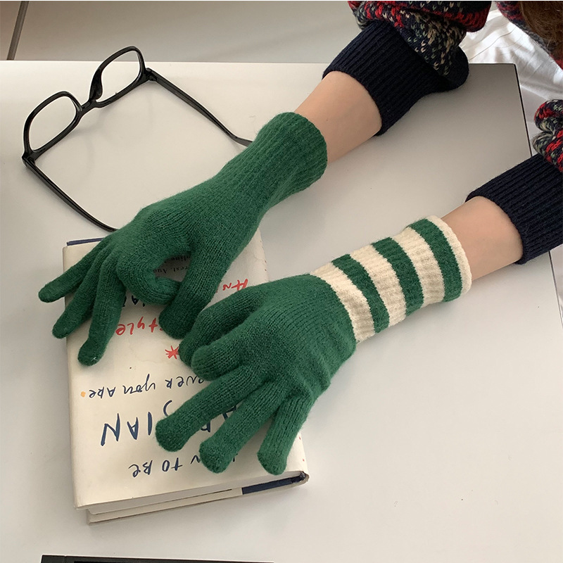가을과 겨울 방한 학생 귀여운 장갑 터치 스크린 니트 다섯 손가락 한국식 울 터치 스크린 스트라이프 장갑