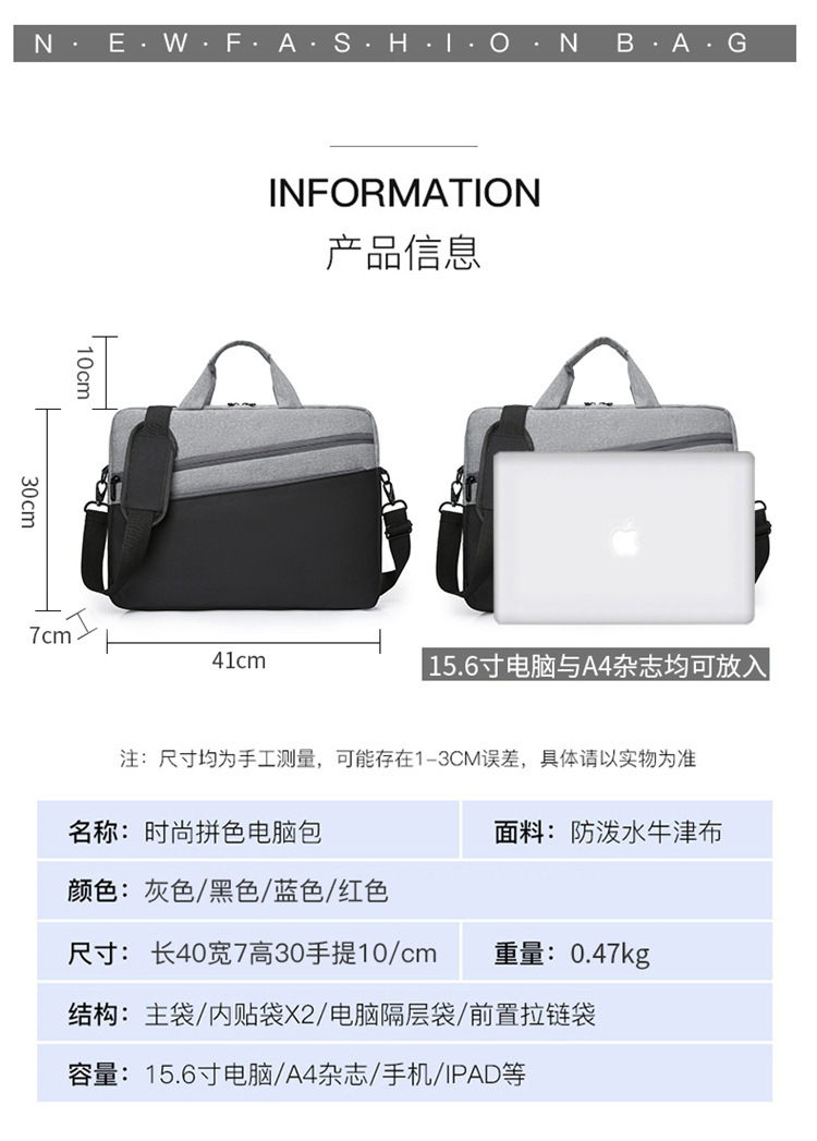 여름 새로운 남자의 비즈니스 노트북 가방 간단한 패션 휴대용 서류 가방 경량 비즈니스 회의 가방