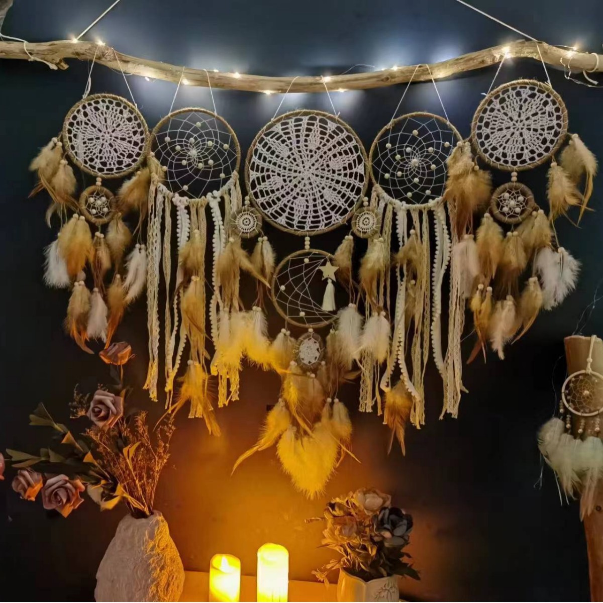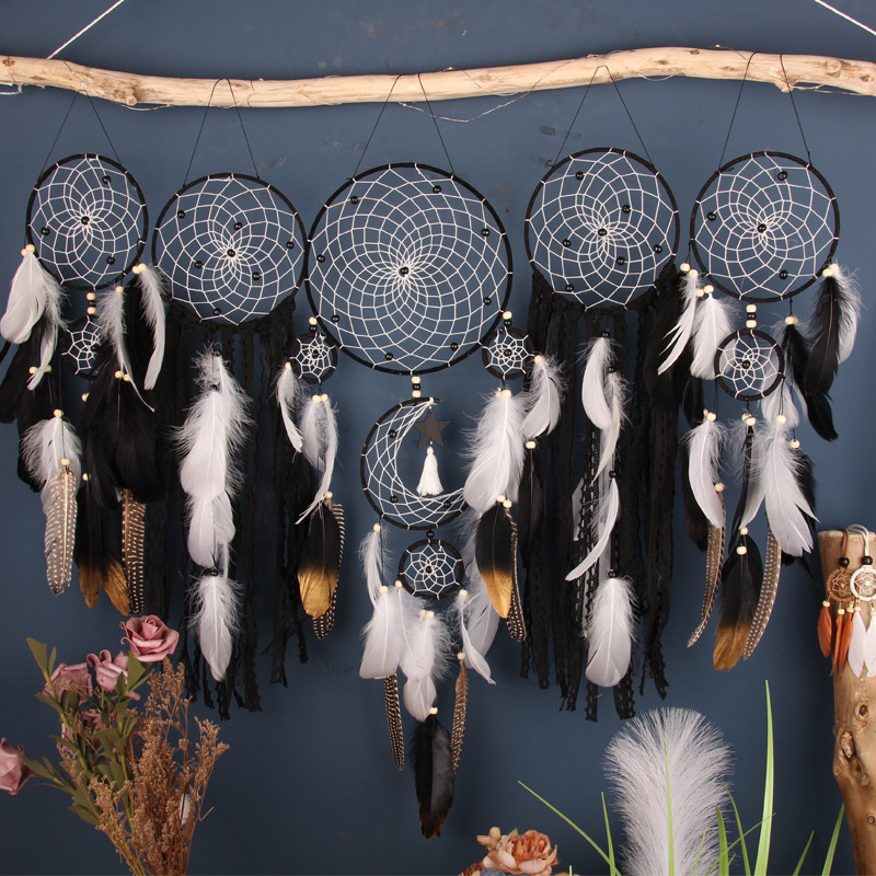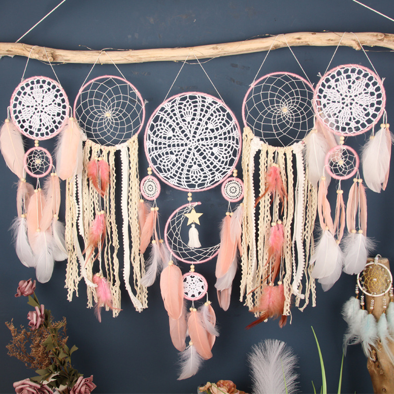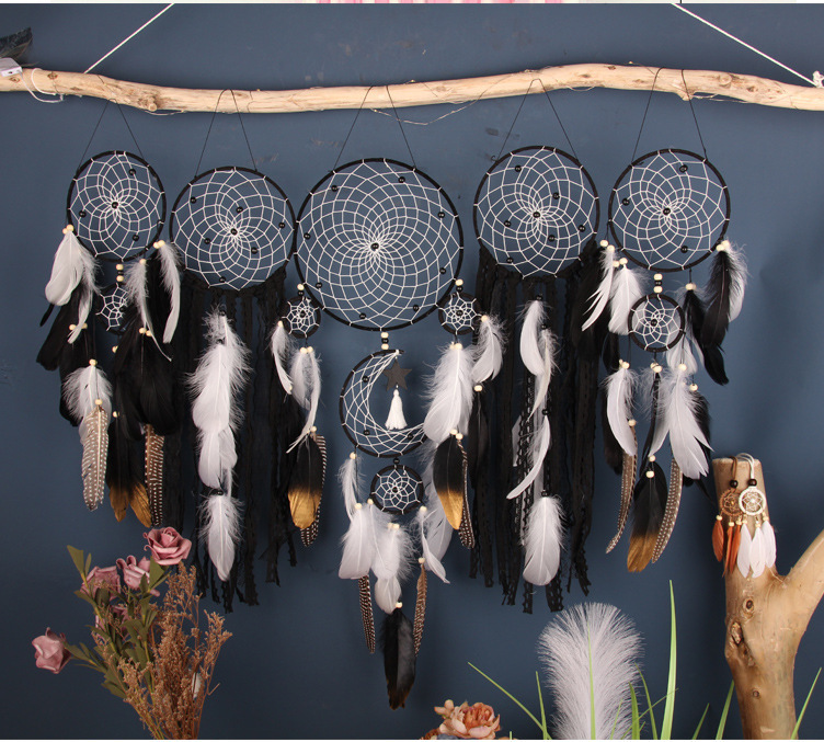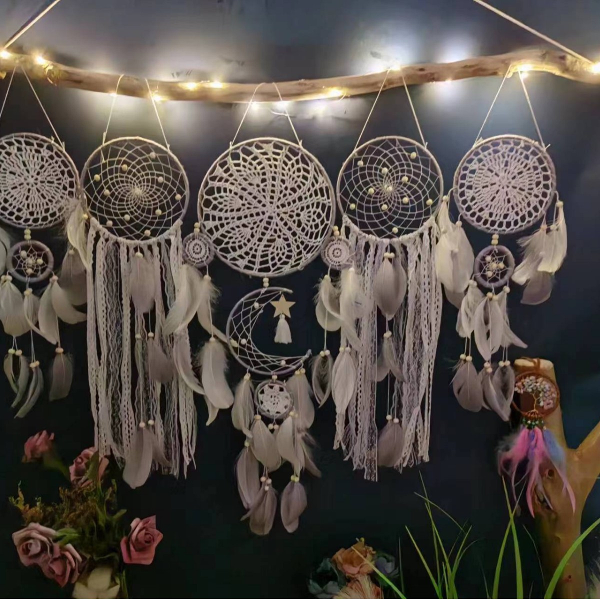 스타일 북유럽 벽걸이 드림 캐쳐 홈 깃털 5 피스 세트 매달려 장식 세트 소파 배경 벽 장식 공예스토어 가기