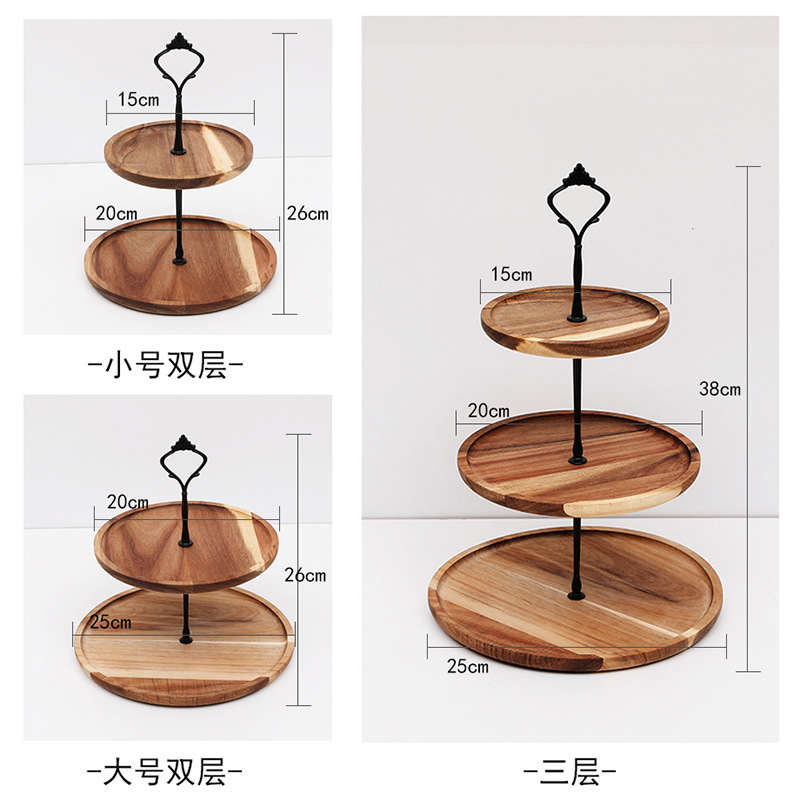 단단한 나무 디저트 테이블 장식품 케이크 랙 진열대 과일 접시 분배 트레이 다층 과일 접시 나무 선반스토어 가기