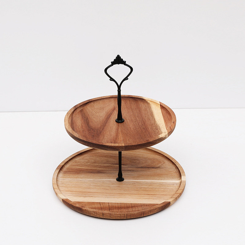 단단한 나무 디저트 테이블 장식품 케이크 랙 진열대 과일 접시 분배 트레이 다층 과일 접시 나무 선반