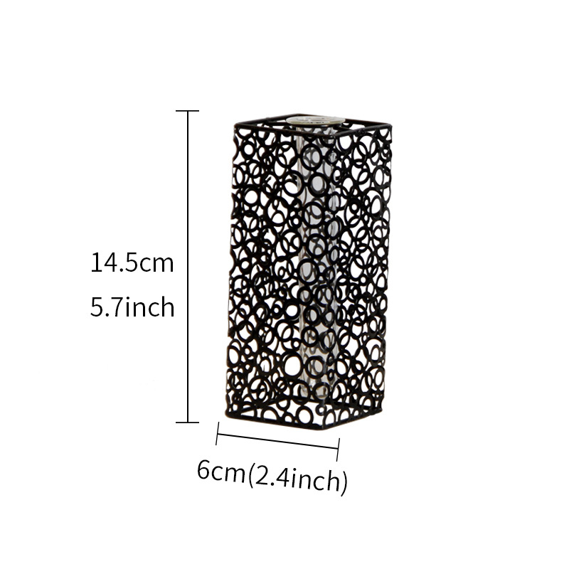 黑方柱试管花瓶-小号 长6CM,宽6CM,高10CM,总重量0.08KG,玻璃瓶子口径2CM,高10CM