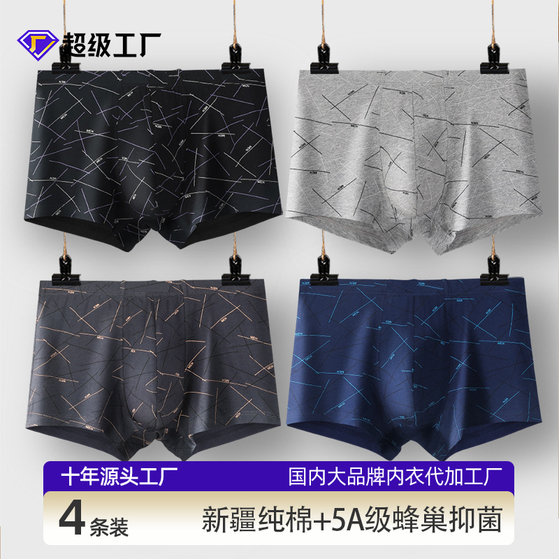 4 쌍 남성 속옷 면 정균 통기성 복서 유행 인쇄 남성 복서 속옷 스포츠 반바지스토어 가기