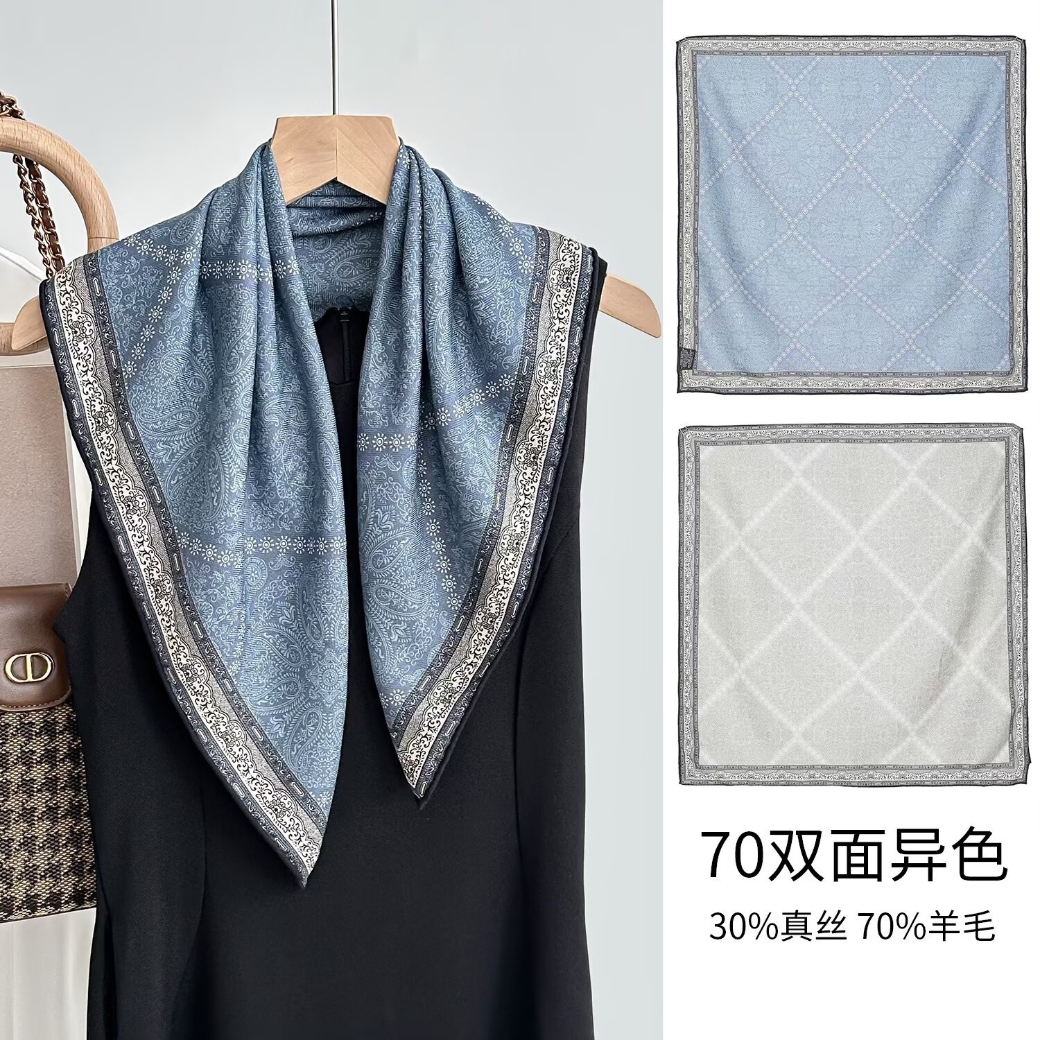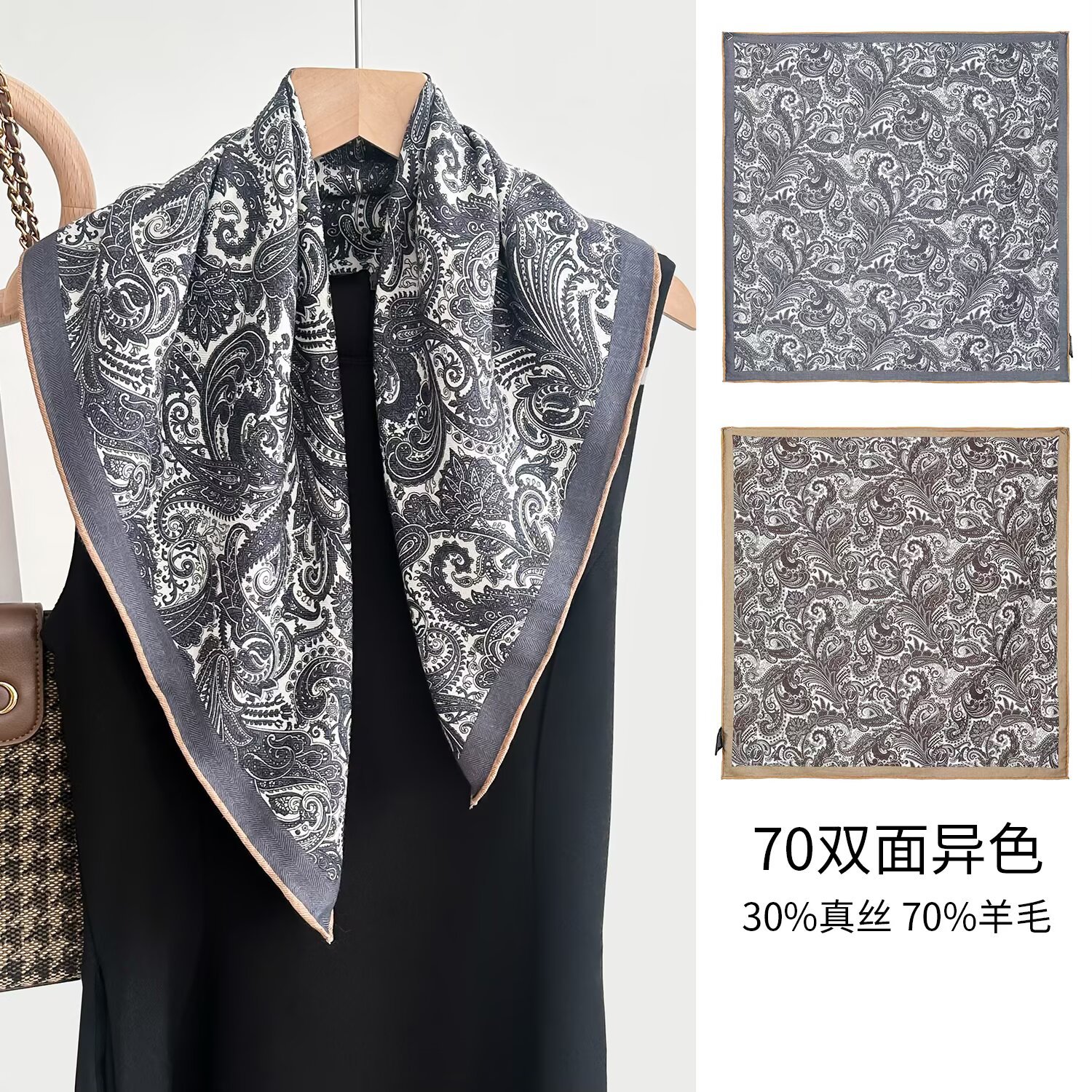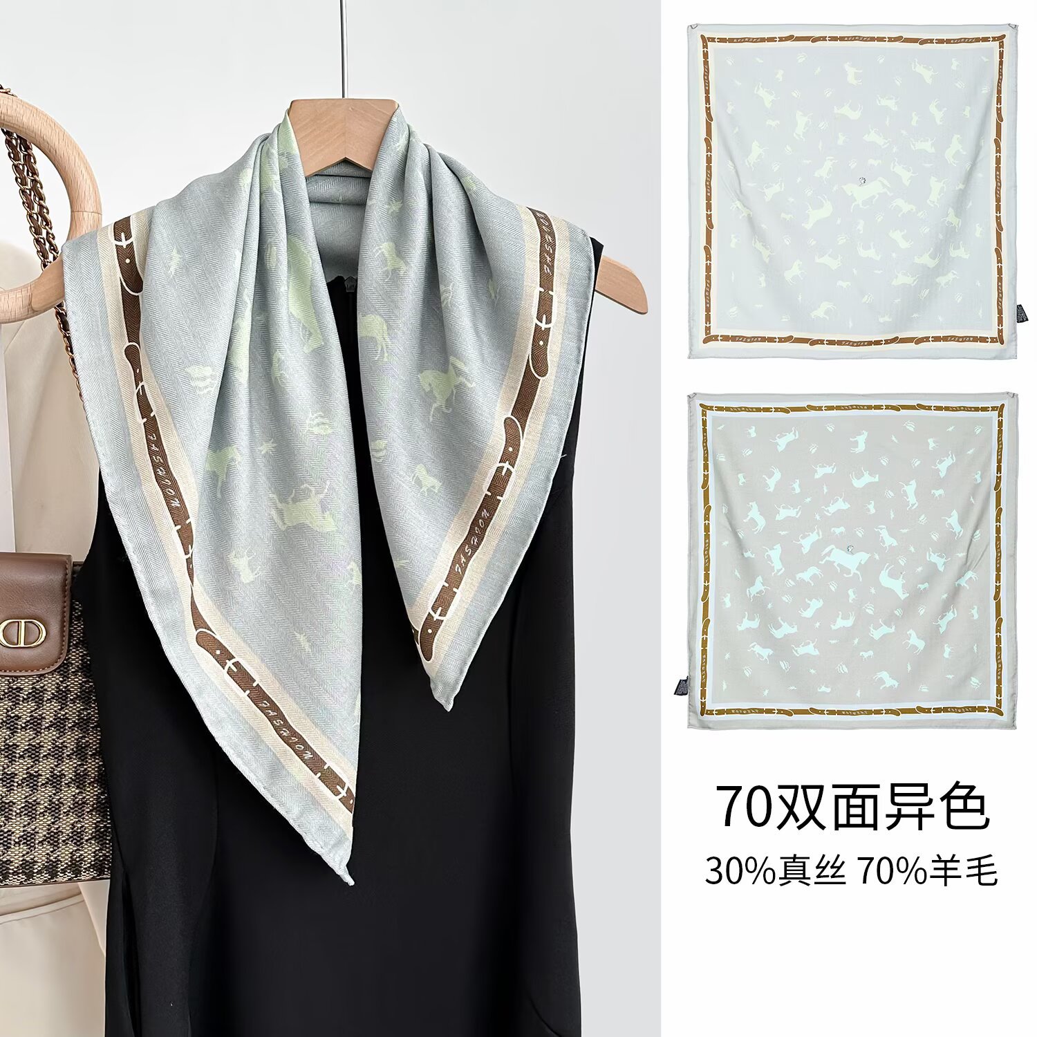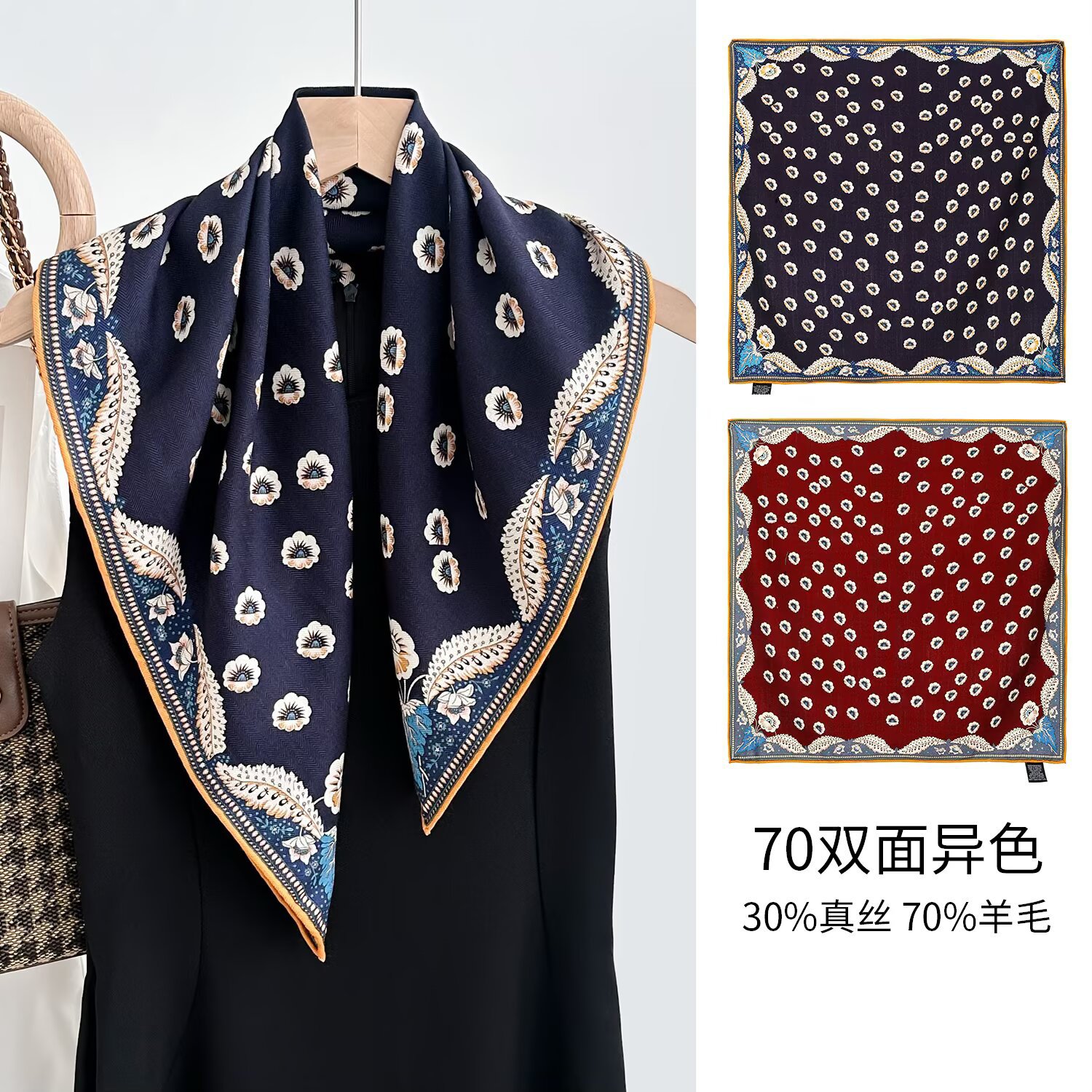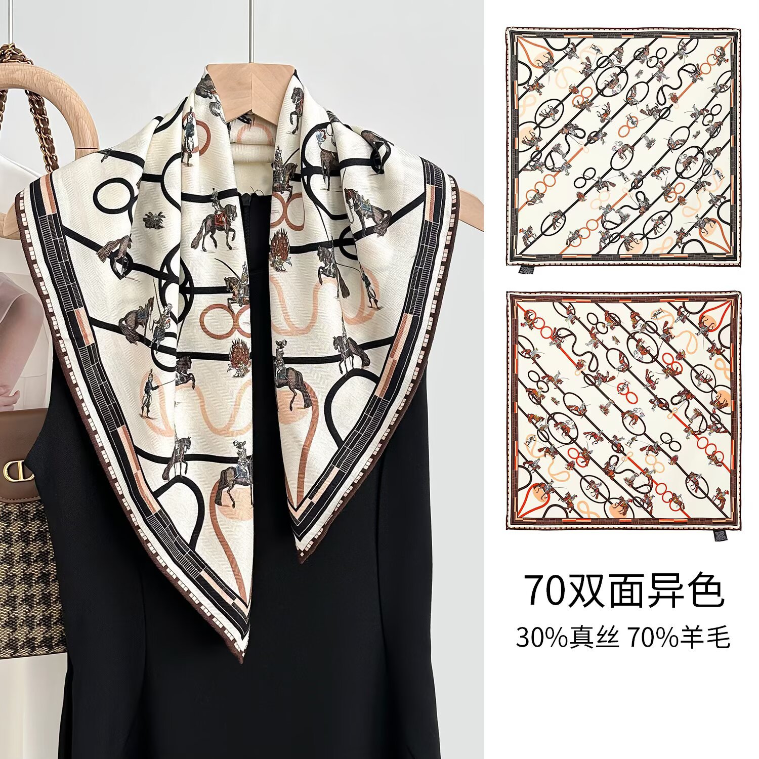 가을과 겨울 새로운 양면 2 색 동물 카니발 실크 울 스카프 여성용 가벼운 고급 고급 목도리 올 매치 스카프스토어 가기