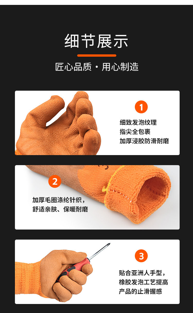 도매 테리 폼 라텍스 pvc 장갑 피부 친화적 인 두꺼운 폴리 에스테르 미끄럼 방지 니트 마모 방지 담근 보호 장갑