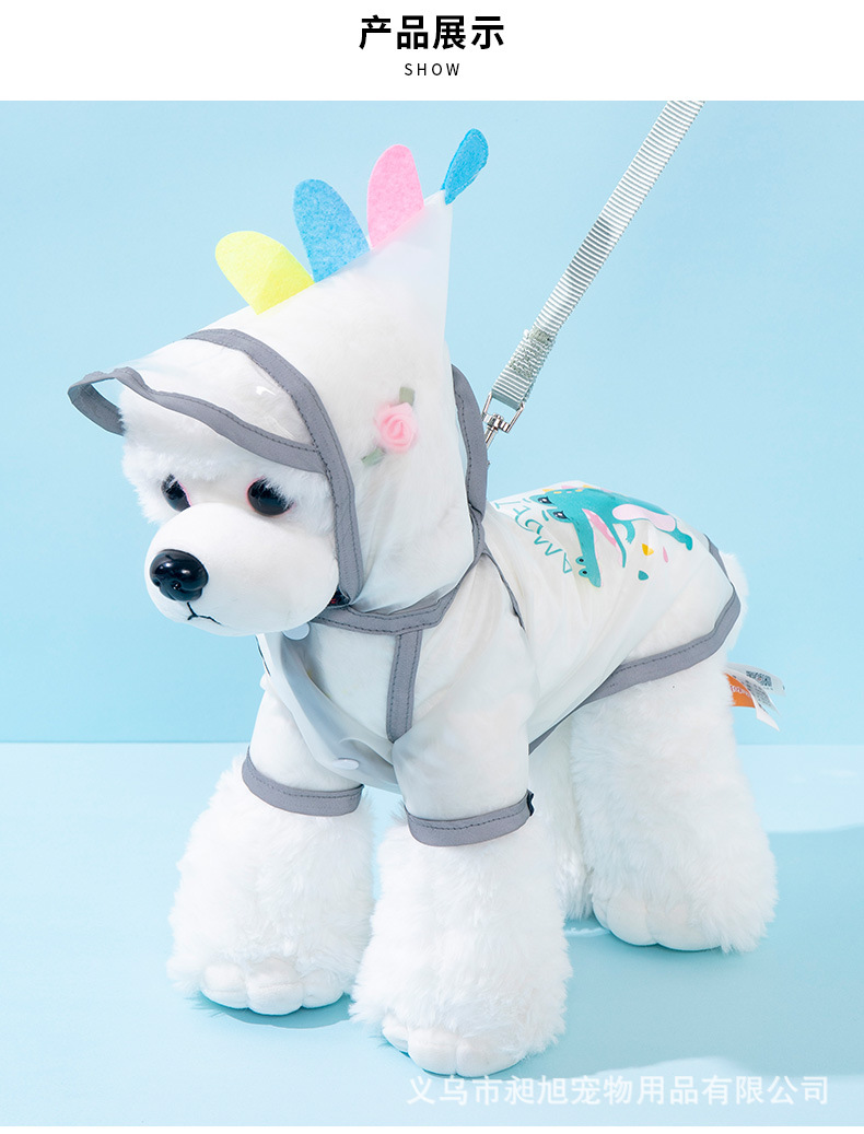 개 후드 비옷 테디 베어 투명 방수 판초 작은 개 비오는 날 여행 인쇄 비 세트