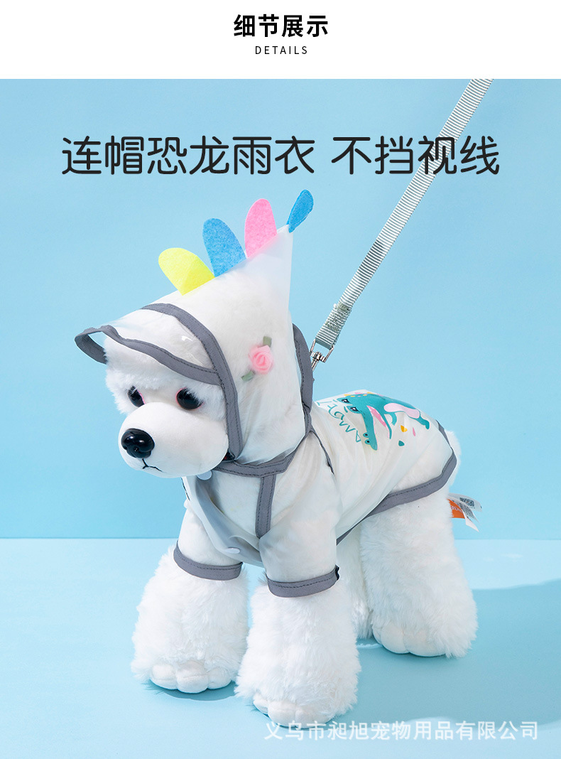 개 후드 비옷 테디 베어 투명 방수 판초 작은 개 비오는 날 여행 인쇄 비 세트스토어 가기