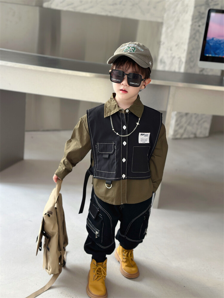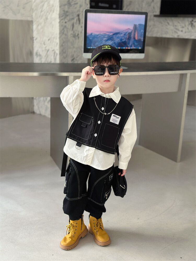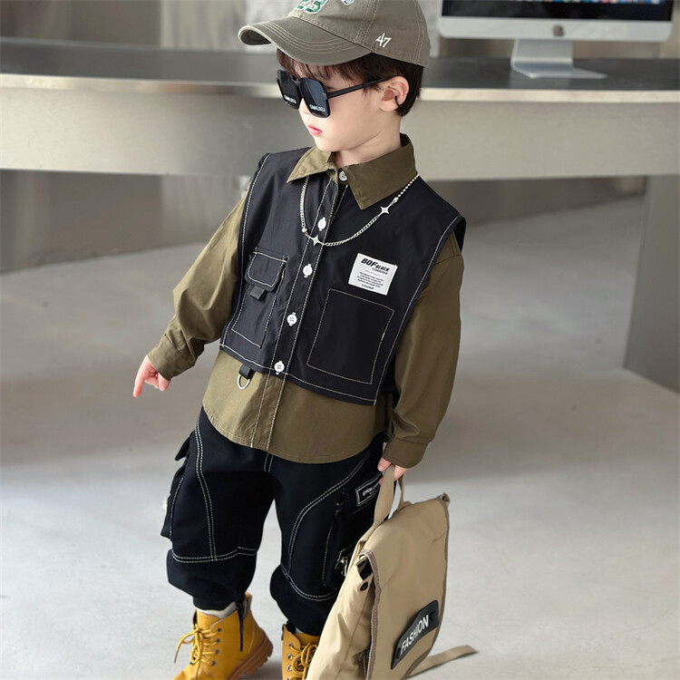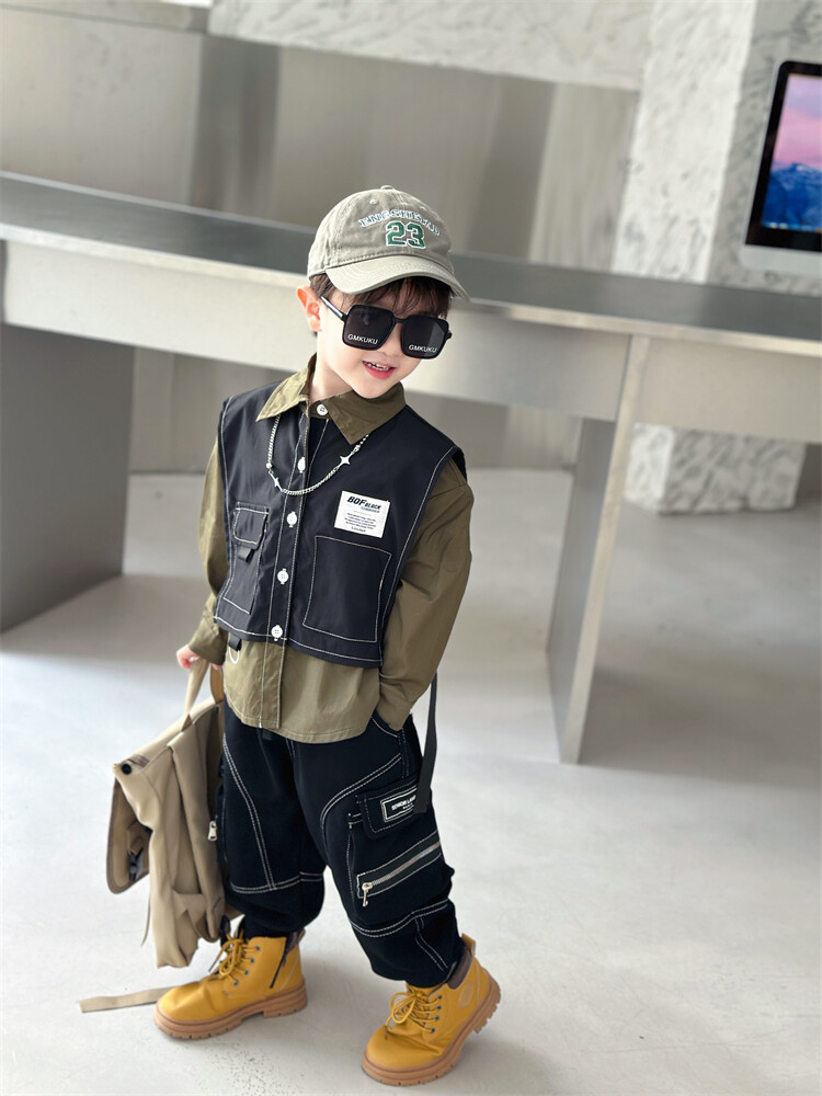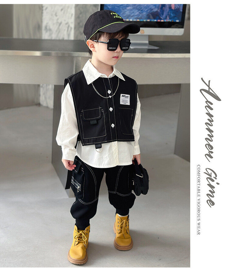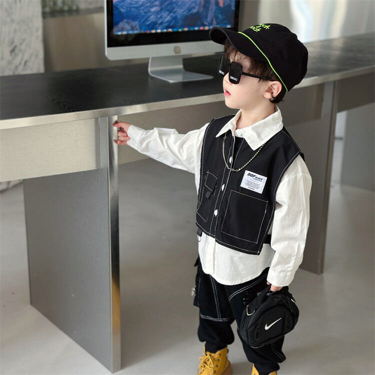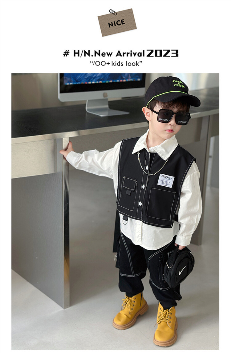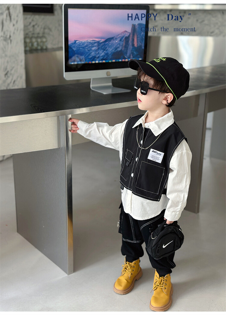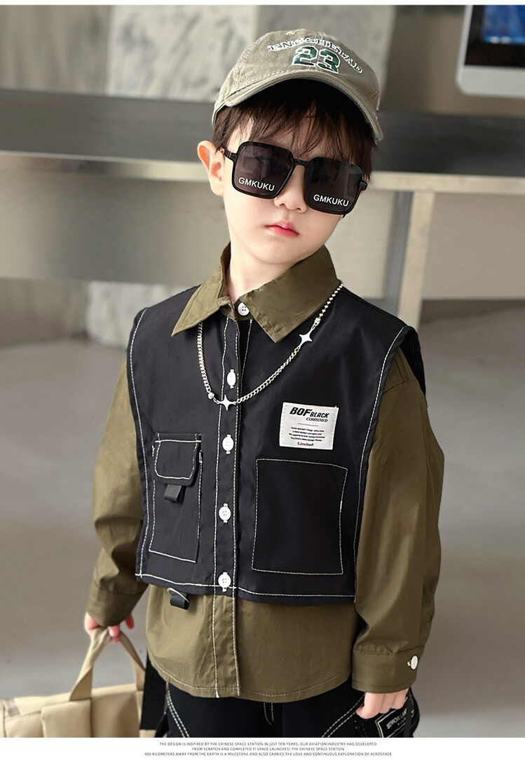 남아 조끼 스타일 투피스 셔츠 2026 봄 가을 신상 아동 멋진 셔츠 중소형 아동용 스트리트 스타일 상의 트렌디스토어 가기
