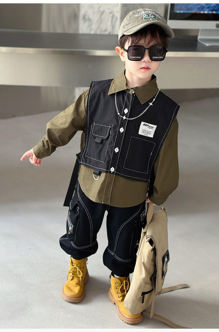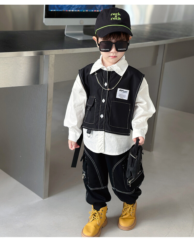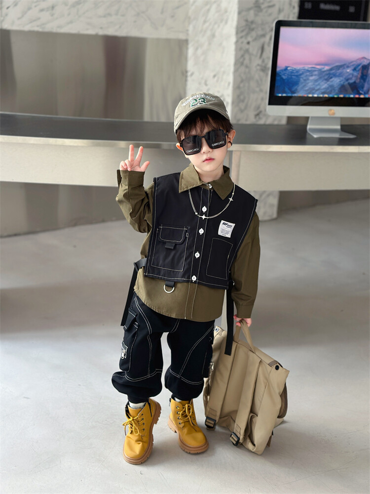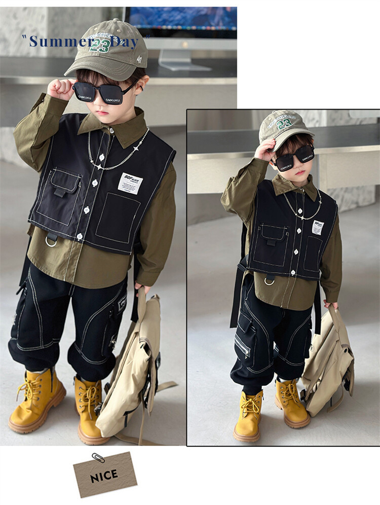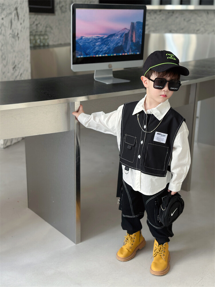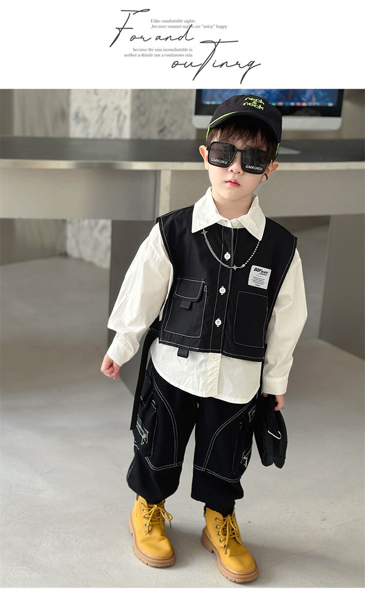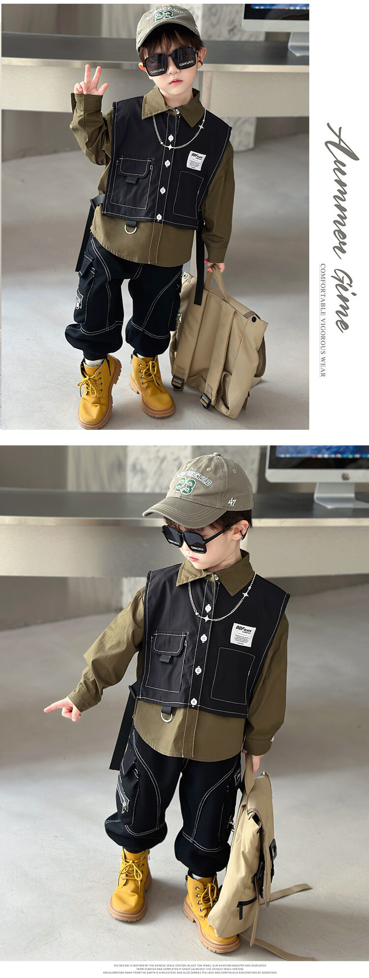 남아 조끼 스타일 투피스 셔츠 2026 봄 가을 신상 아동 멋진 셔츠 중소형 아동용 스트리트 스타일 상의 트렌디스토어 가기