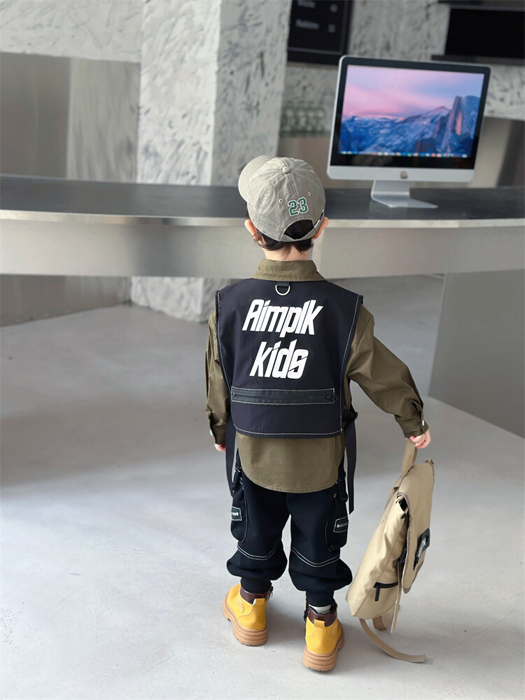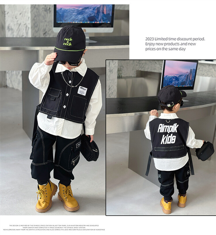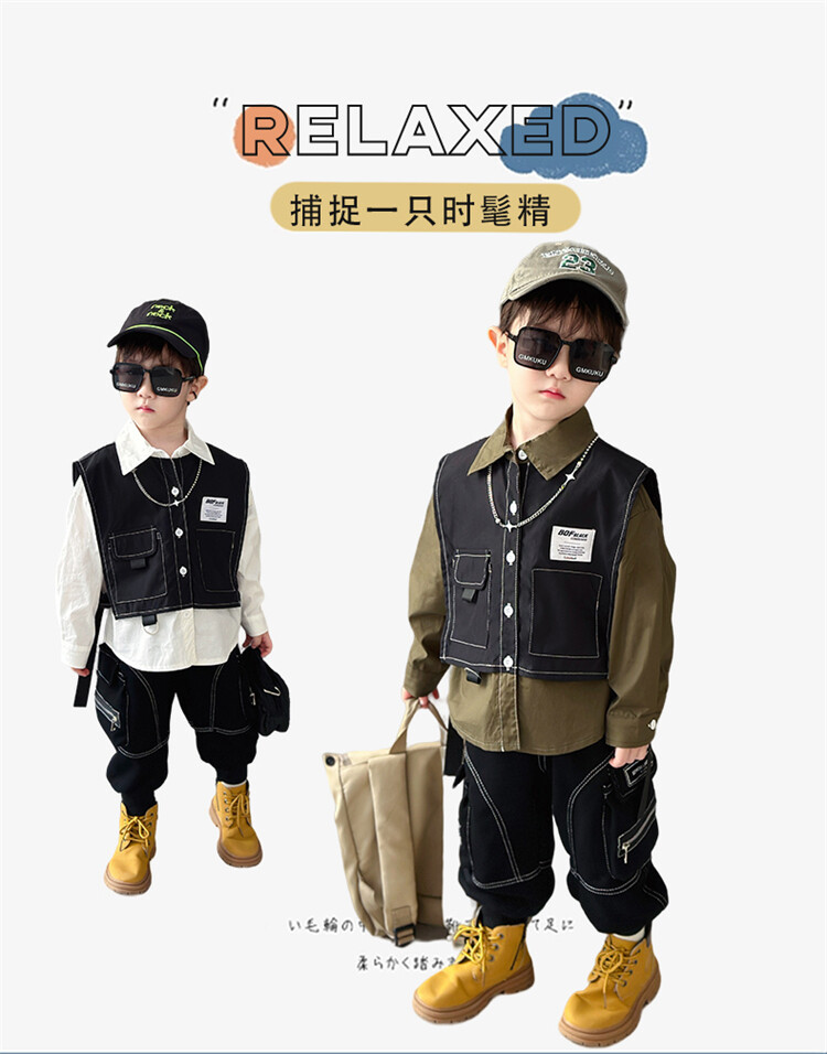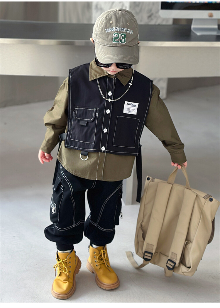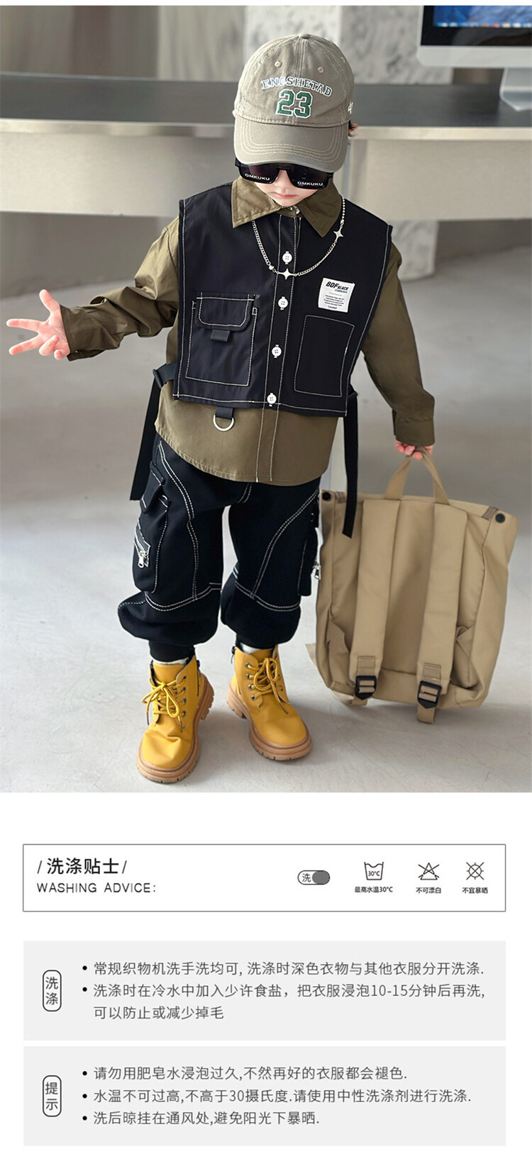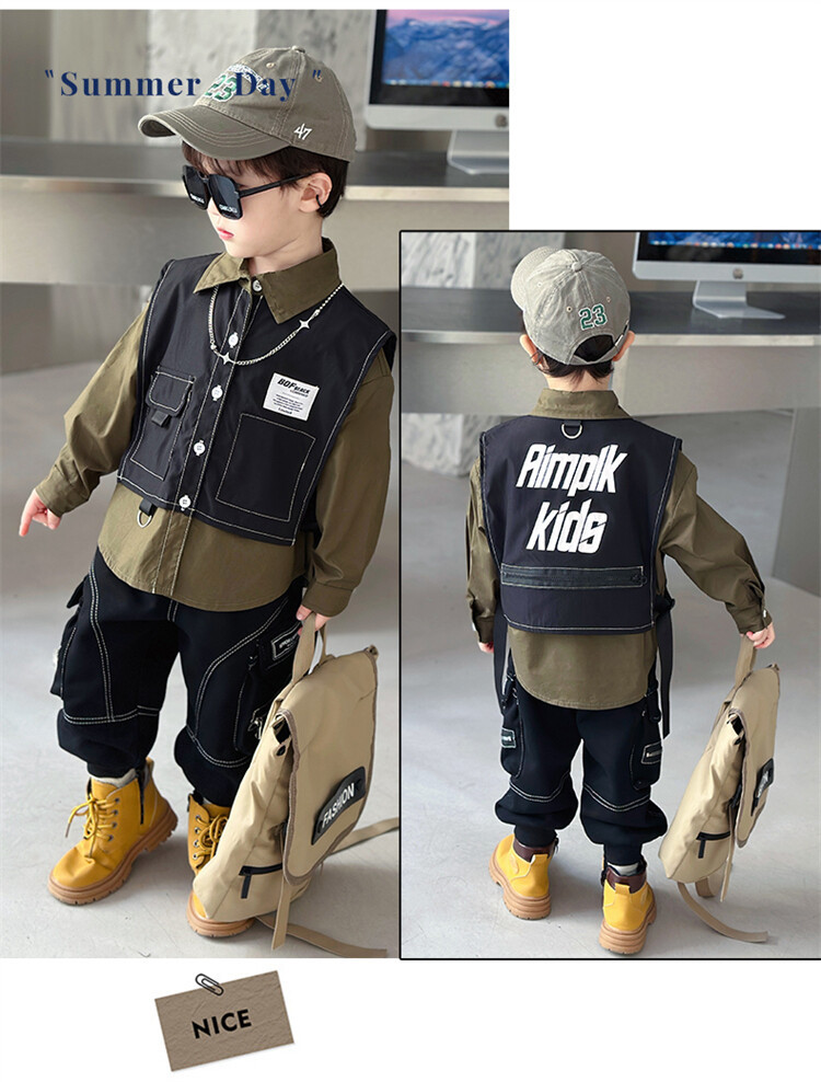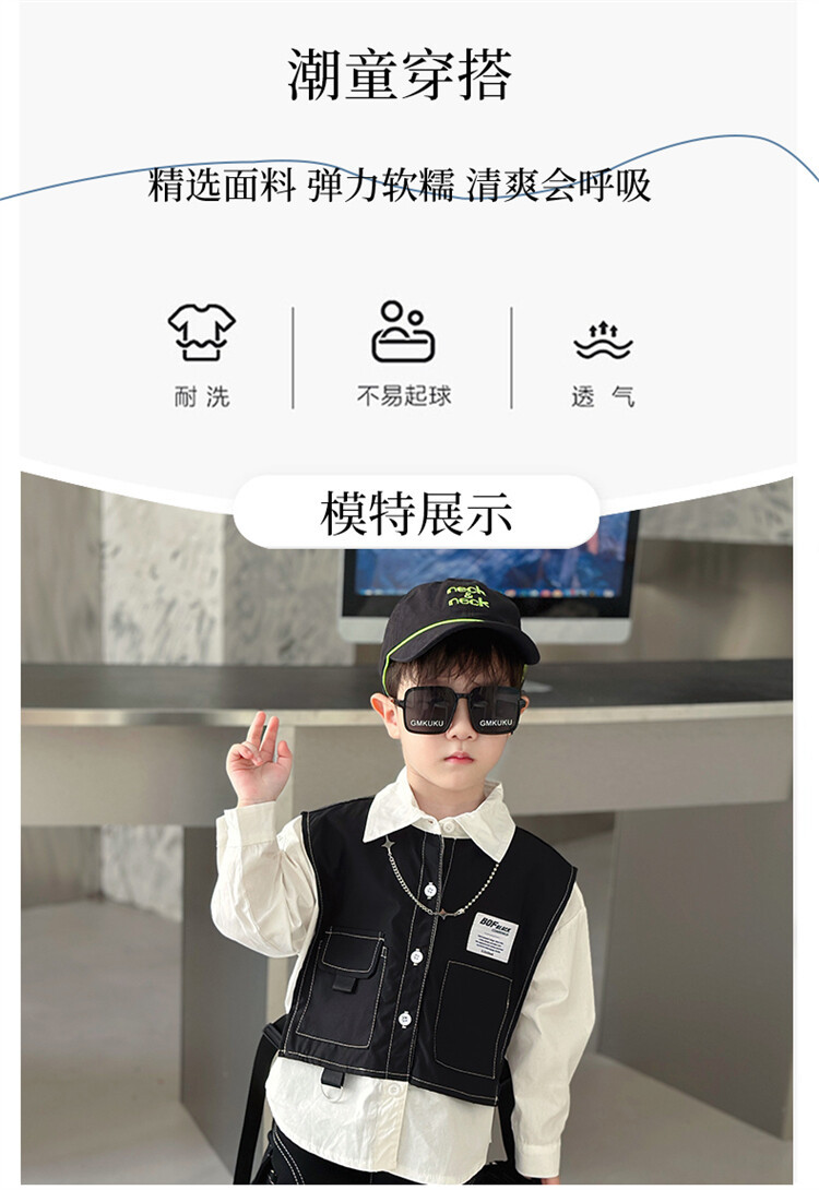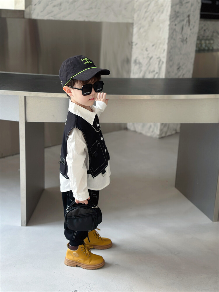 남아 조끼 스타일 투피스 셔츠 2026 봄 가을 신상 아동 멋진 셔츠 중소형 아동용 스트리트 스타일 상의 트렌디스토어 가기