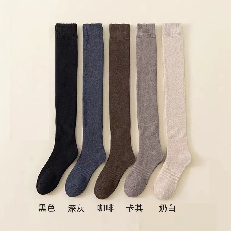 가을과 겨울 무릎 위 양말 길어진 두꺼운 새끼 양말 유행 면과 양털 반 양말 여성용 높은 양말 jk 양말