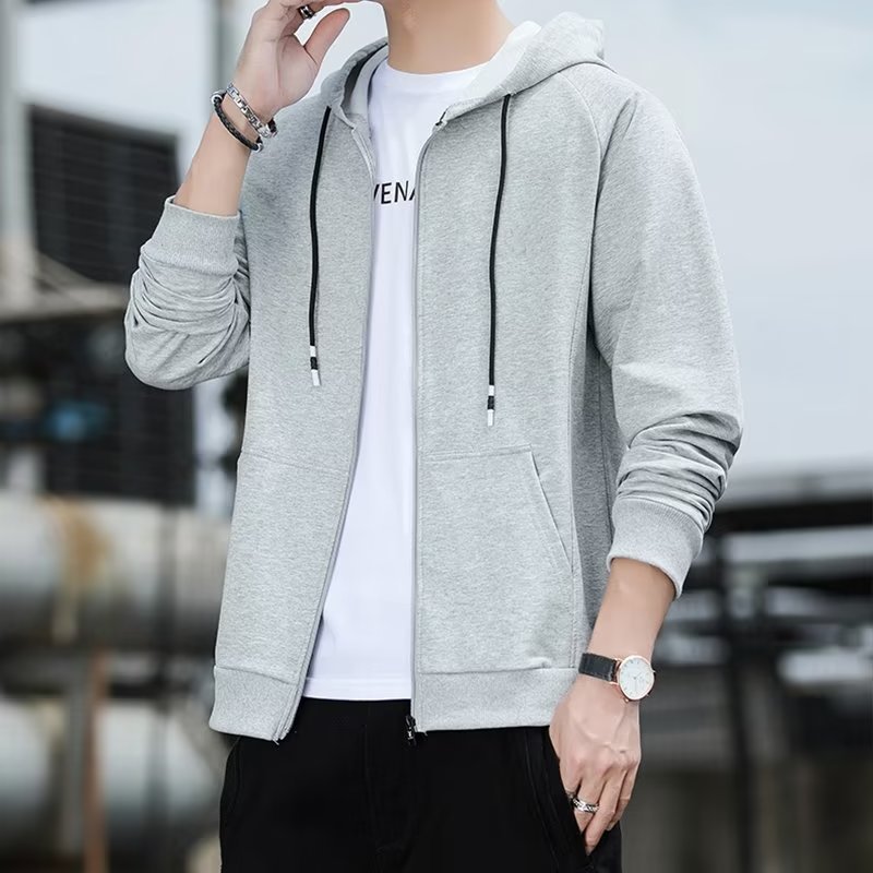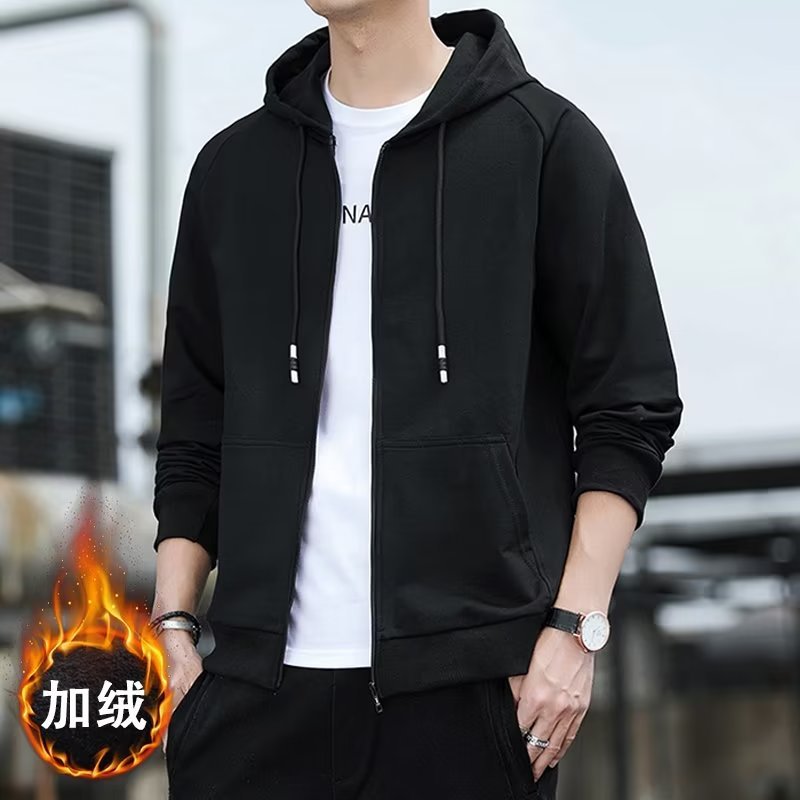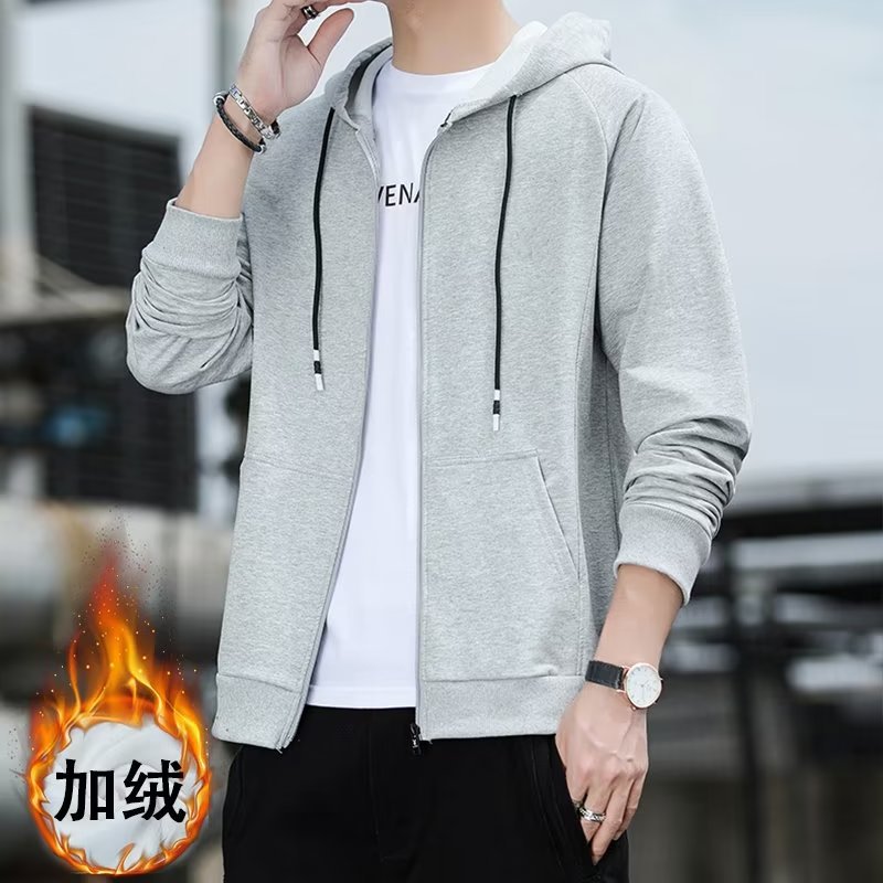 남성용 스웨트셔츠 홍콩 스타일 얇은 루즈핏 캐주얼 긴팔 가디건 학생용 단색 후드 재킷 봄 가을 겨울용 플리스 재킷스토어 가기