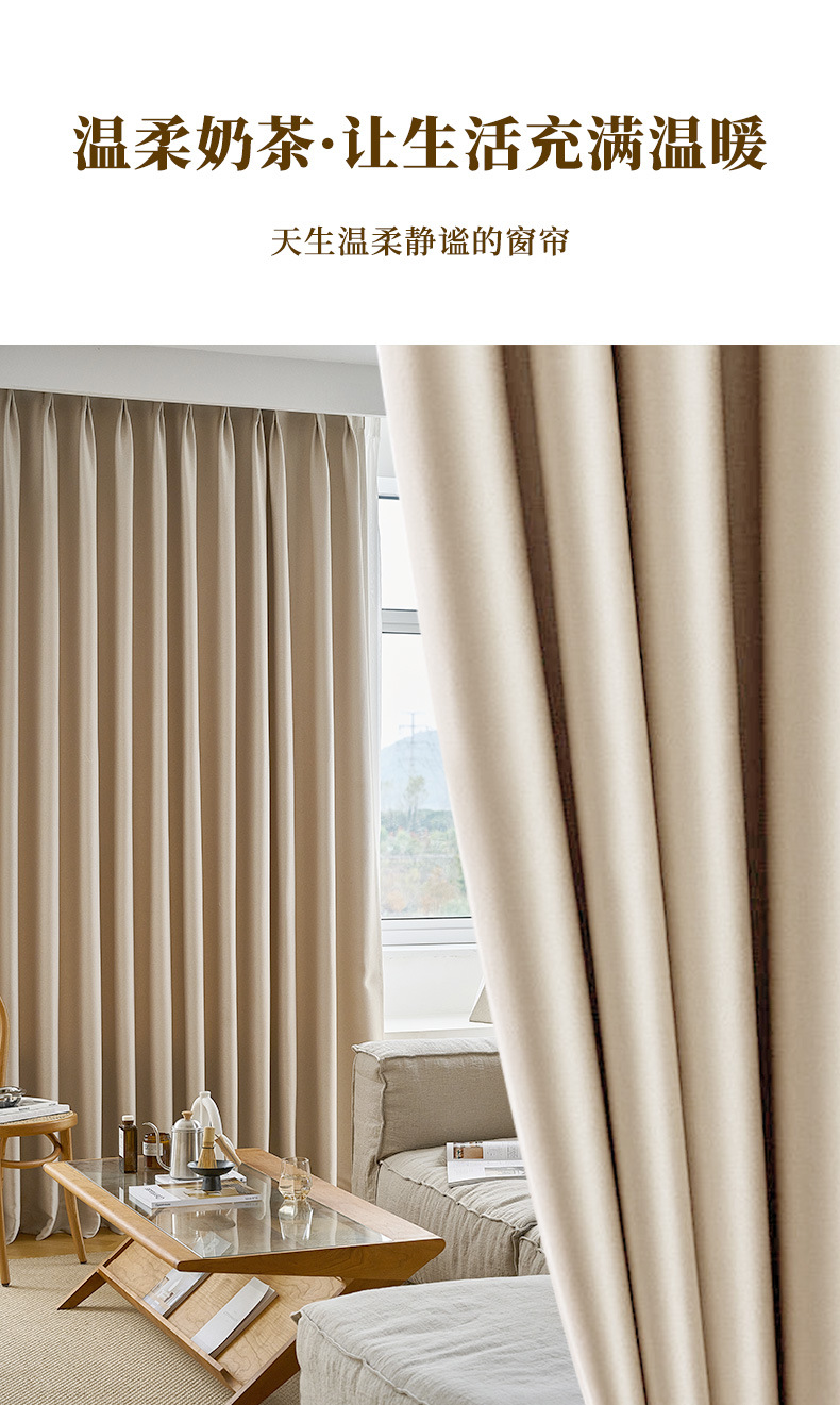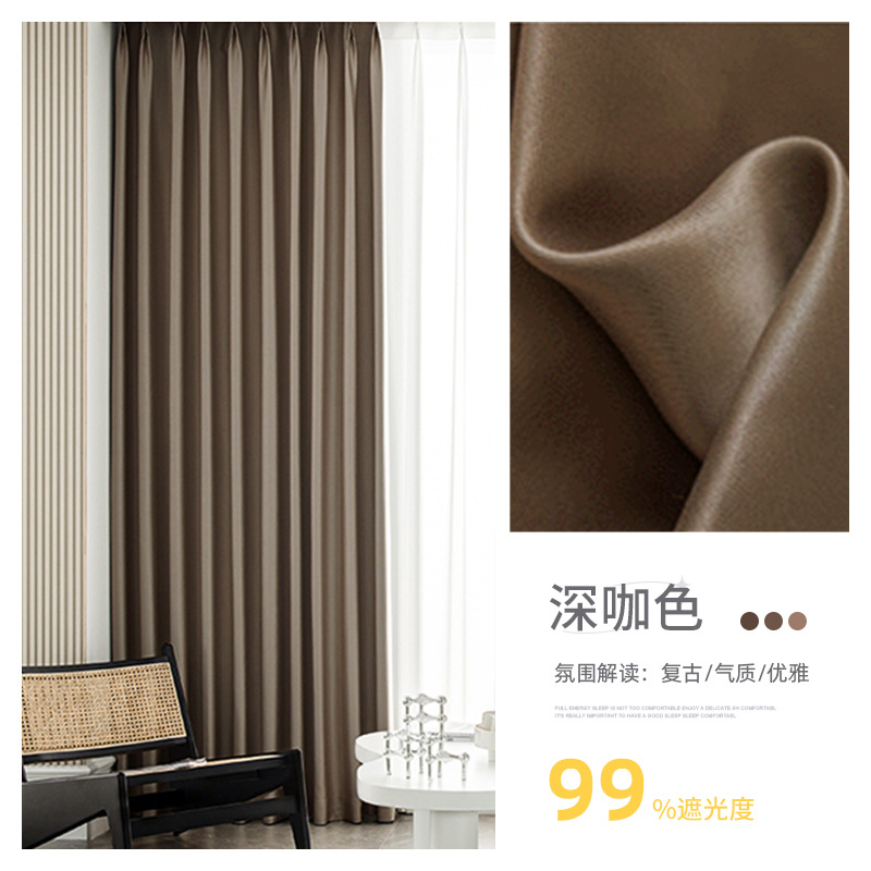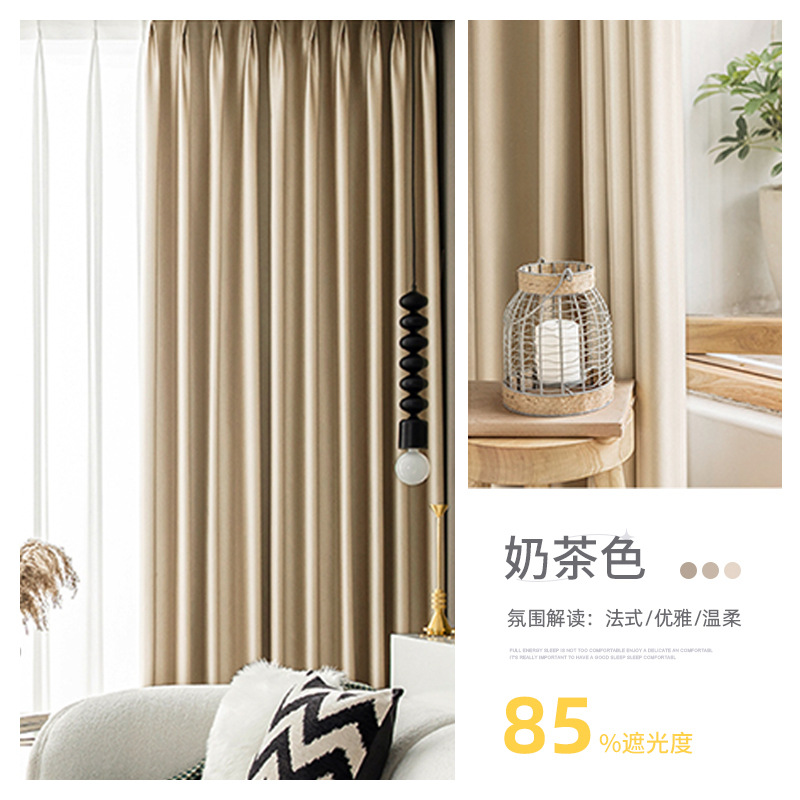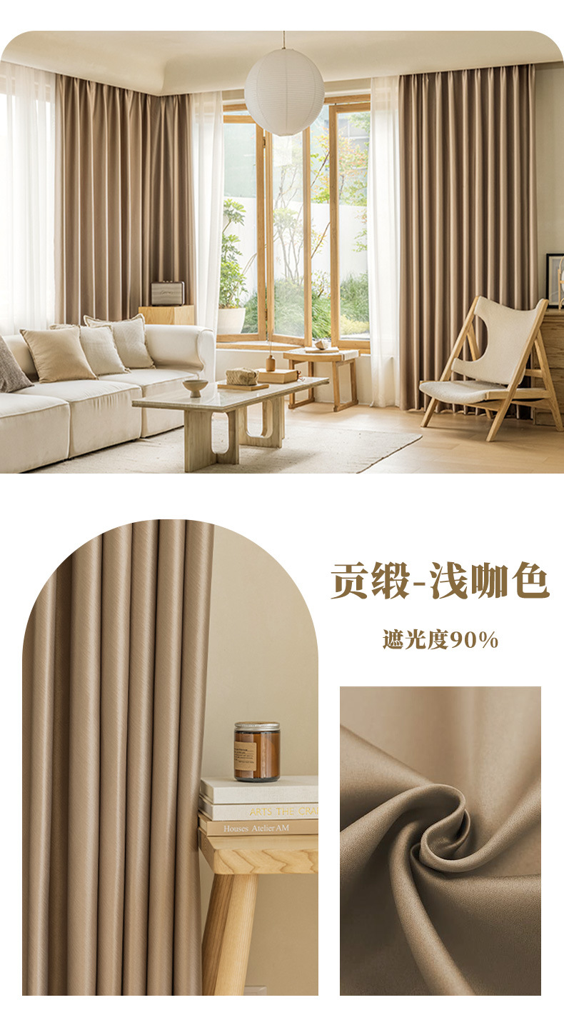 소흥 커튼 도매 우유 차 컬러 새틴 커튼 음영 새틴 침실 거실 선 스크린 커튼스토어 가기