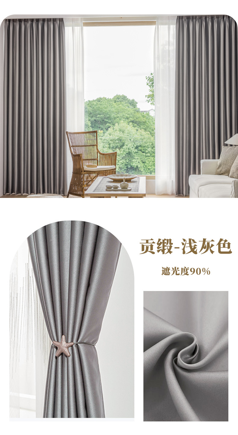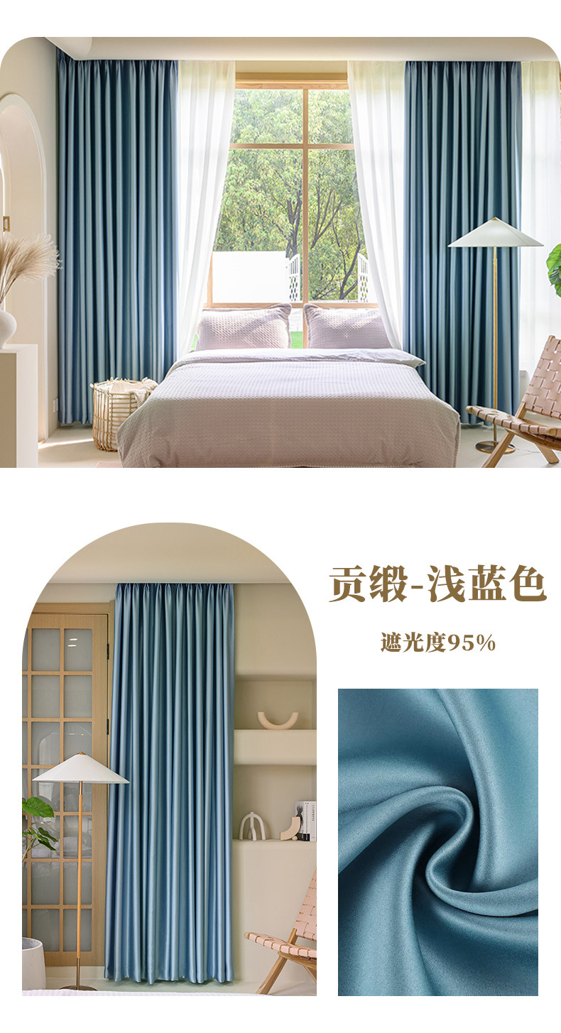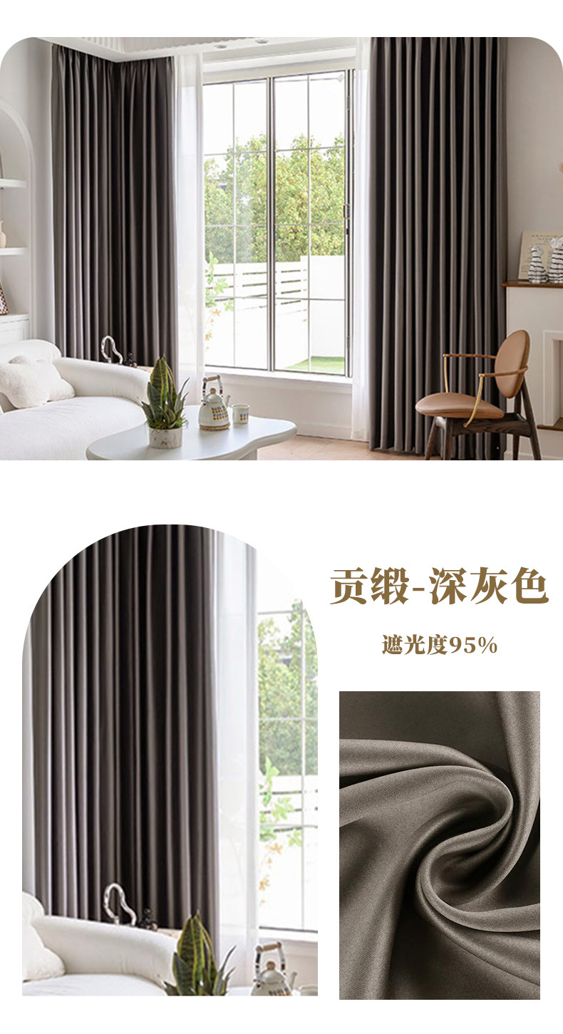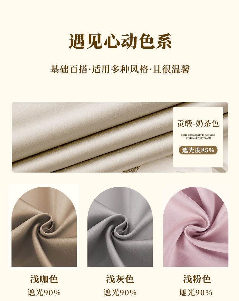 소흥 커튼 도매 우유 차 컬러 새틴 커튼 음영 새틴 침실 거실 선 스크린 커튼스토어 가기
