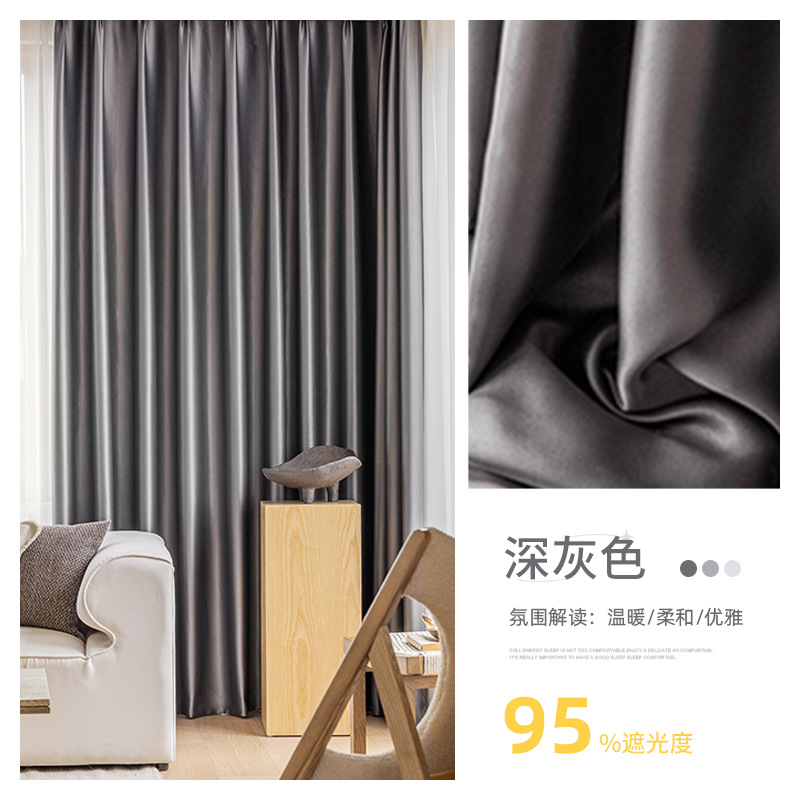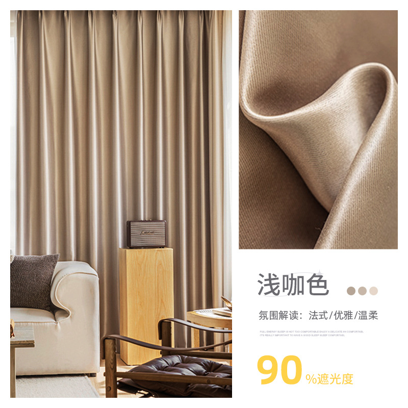 소흥 커튼 도매 우유 차 컬러 새틴 커튼 음영 새틴 침실 거실 선 스크린 커튼