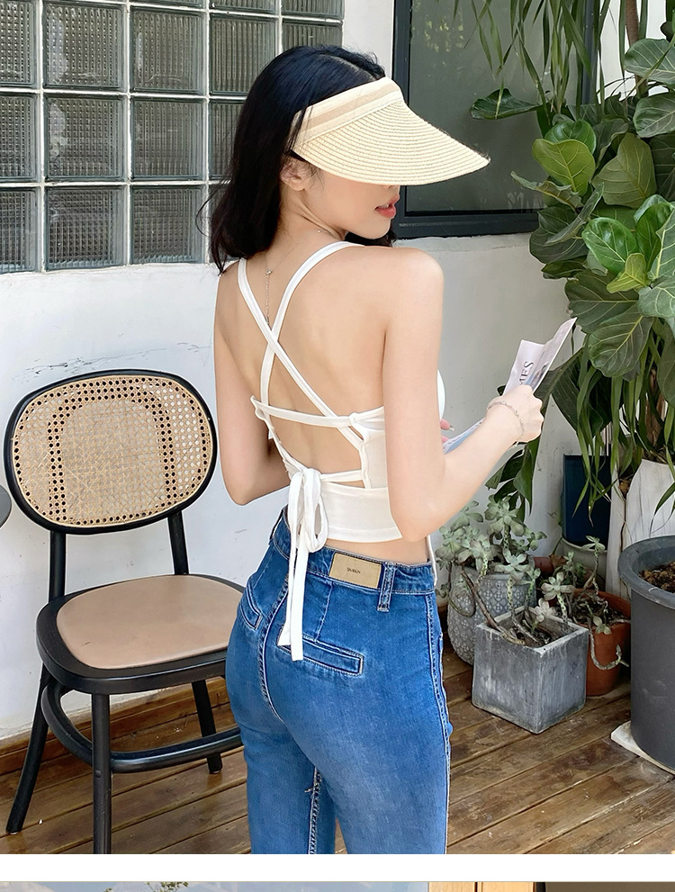 핫 걸 백 크로스 스트랩 아름다운 백 슬링 조끼 벨트 가슴 패드 겉옷 내부베이스 민소매 탑스토어 가기