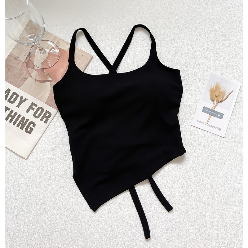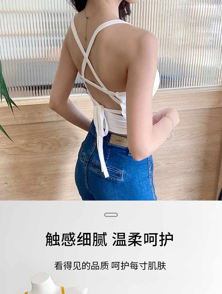 핫 걸 백 크로스 스트랩 아름다운 백 슬링 조끼 벨트 가슴 패드 겉옷 내부베이스 민소매 탑