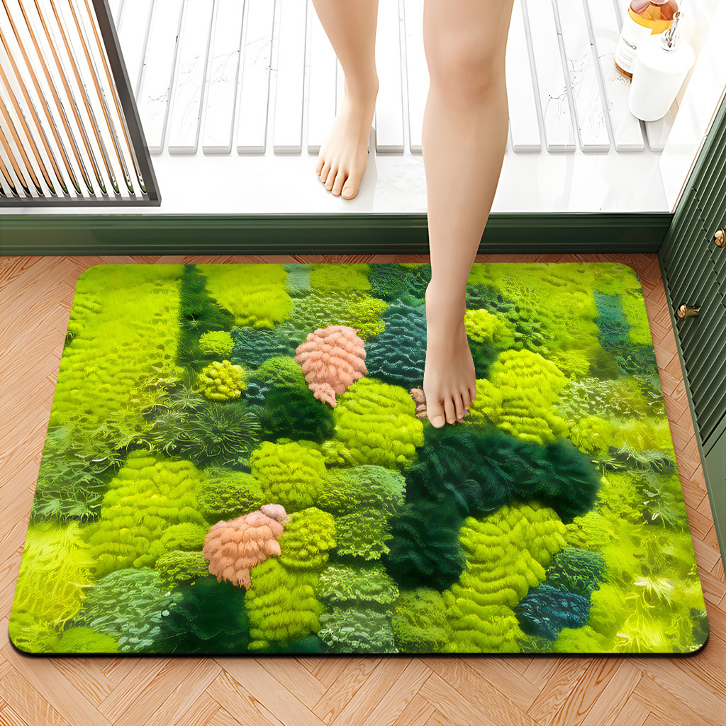 아마존 핫 도어 입구 욕실 이끼 카펫 미끄럼 방지 욕실 흡수성 발 매트 플로킹 매트