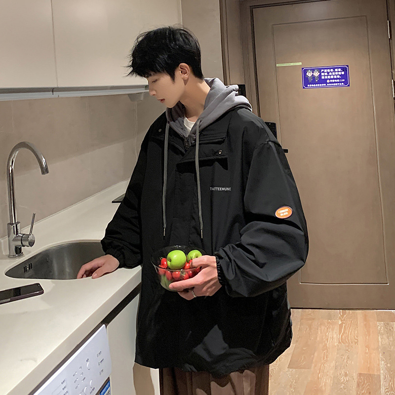 십대 가짜 투피스 재킷 남자의 봄과 가을 새로운 유행 브랜드 소년을위한 느슨한 플러스 사이즈 작업복 러쉬 재킷스토어 가기