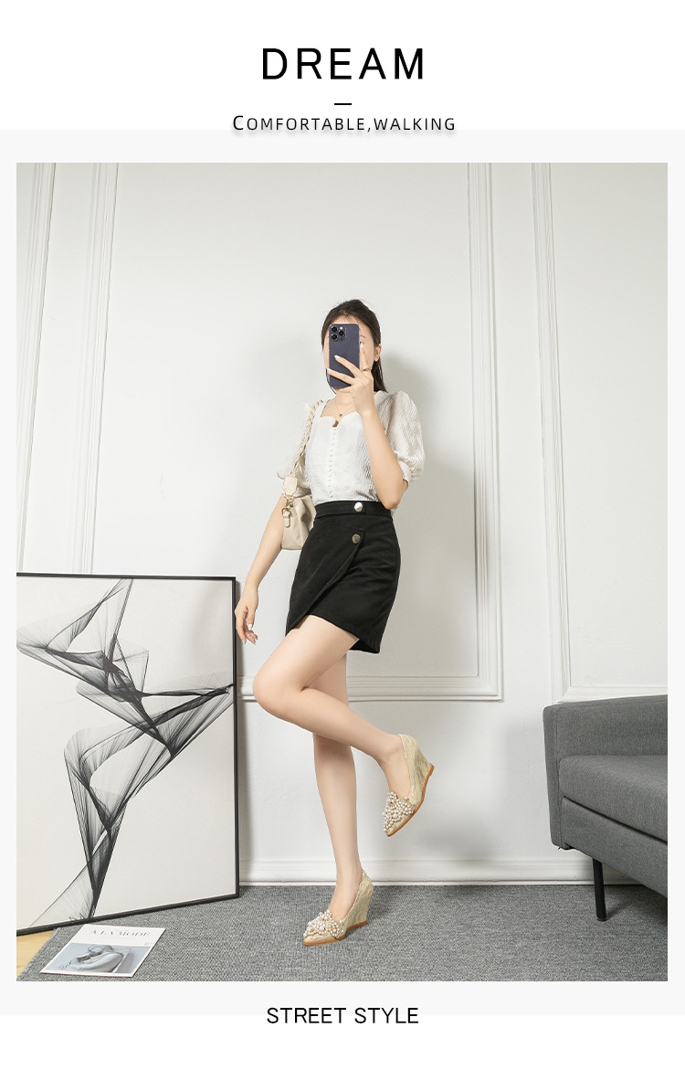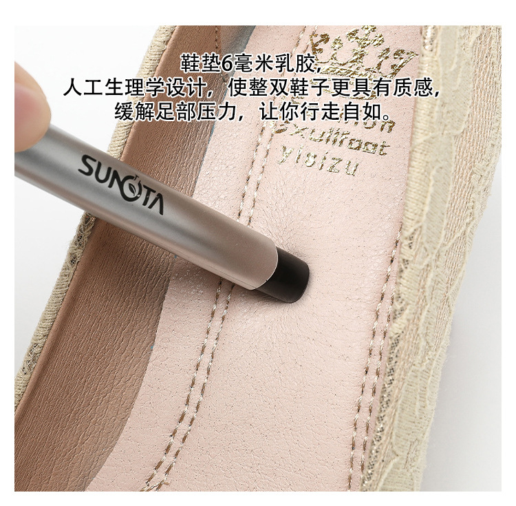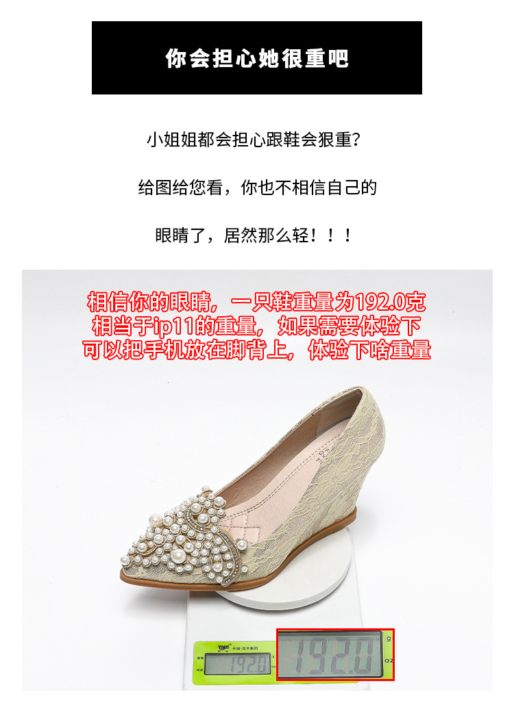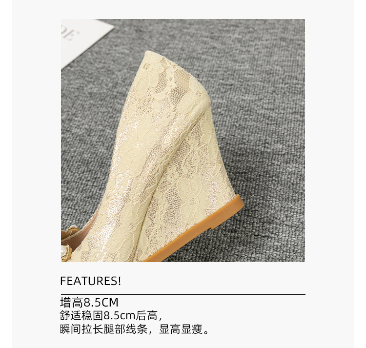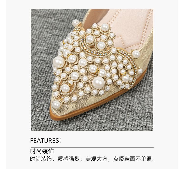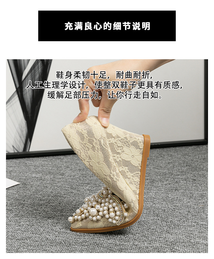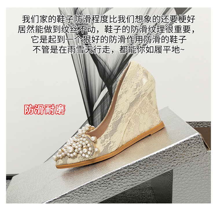 여성용 웨지힐 슈즈 2024 가을 신상 두꺼운 밑창 패션 자수 진주 레이스 살구색 하이힐 여성용 뾰족 구두스토어 가기