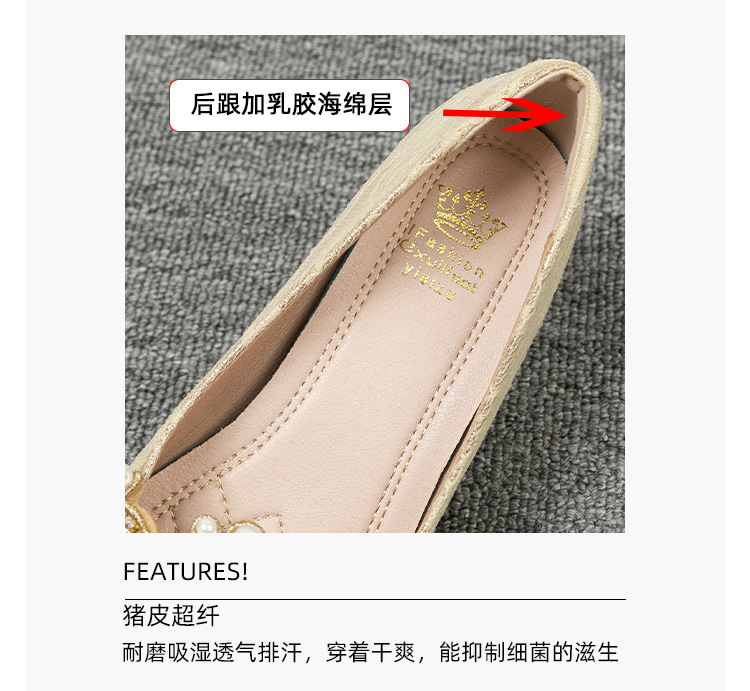 여성용 웨지힐 슈즈 2024 가을 신상 두꺼운 밑창 패션 자수 진주 레이스 살구색 하이힐 여성용 뾰족 구두
