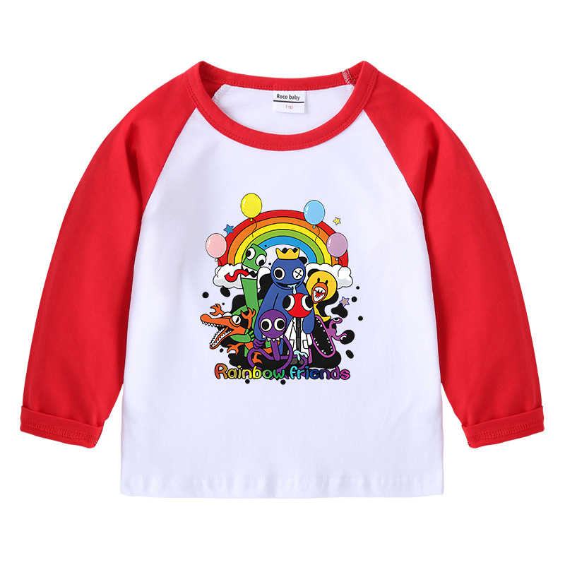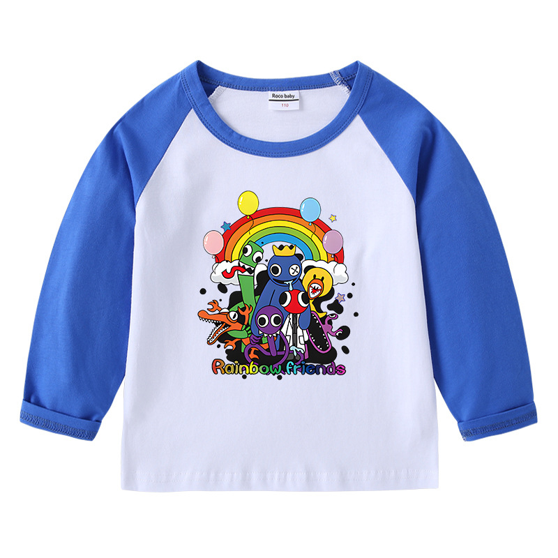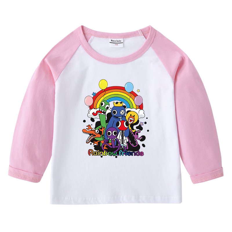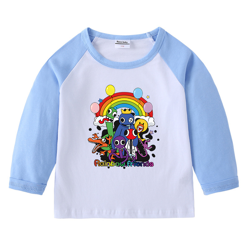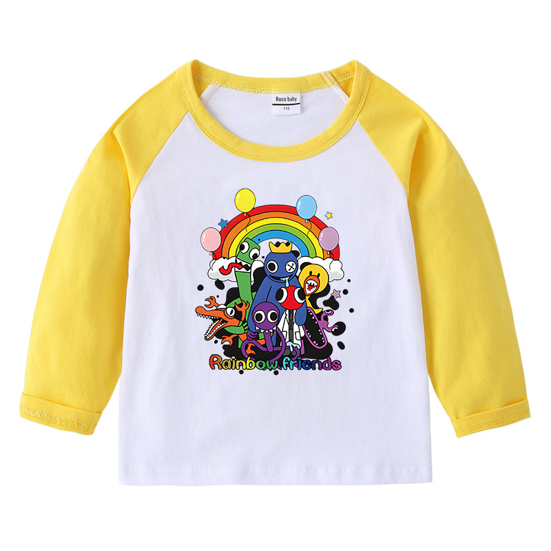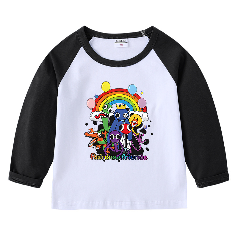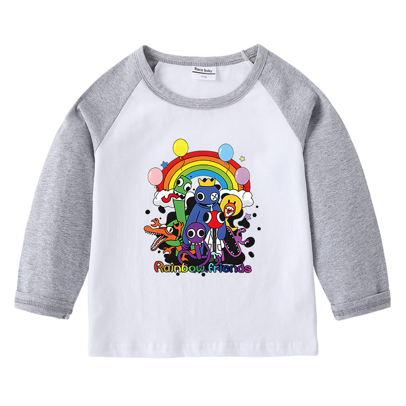2023 크로스 보더 새로운 봄과 가을 어린이 티셔츠 라운드 넥 만화 긴 소매 탑베이스 셔츠 소년과 소녀 아기 면 티셔츠스토어 가기