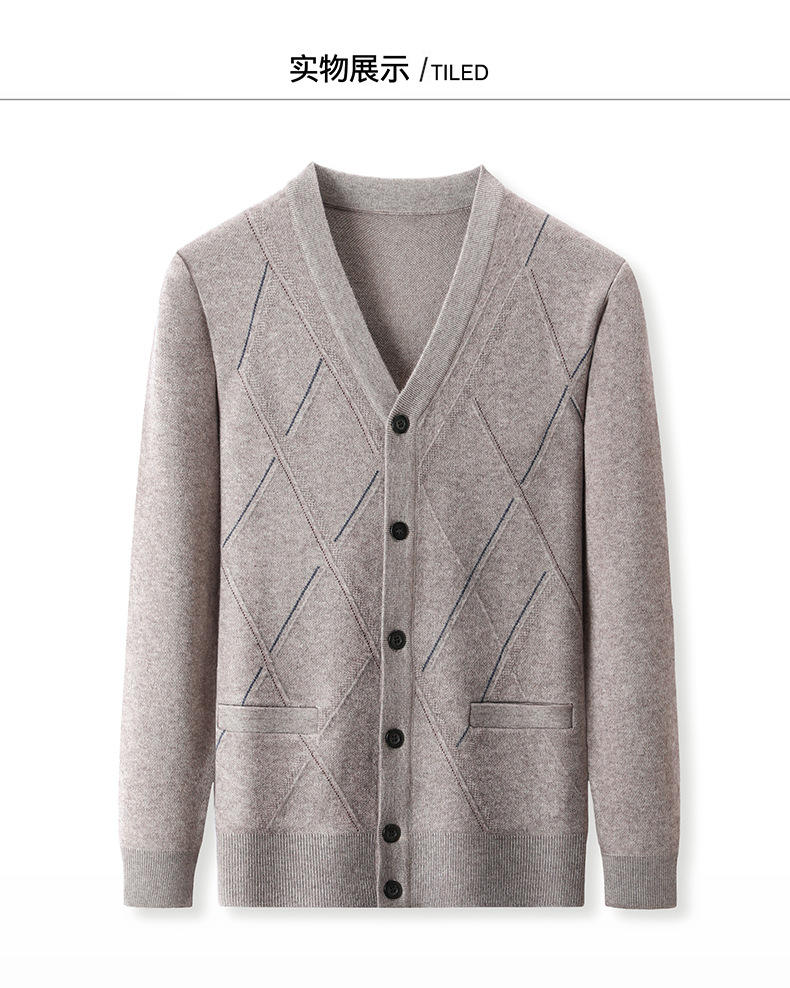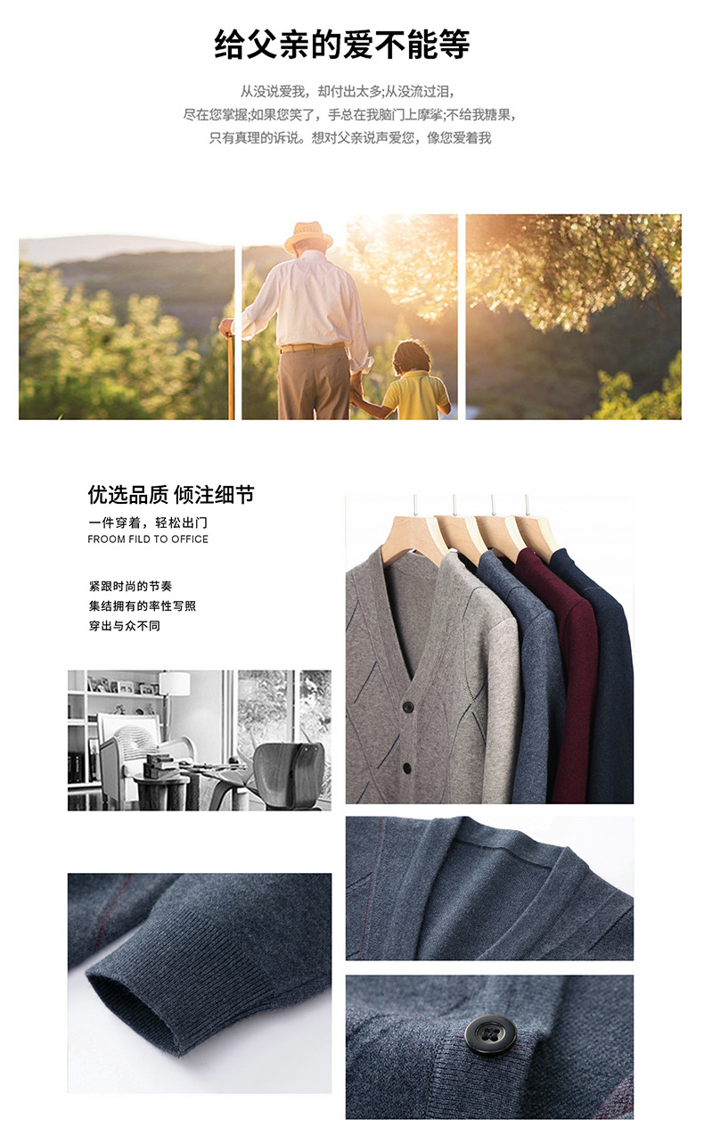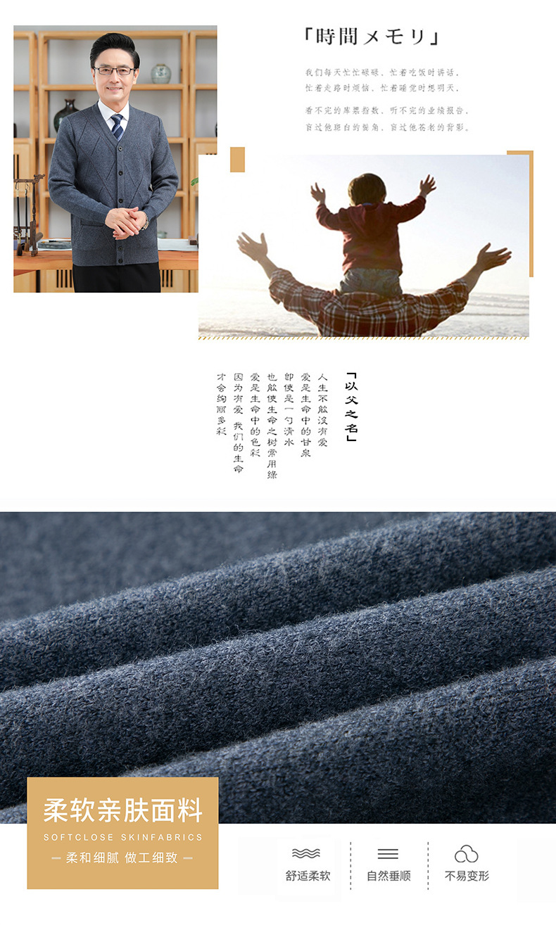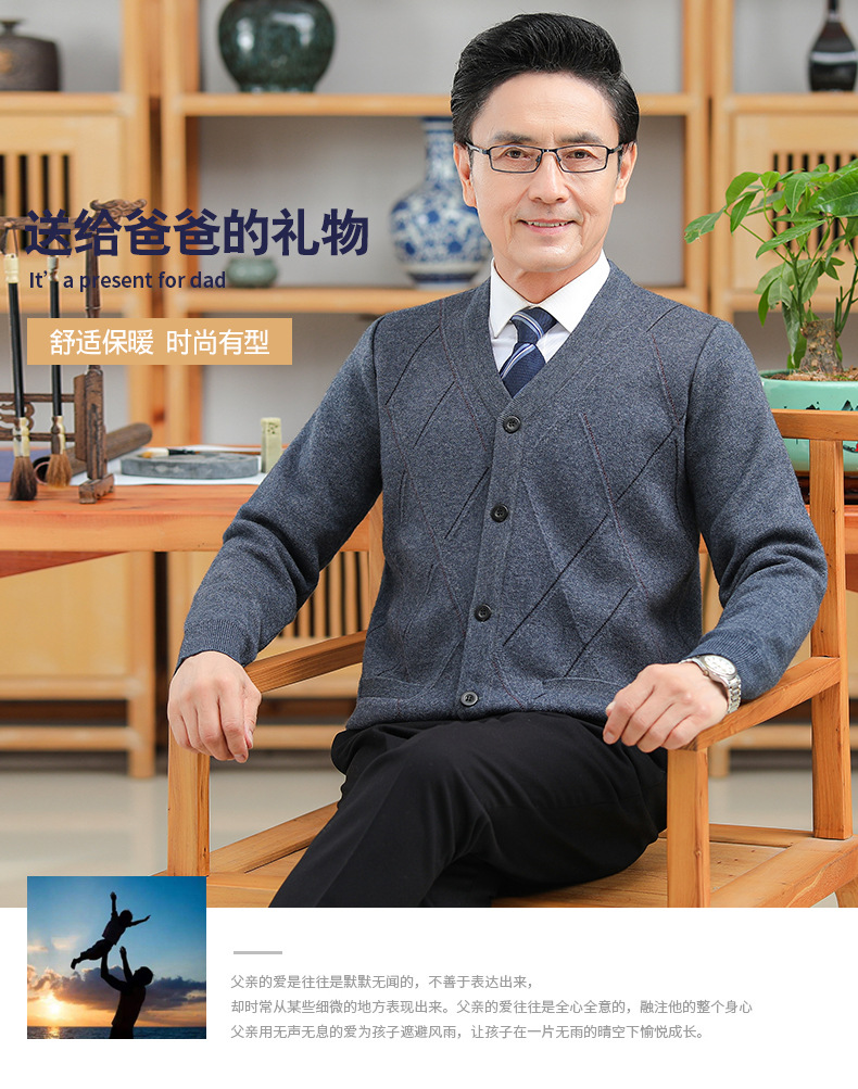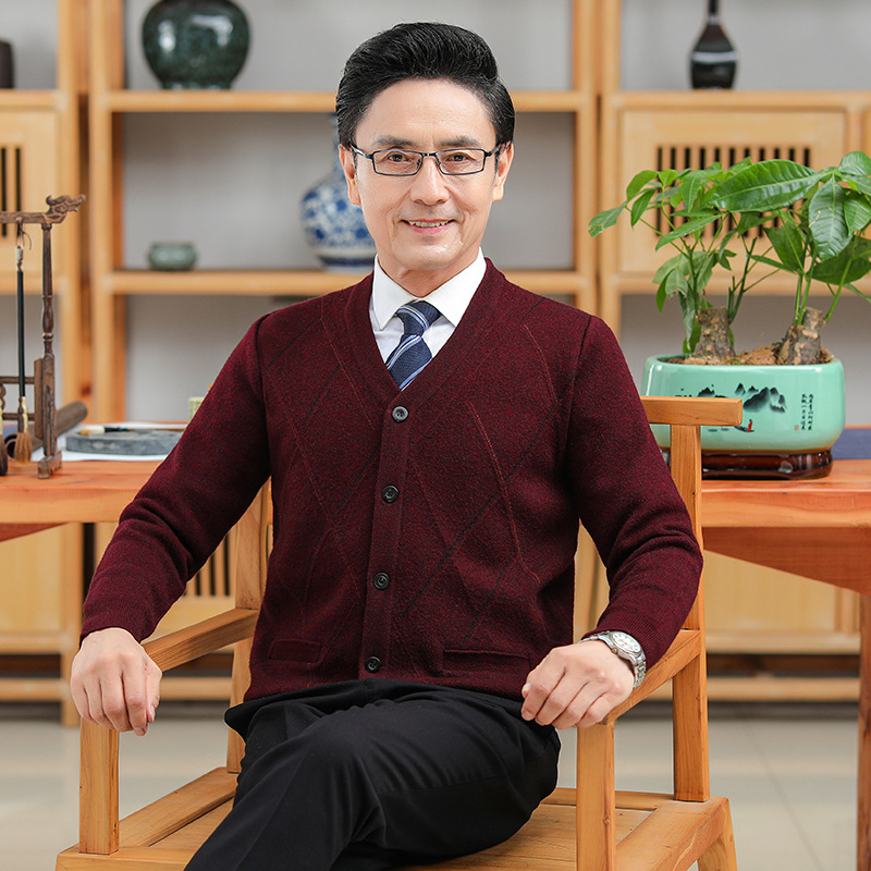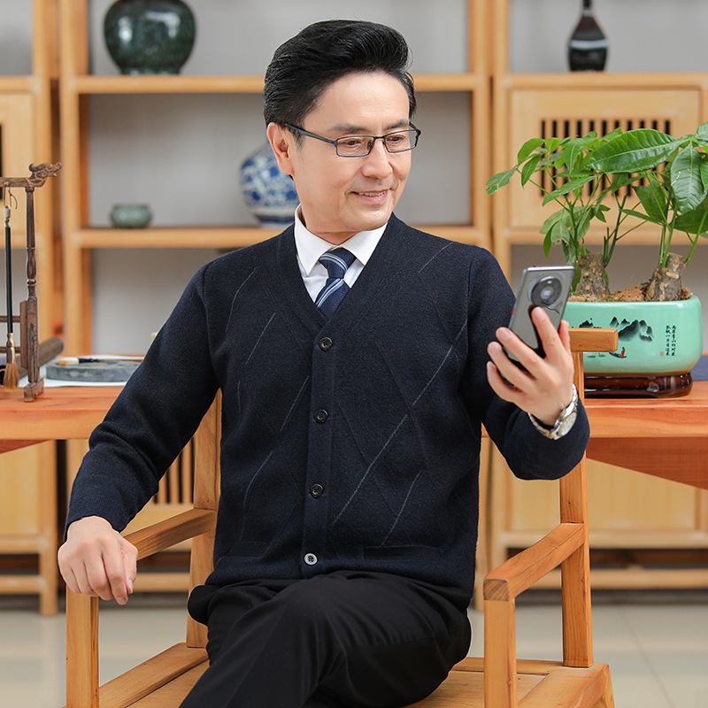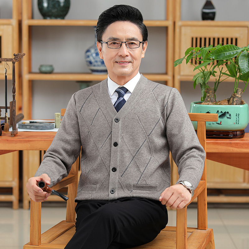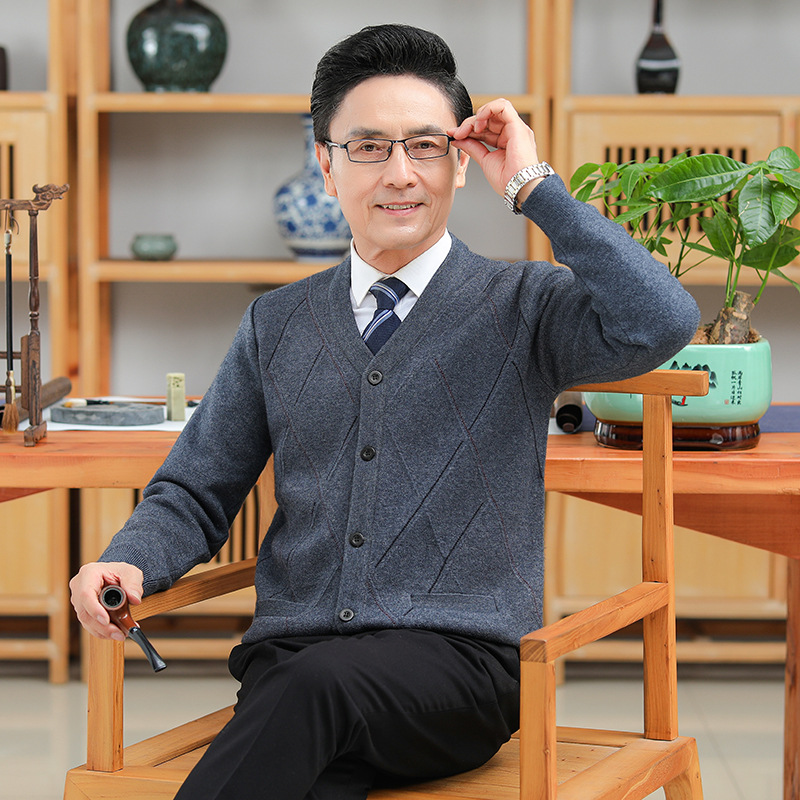 긴팔 솔리드 컬러 자카드 두꺼운 카디건 중년 따뜻한 비즈니스 카디건 재킷 아빠 가을, 겨울 남성용 모직 스웨터스토어 가기