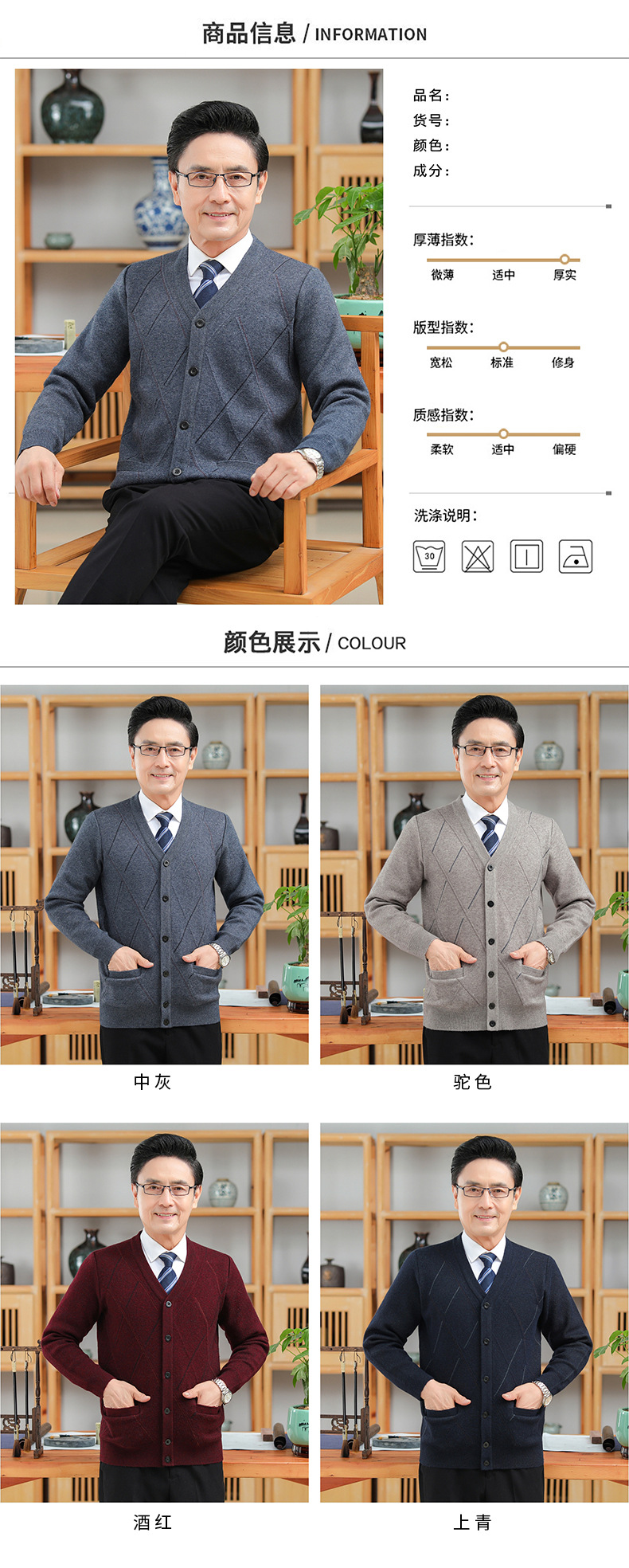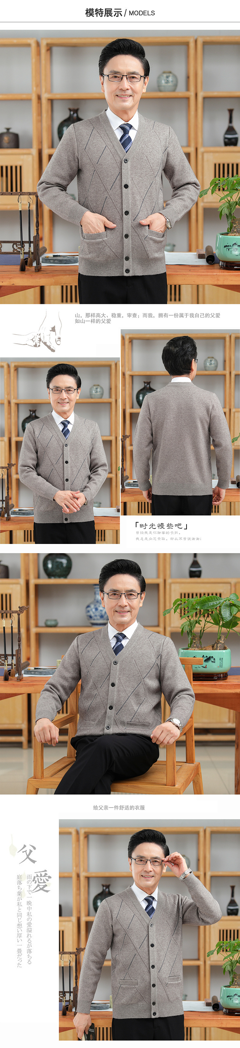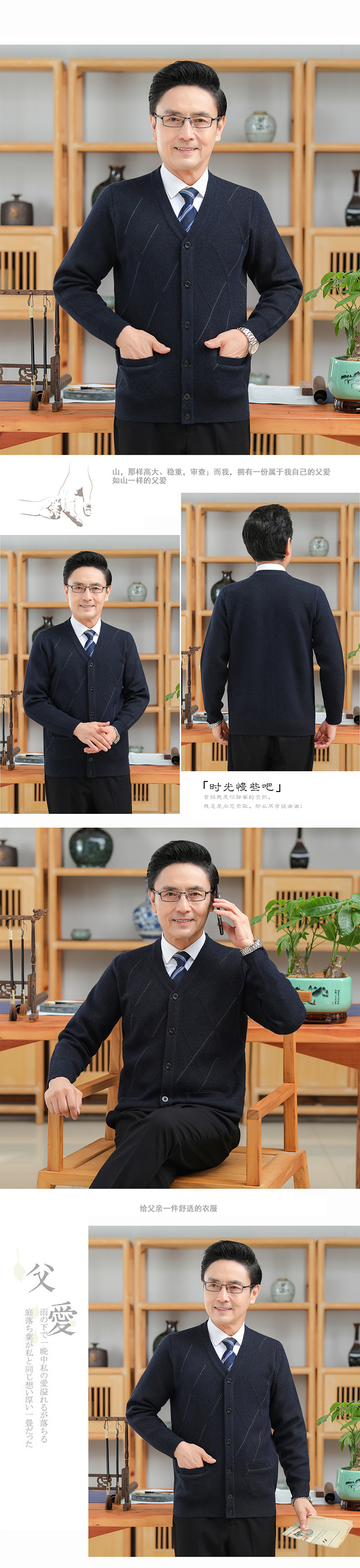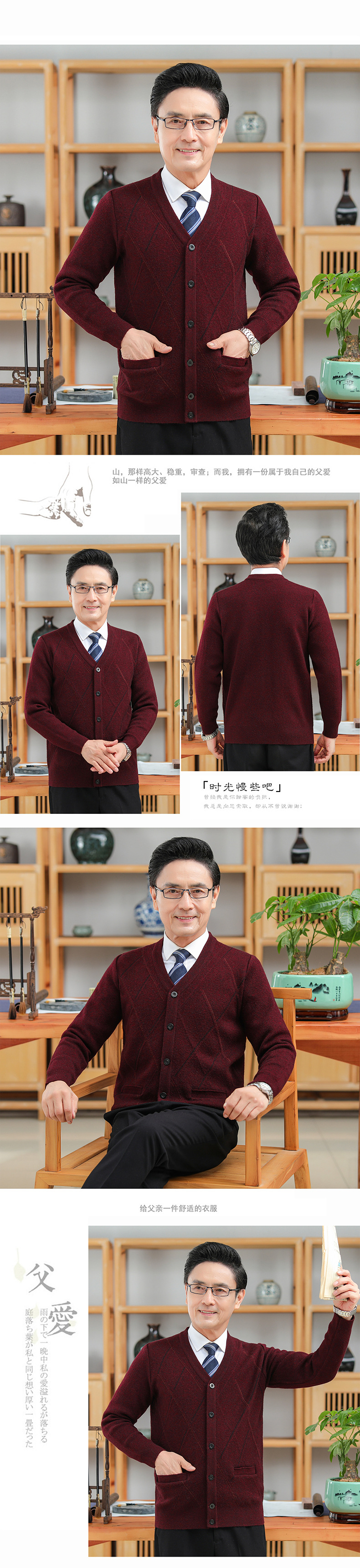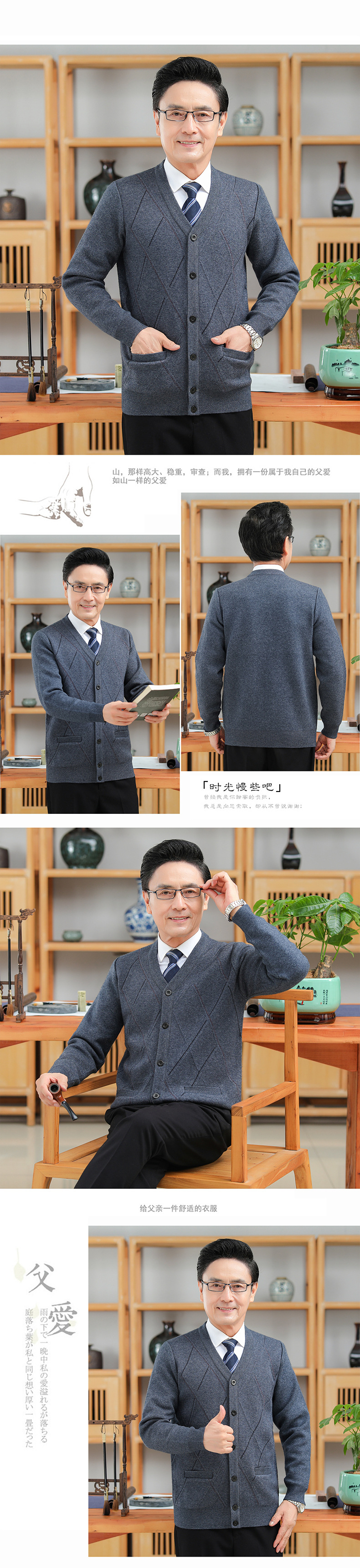 긴팔 솔리드 컬러 자카드 두꺼운 카디건 중년 따뜻한 비즈니스 카디건 재킷 아빠 가을, 겨울 남성용 모직 스웨터스토어 가기