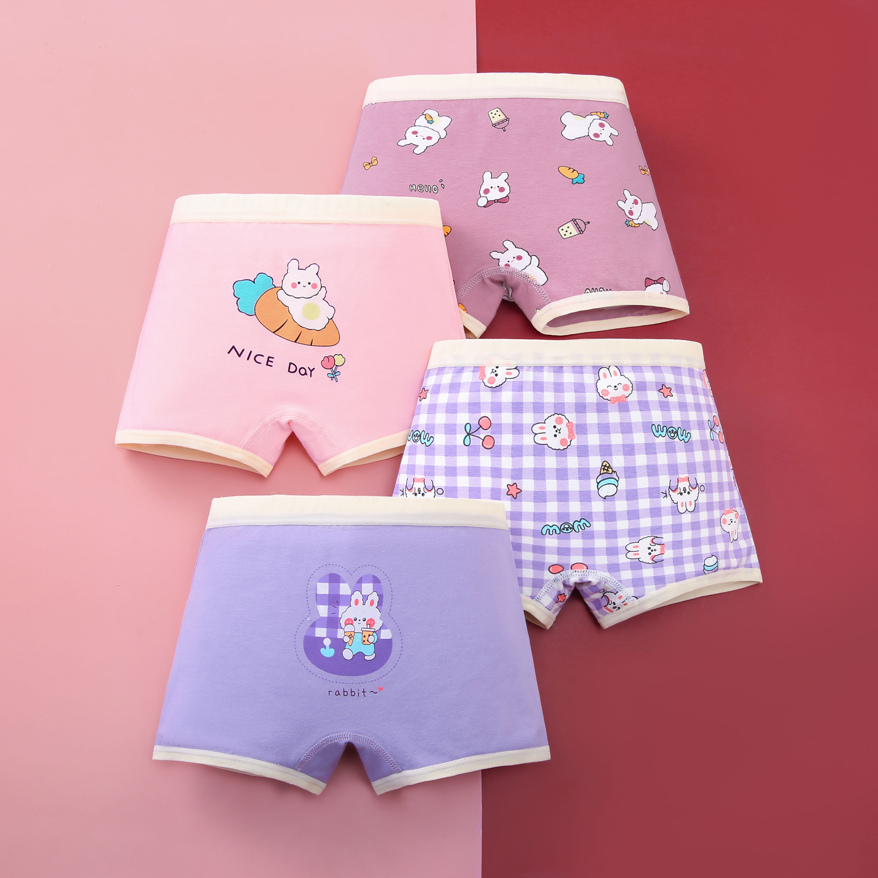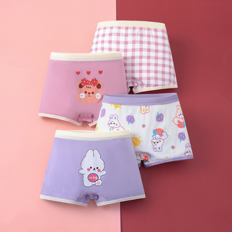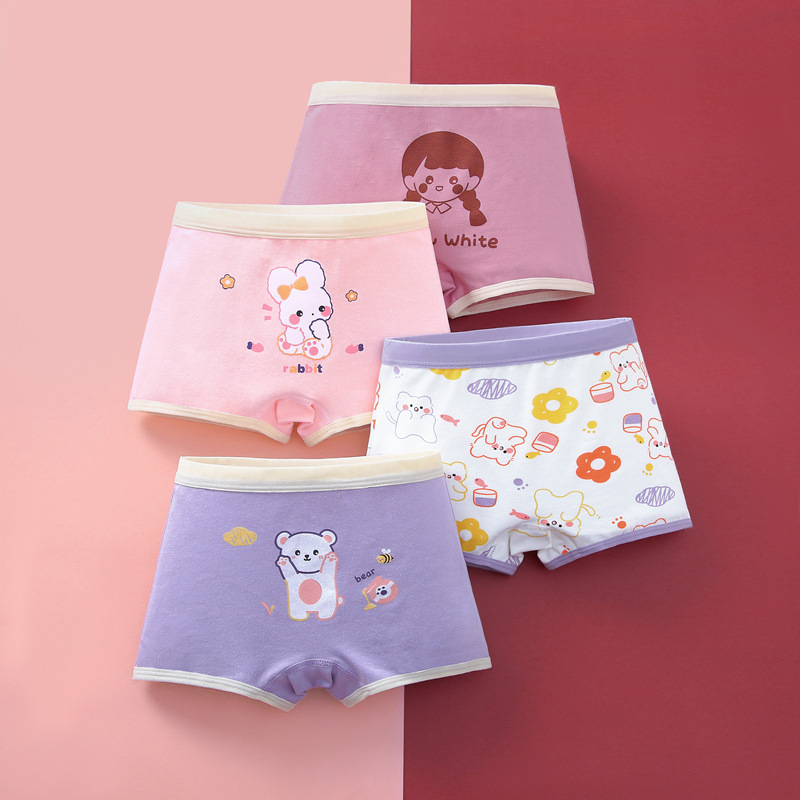 여아 면 복서 클래스 A 빗질 면 속옷 귀여운 만화 여성용 반바지 소형, 중형 및 대형 어린이 사계절 착용