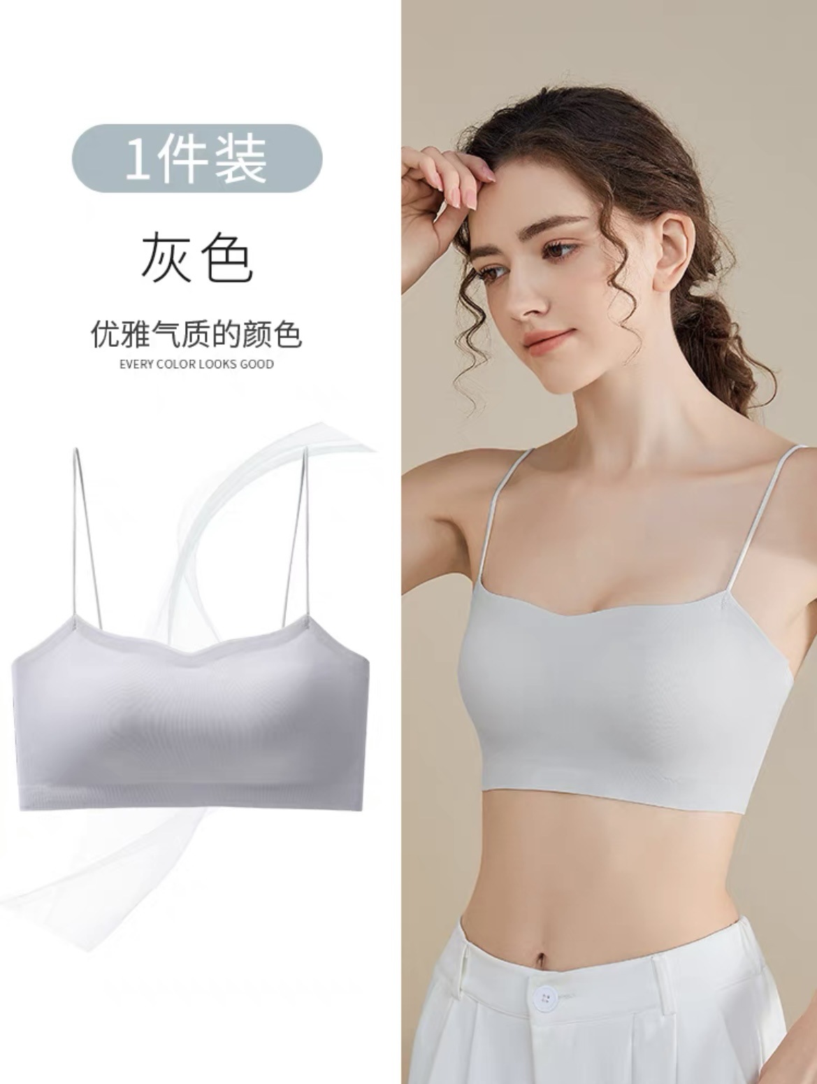 뷰티 백 튜브 탑 속옷 여성의 여름 얇은 노출 방지 얇은 어깨 끈 통합 스포츠 조끼 스타일의 가슴 랩 브래지어