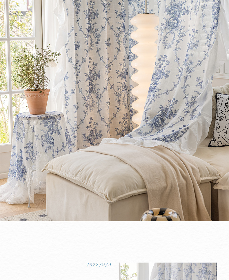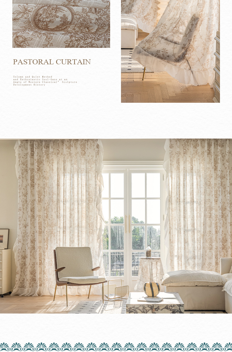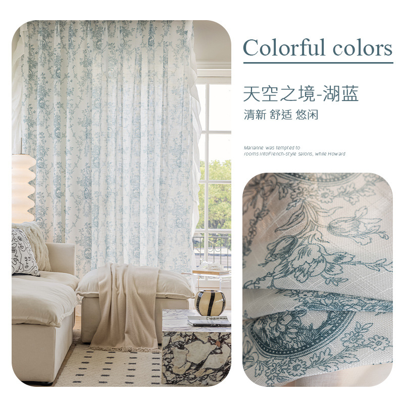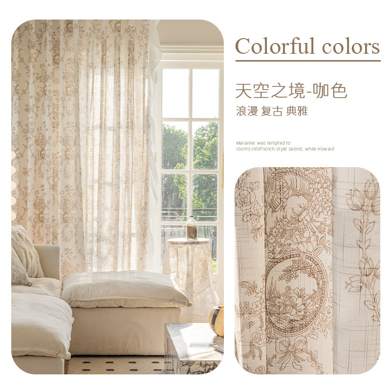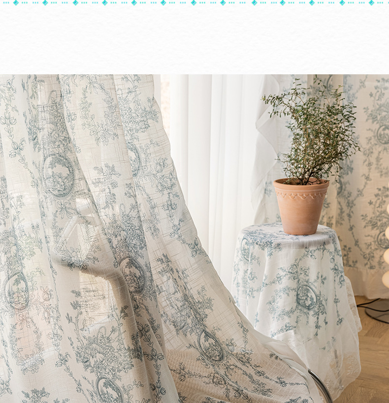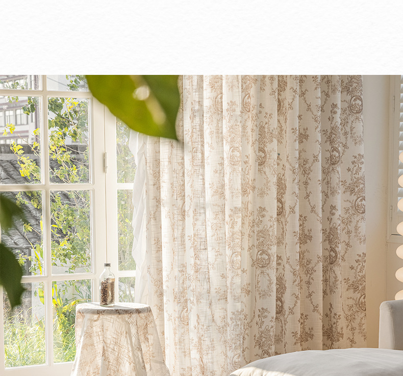 미국식 컨트리풍 반투명 암막 커튼, 화이트 커튼, 거실, 침실, 베이 창, 서재, 전원풍 린넨 창문 커튼