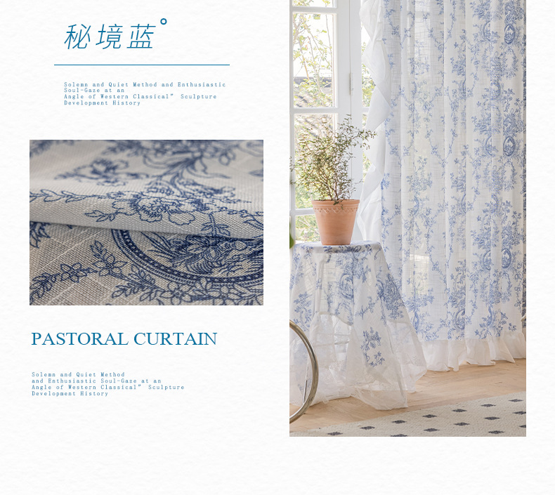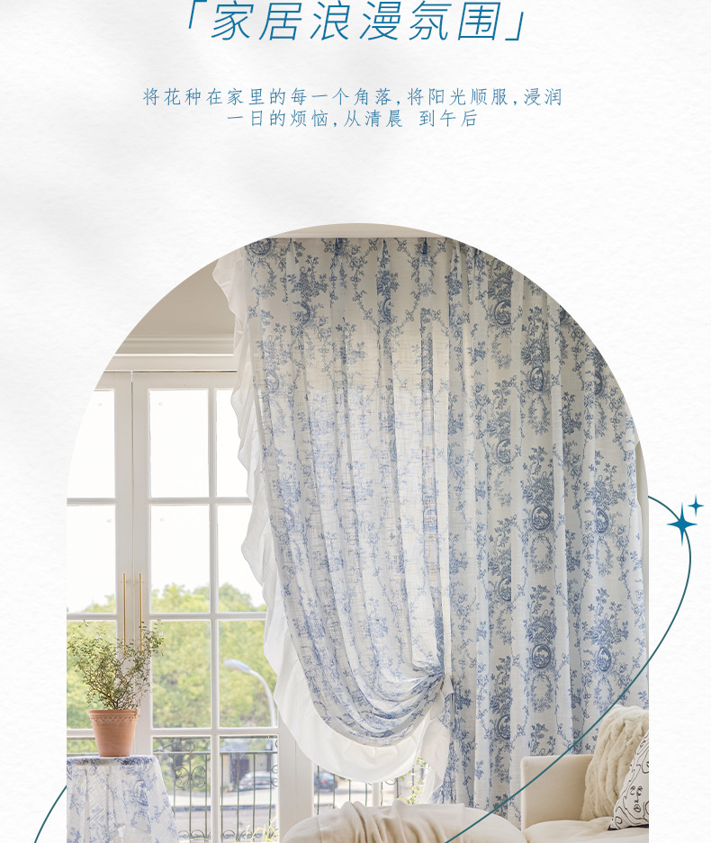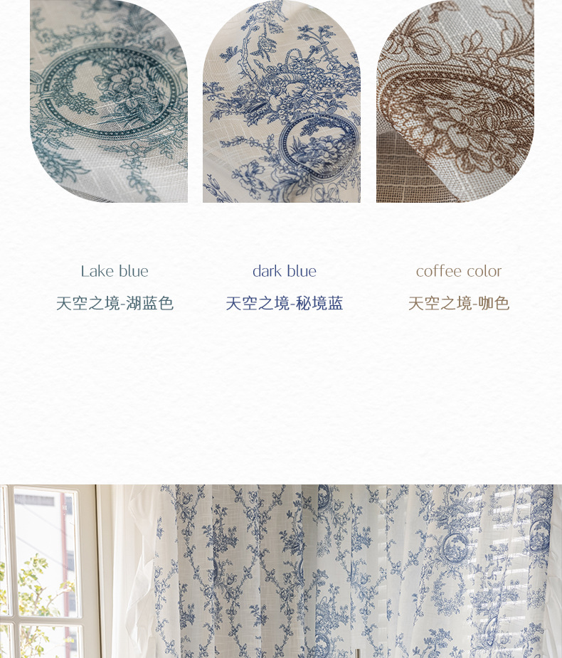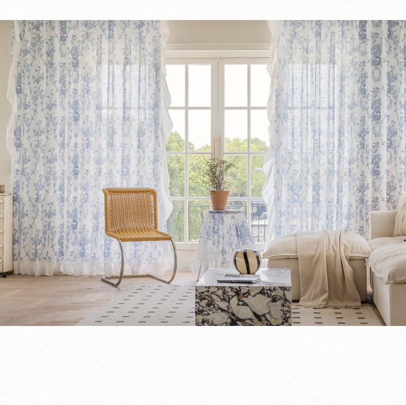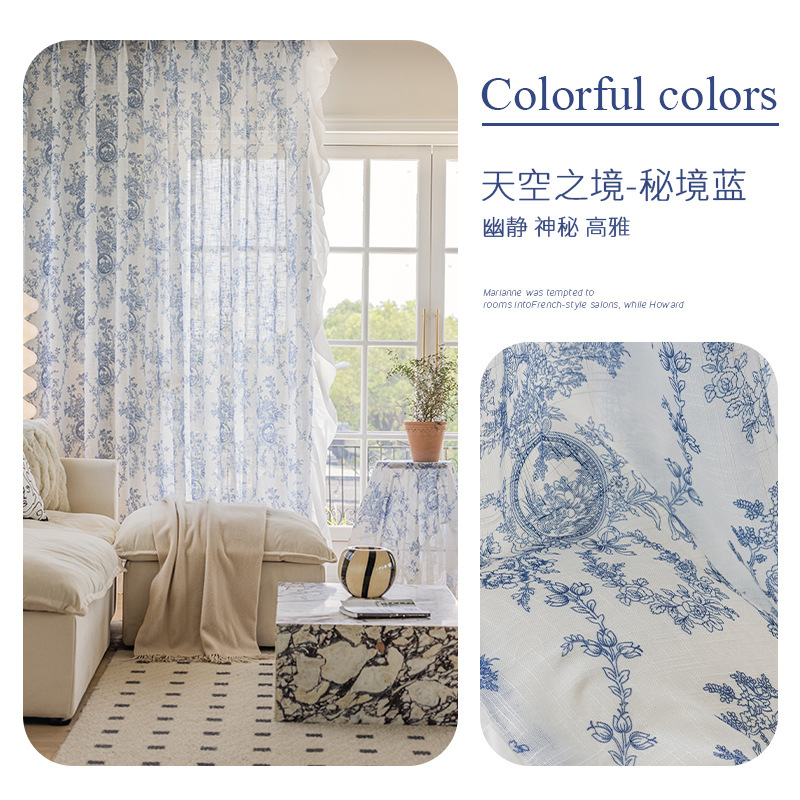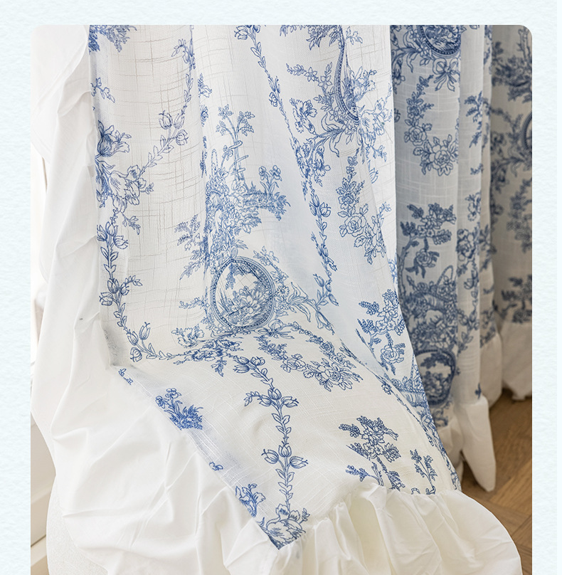 미국식 컨트리풍 반투명 암막 커튼, 화이트 커튼, 거실, 침실, 베이 창, 서재, 전원풍 린넨 창문 커튼