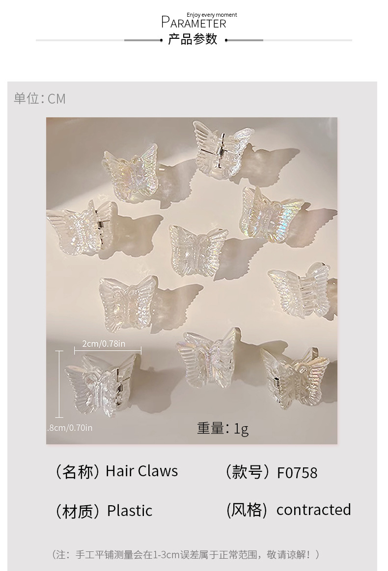 여름 레이저 귀여운 나비 클립 스몰 사이즈 머리핀 여자의 머리 마무리 머리핀 스타일 투명 상어 클립스토어 가기