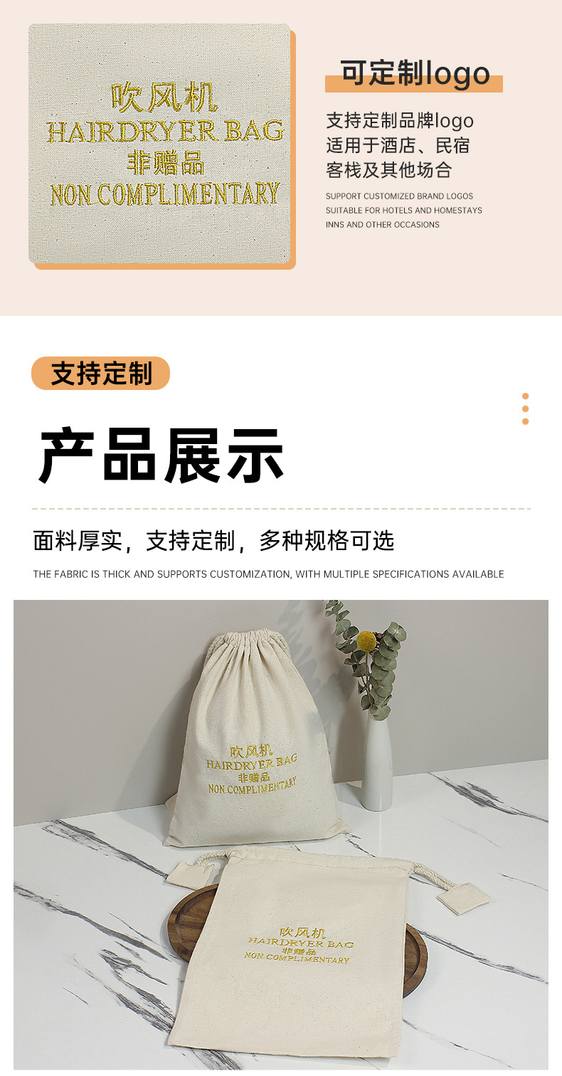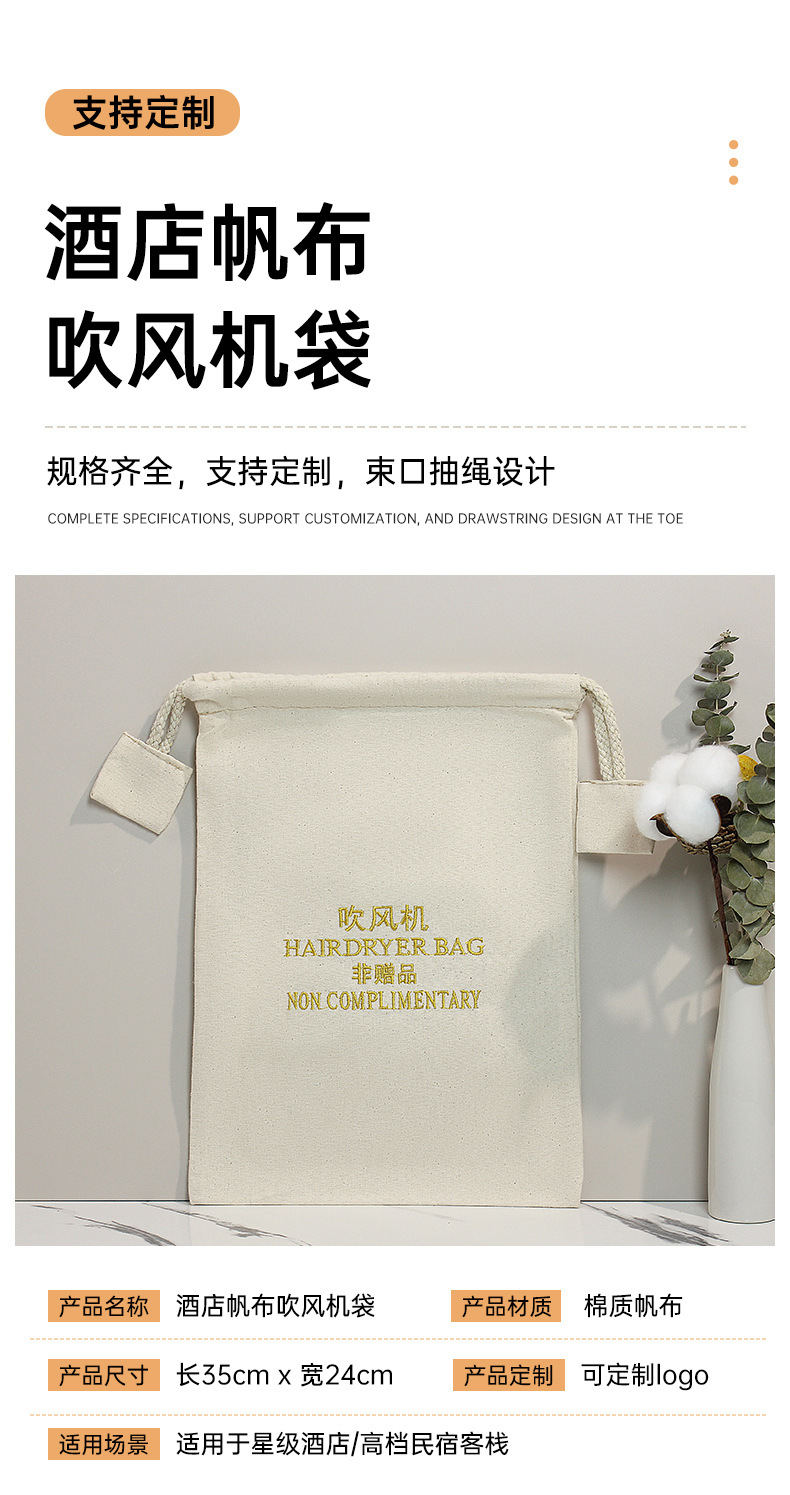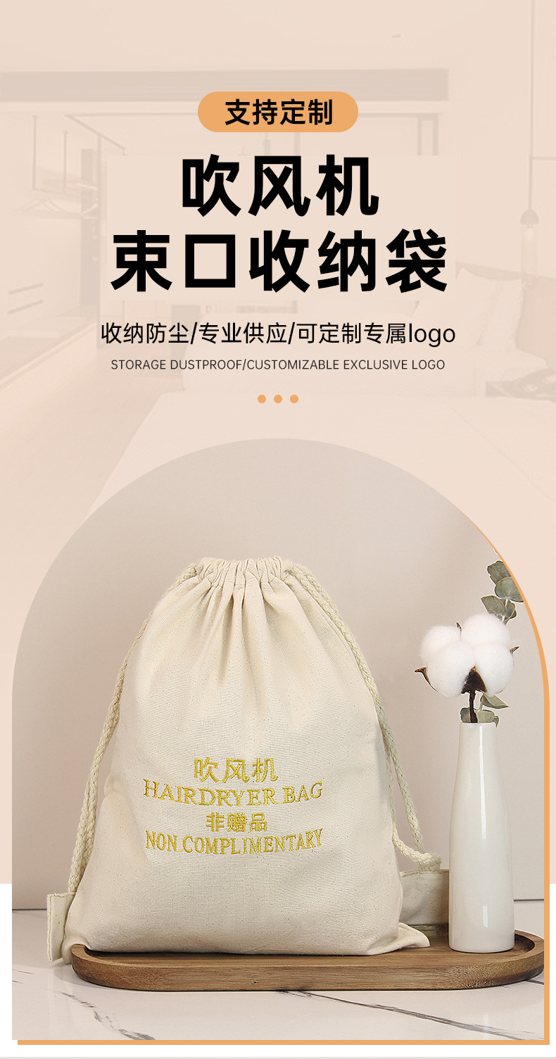 헤어드라이어 보관 가방, 민슈쿠/호텔용 캔버스 보관 가방, 조임끈, 자수 로고, 특수 보관용스토어 가기
